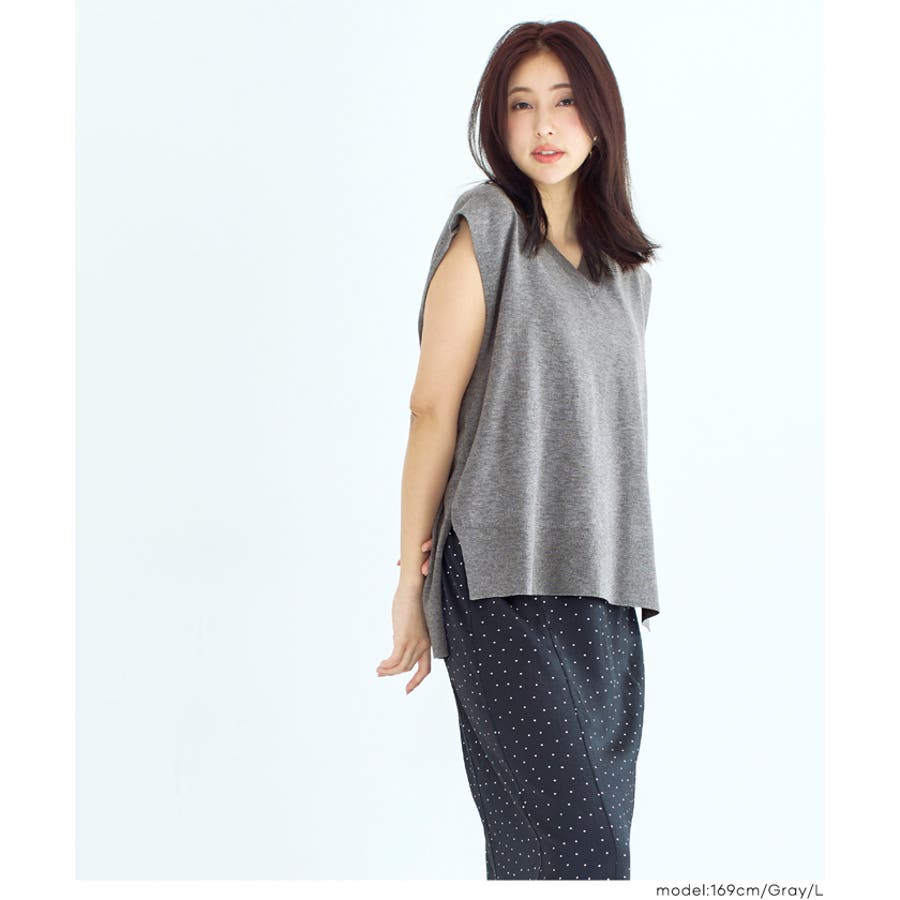 おしゃれ 可愛い きれいめ 秋 秋服 冬 冬服 おとな 大人 女性ファッション 韓国 カジュアル プチプラ 10代 20代 30代 40代 50代 オフィス ホーム シンプル オフィスカジュアル COCA coca コカ 春 トップス 無地 Vネック ベスト レイヤード シンプル カジュアル ノースリーブ ニット 伸縮性 スリット 26ss