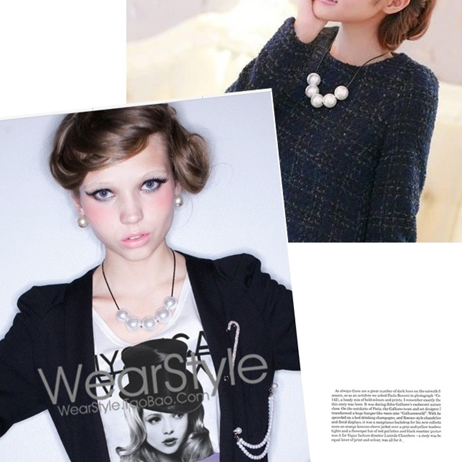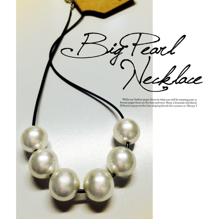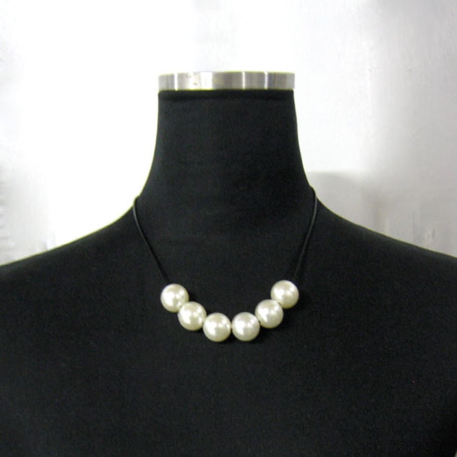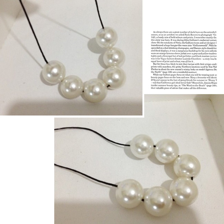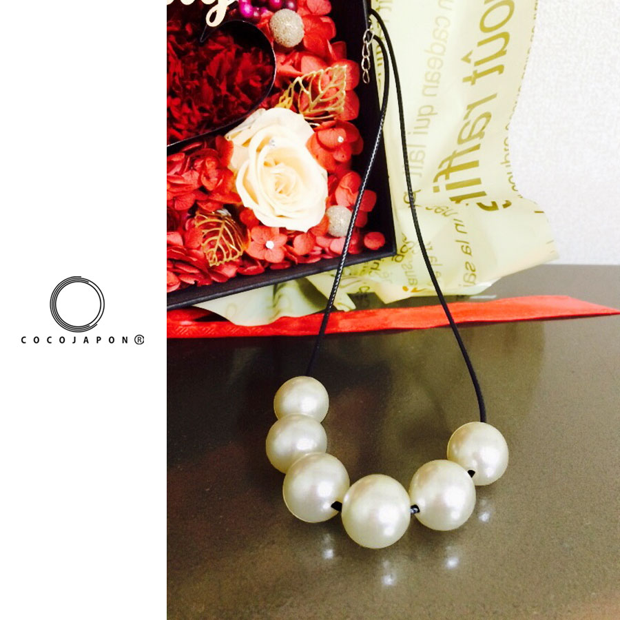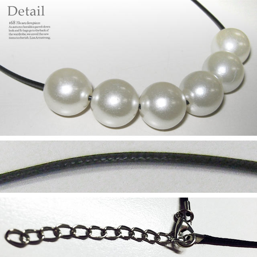 ブラック皮ひもにフェイクパールの組み合わせが新鮮♪