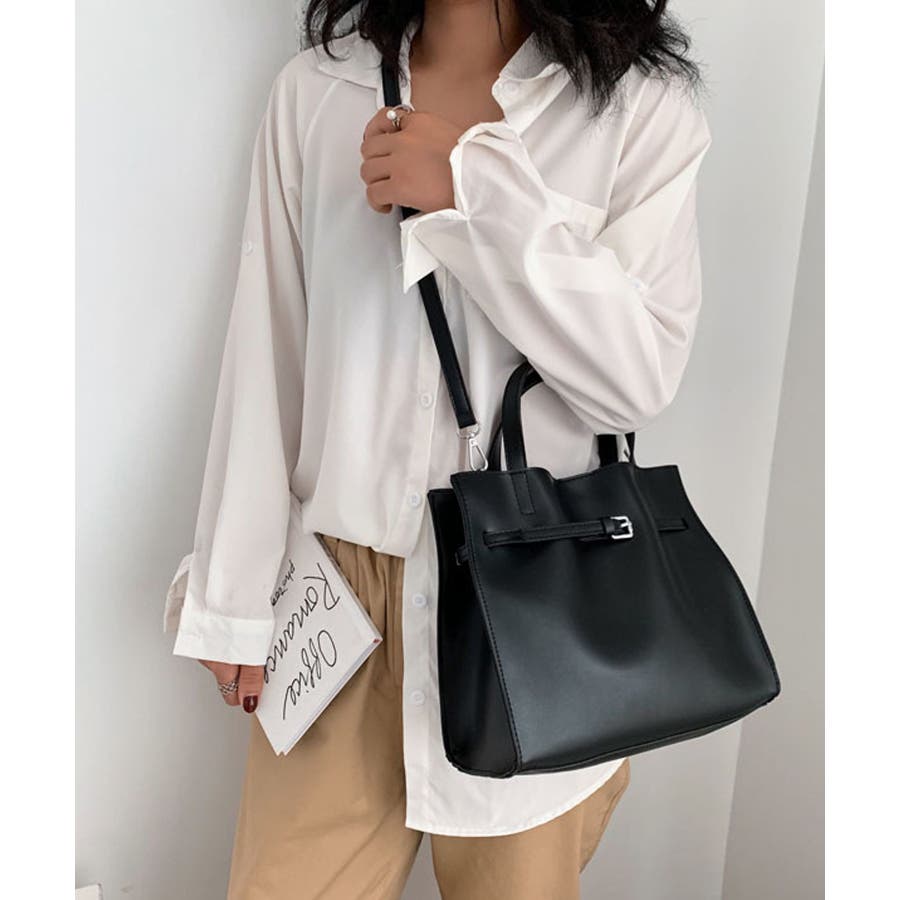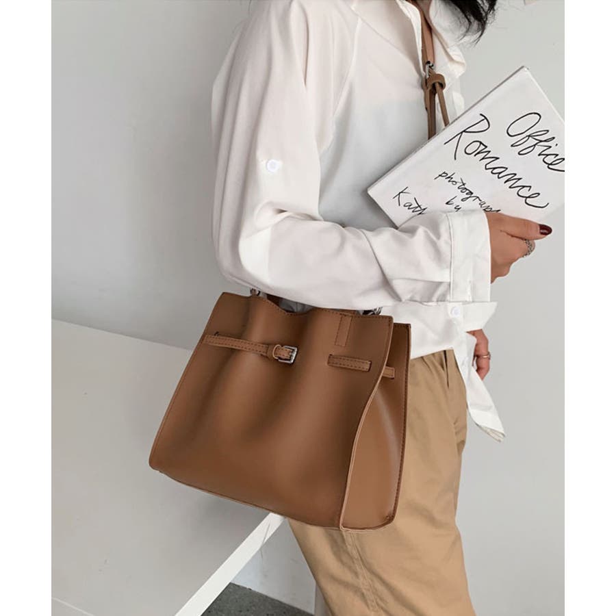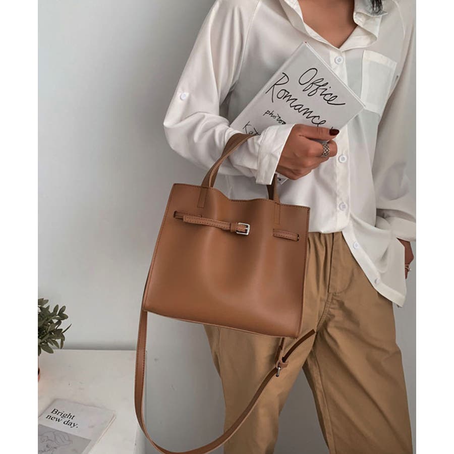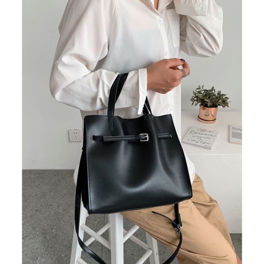 細めのベルトがアクセントになったバッグ。