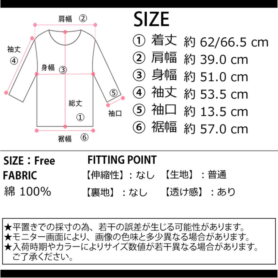 サイズ:着丈62/66.5cm 肩幅39cm 身幅51cm 袖丈53.5cm 袖口13.5cm 裾幅57cm