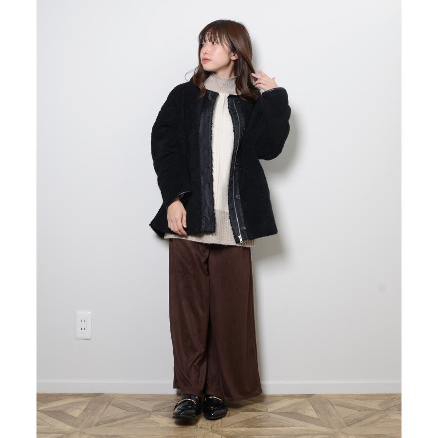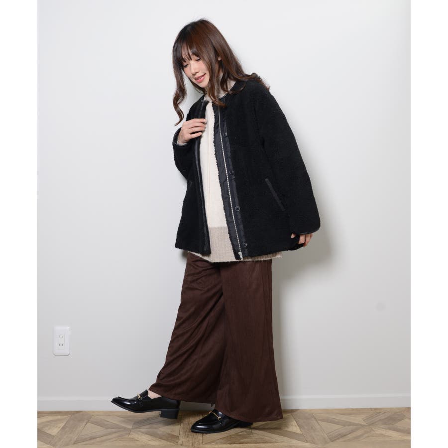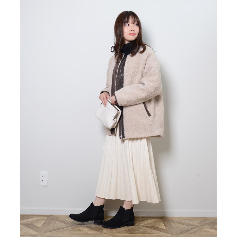 中心のラインやえりのレザーがコーデのポイントになってさらにおしゃれでトレンド感を高めてくれます!