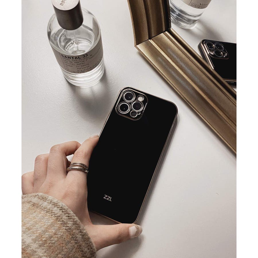 【高級感のあるメッキフレームロゴ入りスマホケース】