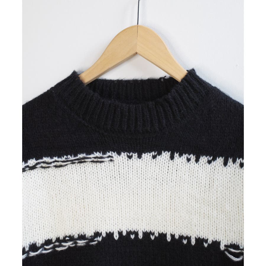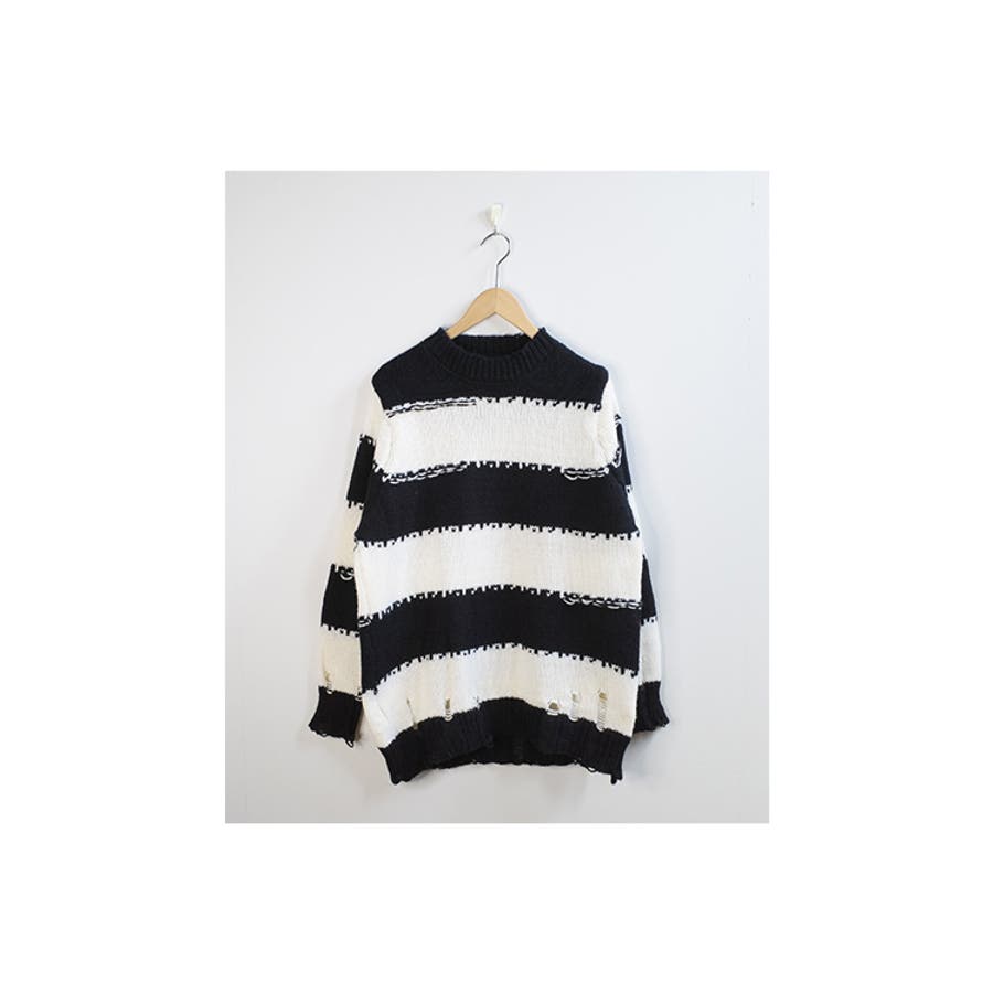 程よいほつれ加工がPOINT!ゆるっと着られる韓国っぽボーダーニット。