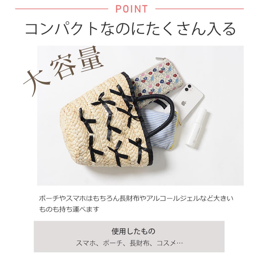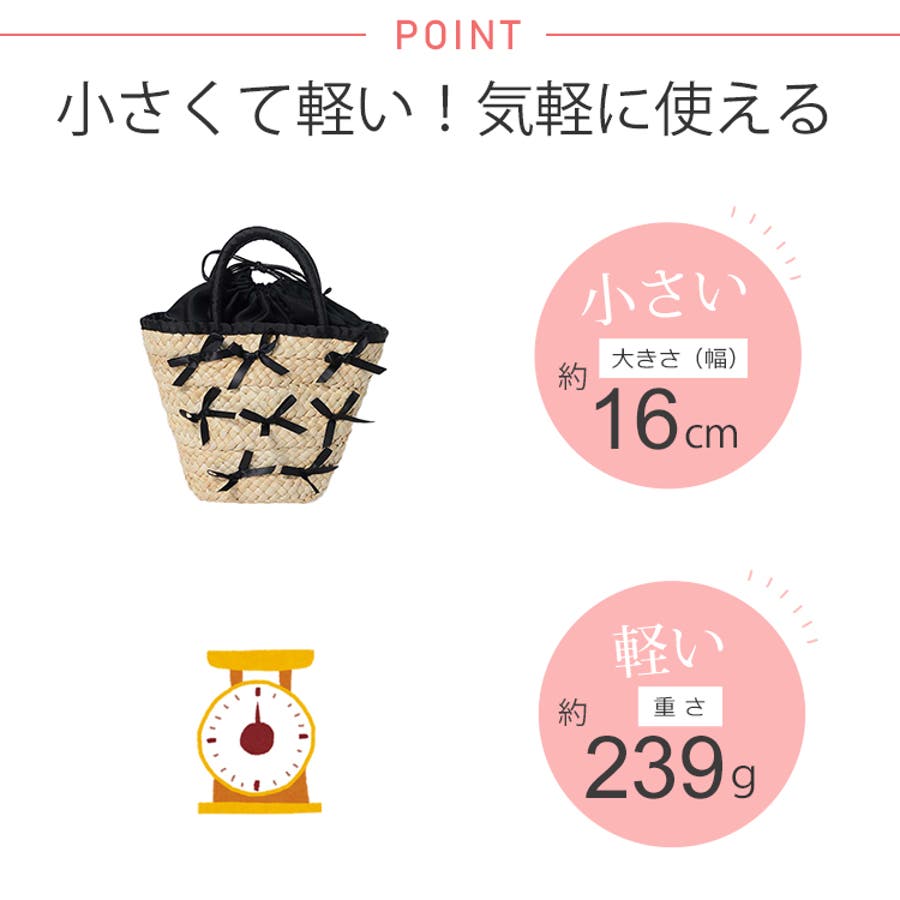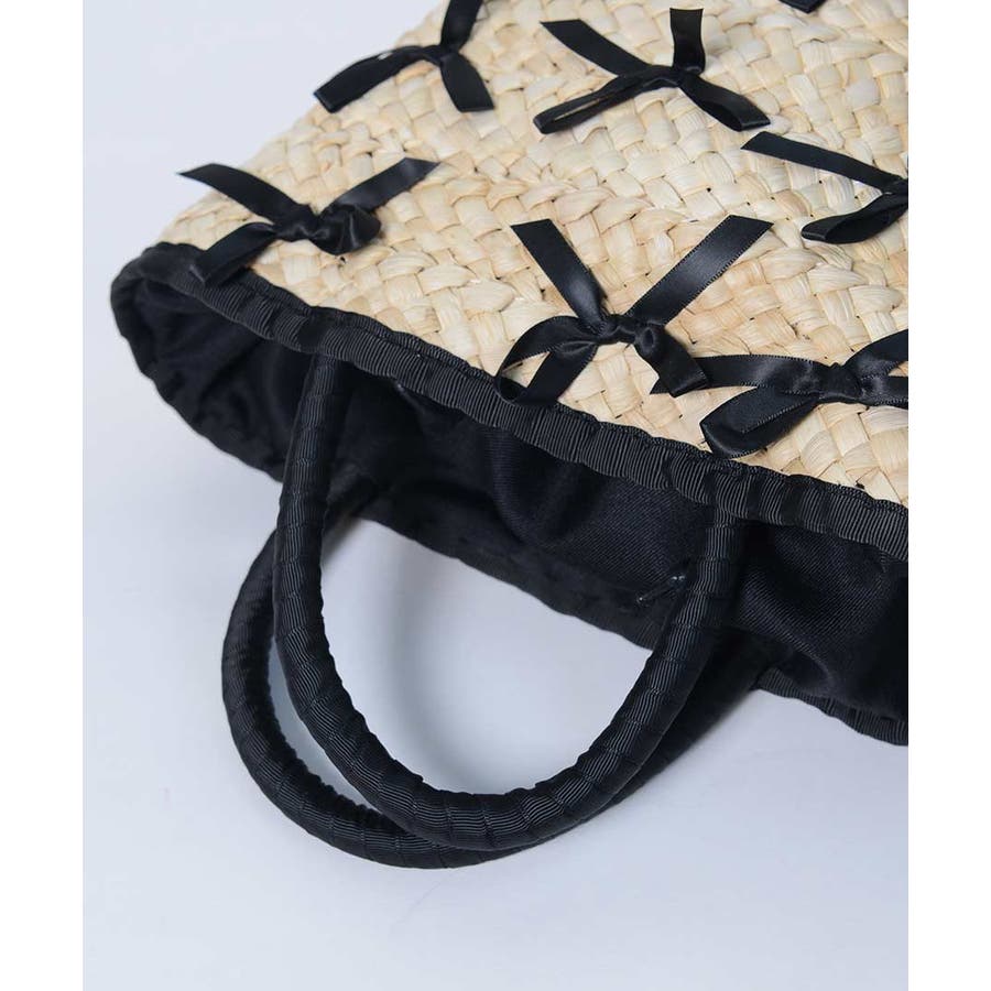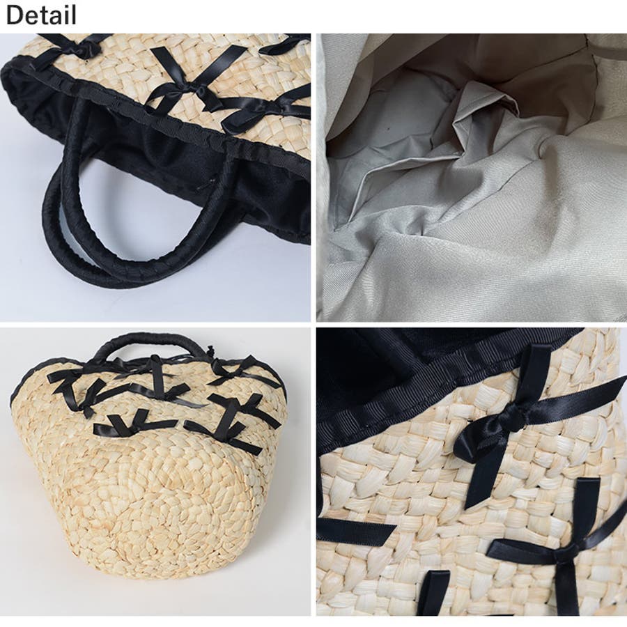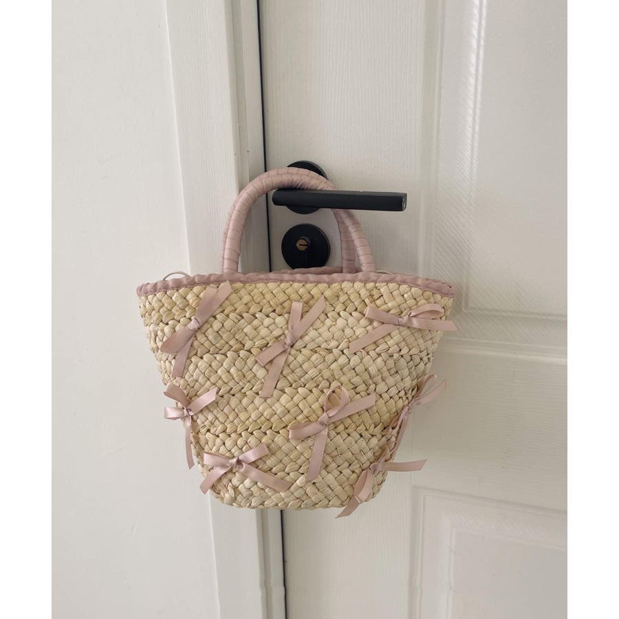 シンプルなかごバッグにリボンがデコレーションされたかわいいバッグ。