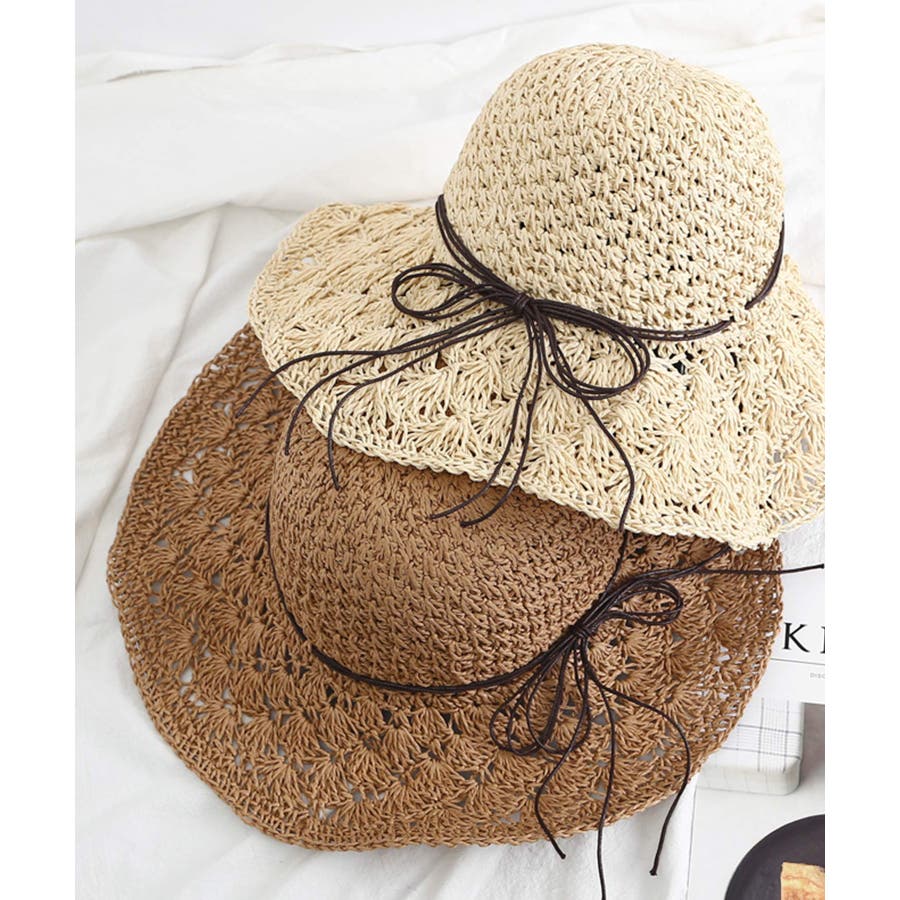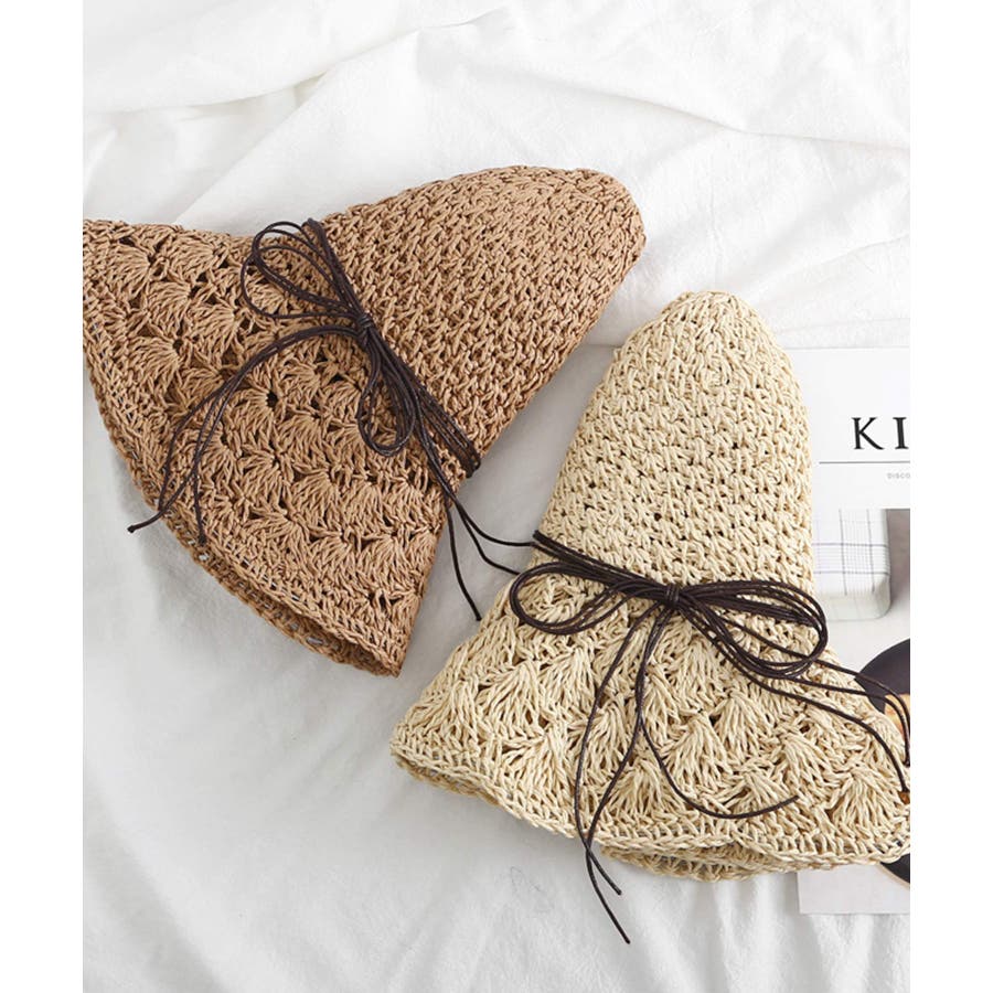 夏のコーディネートを引き立てるおしゃれなペーパー編みハット。