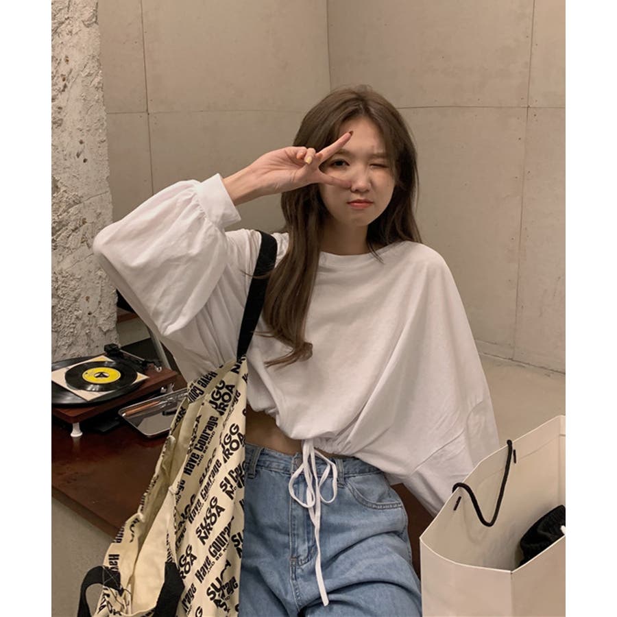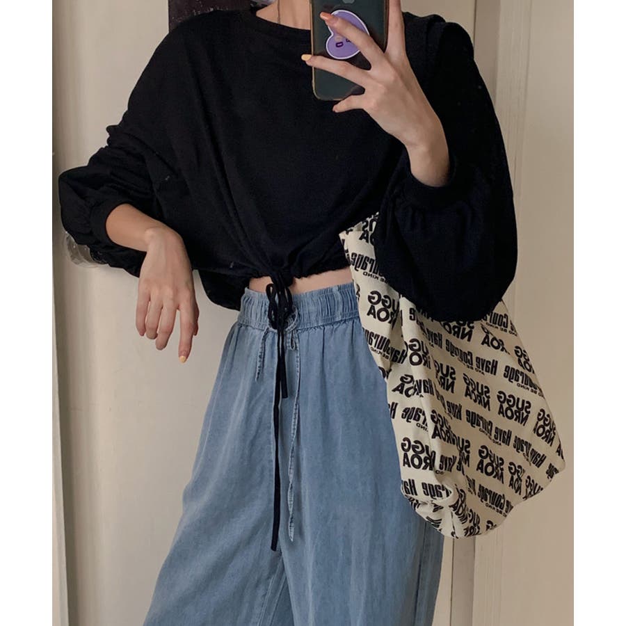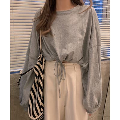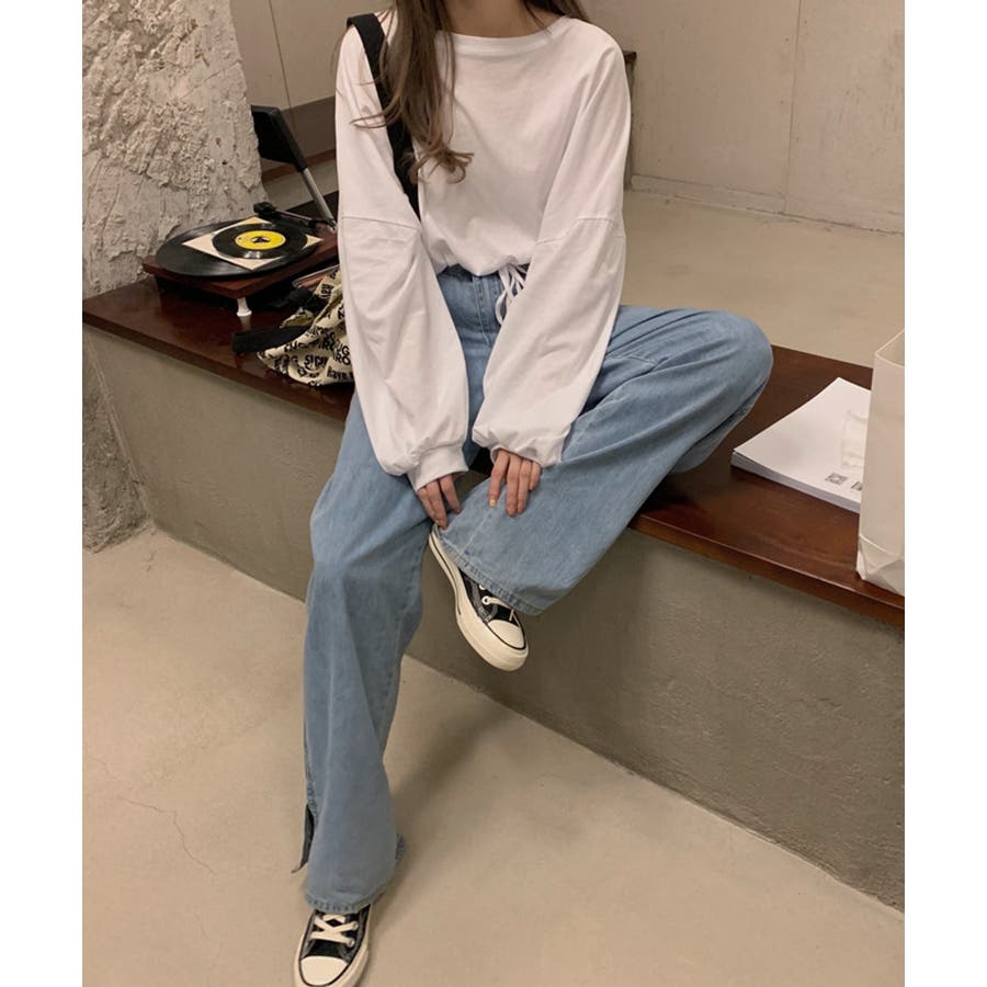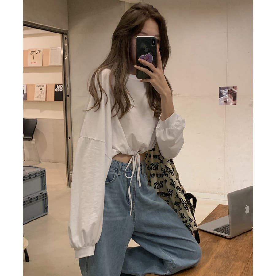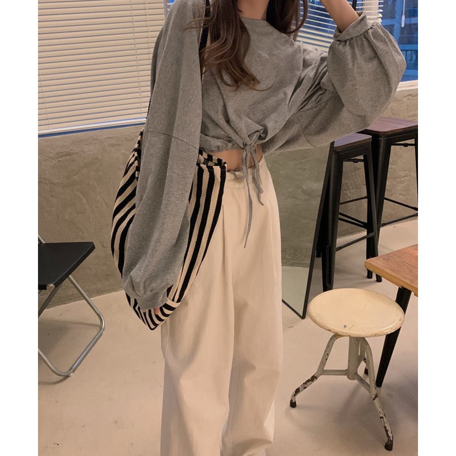 韓国女子に人気の裾絞り長袖スウェット。