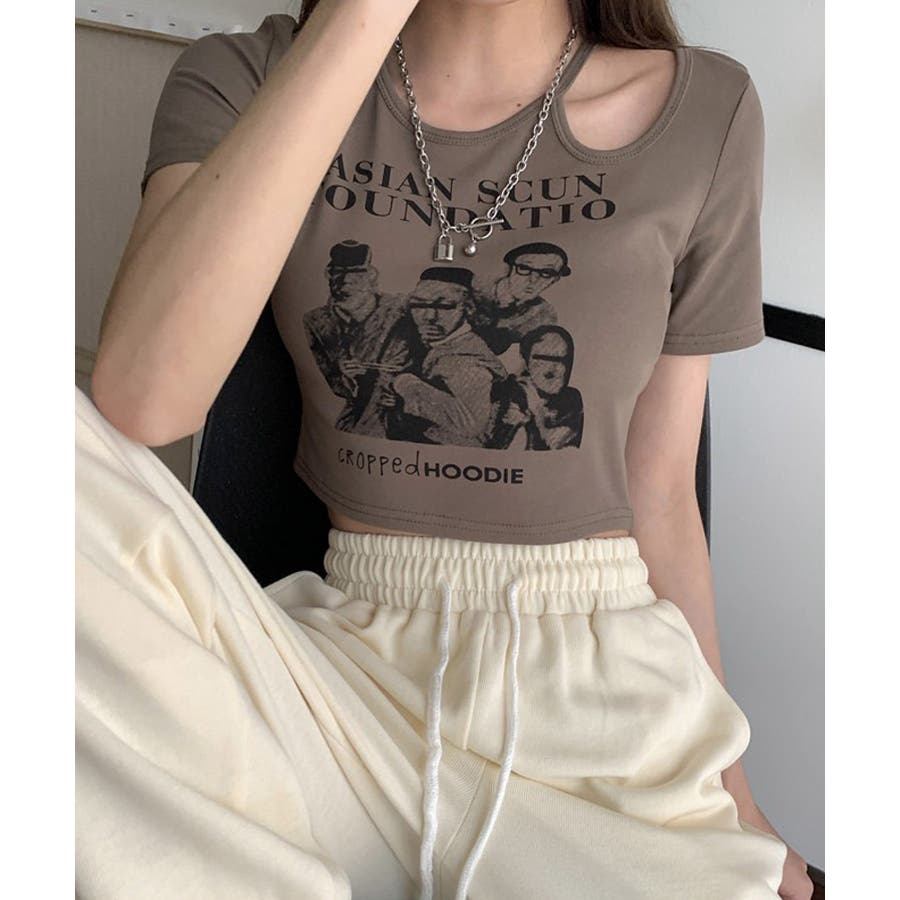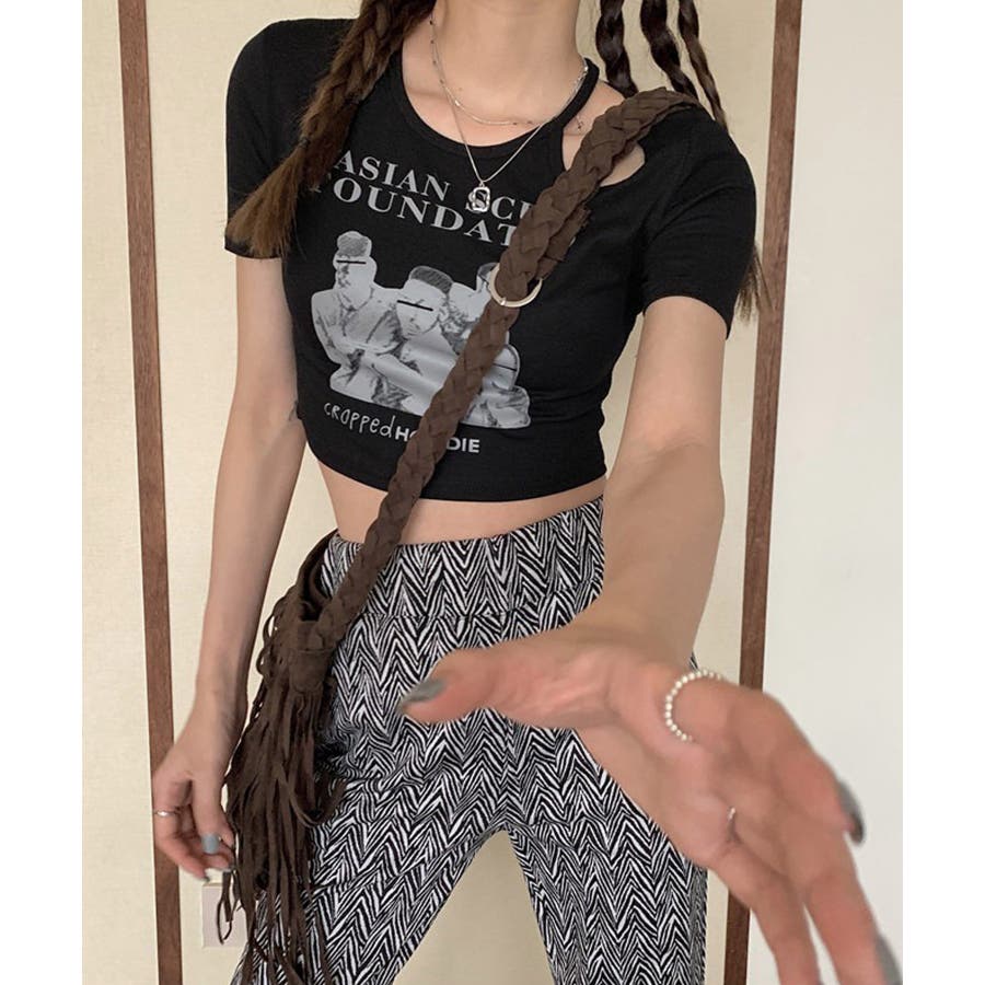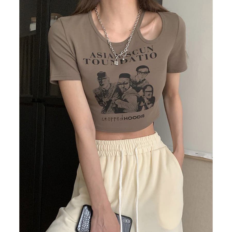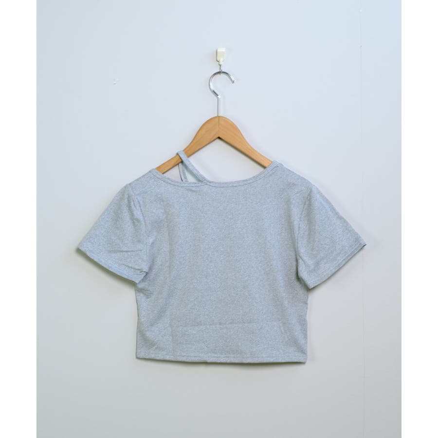 春新作 ショルダーカットアウト ショート丈チビTシャツ