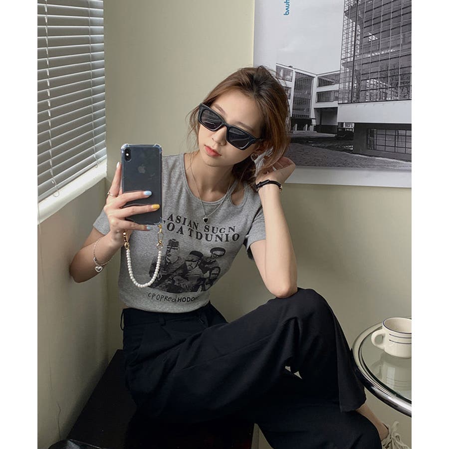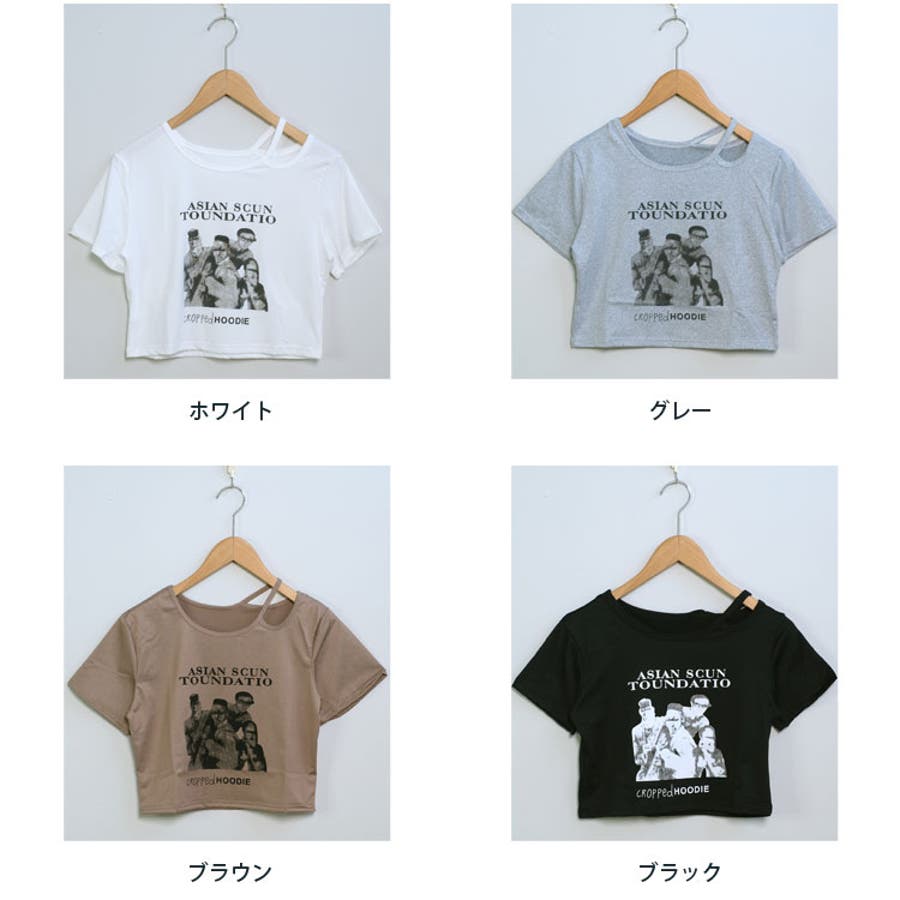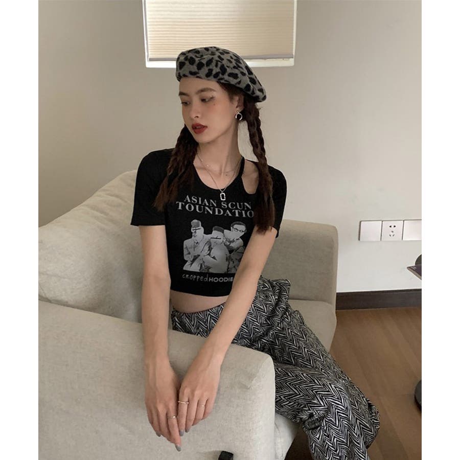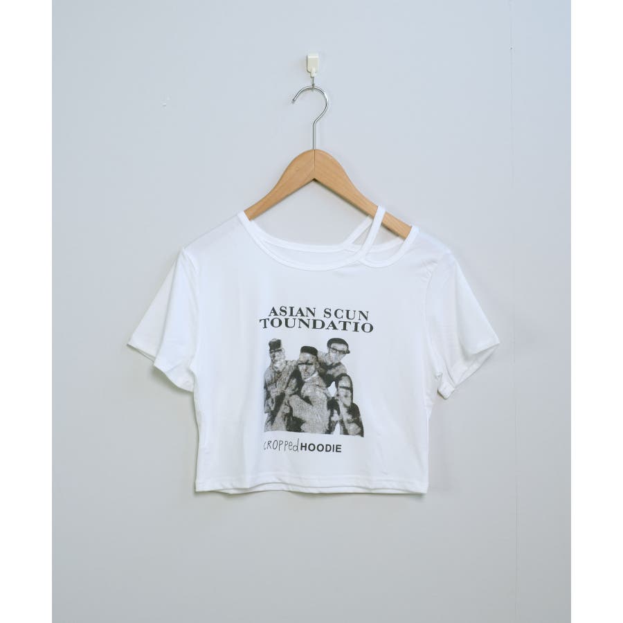 春新作 ショルダーカットアウト ショート丈チビTシャツ