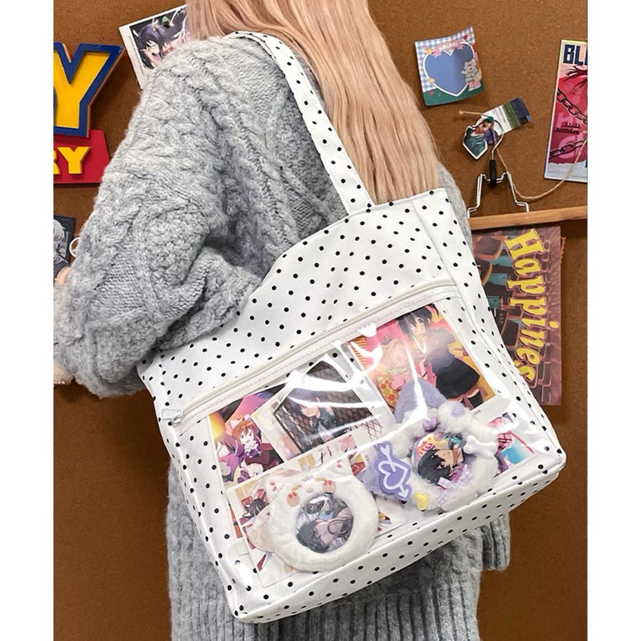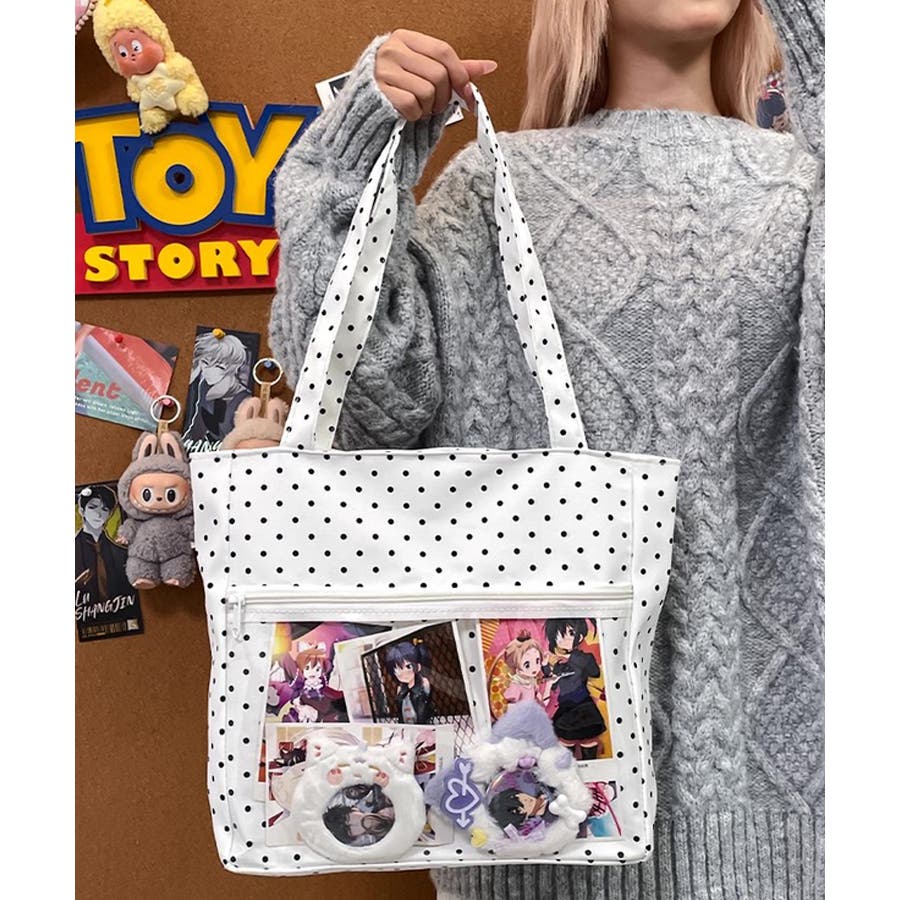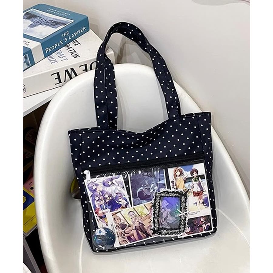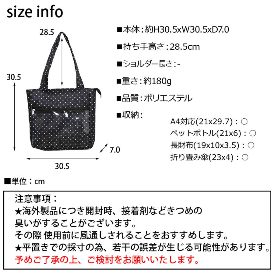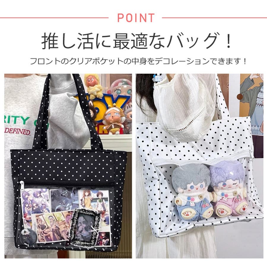 ? POINTトートバッグ、ショルダーバッグとして用途に合わせて使える便利な2WAY仕様◎クリアポケット部分に好きなステッカーや推しの写真や缶バッジを入れたりチャームをつけて自分だけのオリジナルトートにアレンジできます◎うちわも入るのでライブ参戦バッグにもぴったり!通勤通学のデイリーバッグにはもちろん旅行、キャンプ、出張、遠征、入院など様々なシーンで活躍します!■サイズ:Free縦:約30.5cm 幅:約30.5cm マチ:約7cm 持ち手高さ:約28.5cm■サイズ感:A4可/ペットボトル可/長財布可/折り畳み傘可 ■ポケット:内0 外1■重量:約180g■素材:本体:ポリエステル■原産国:中国■注意事項:★海外製品につき開封時、接着剤などきつめの臭いがすることがございます。その際、使用前に風通しされることをおすすめします。★平置きでの採寸の為、若干の誤差が生じる可能性があります。★モニター画面により、画像の色味と多少異なる場合がございます。★生産時期により裏地の変更もあります。予めご了承の上、ご検討をお願いいたします。