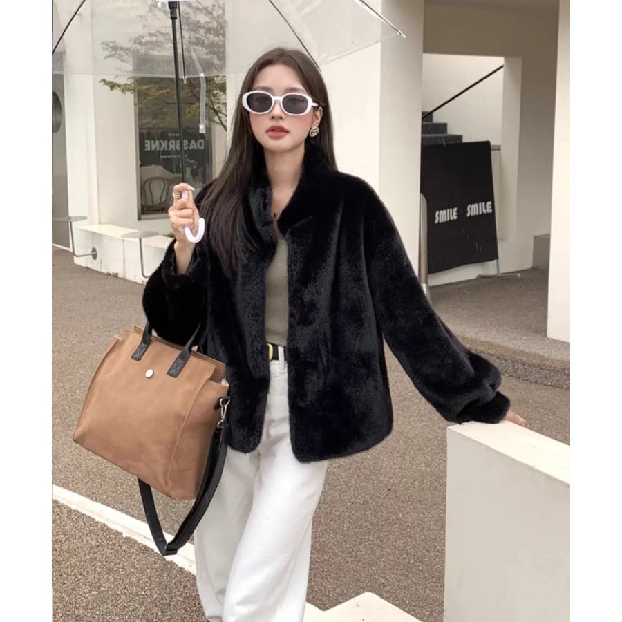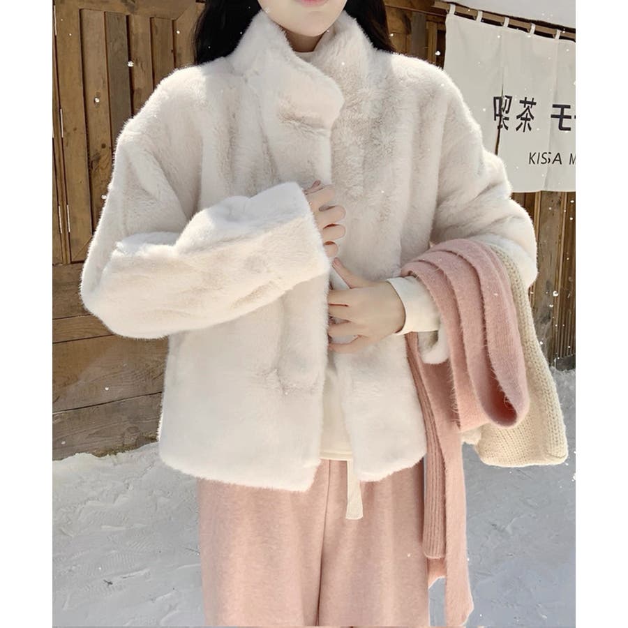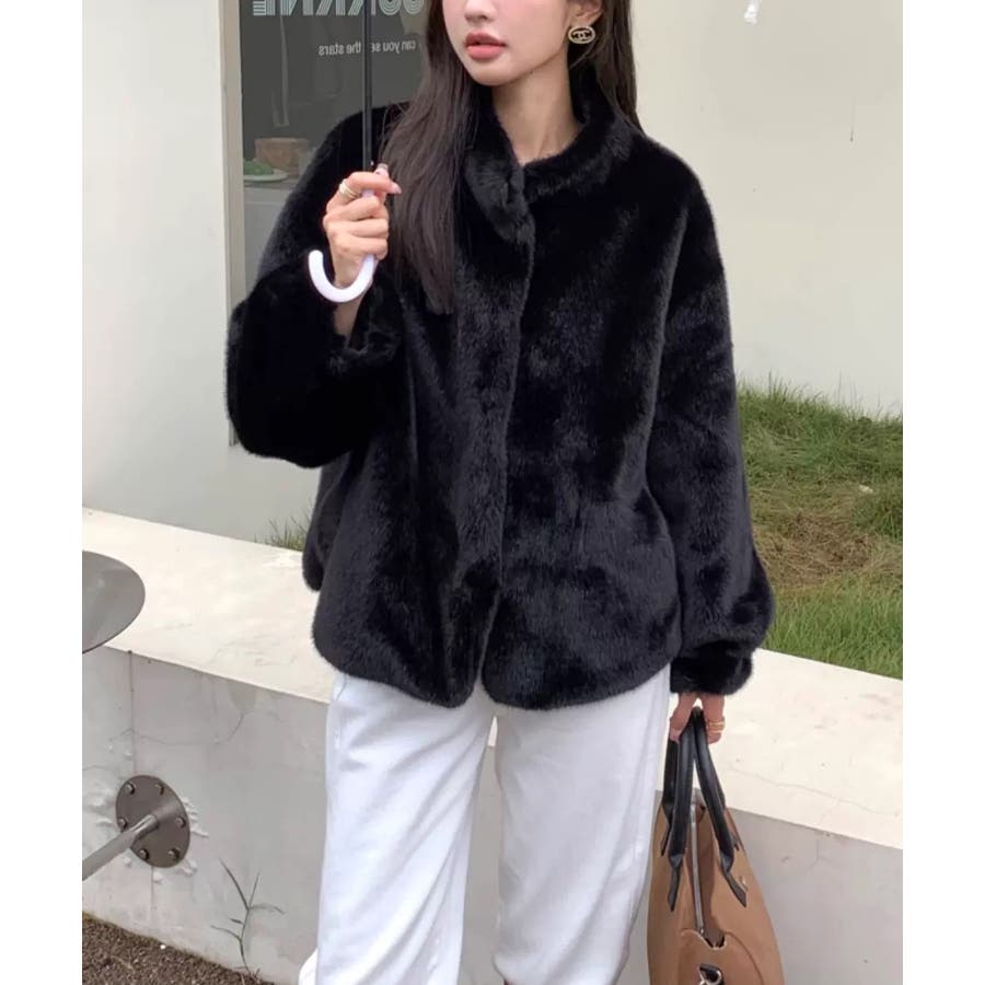 冬新作 スタンドカラー フェイクファーブルゾン海外コーデ