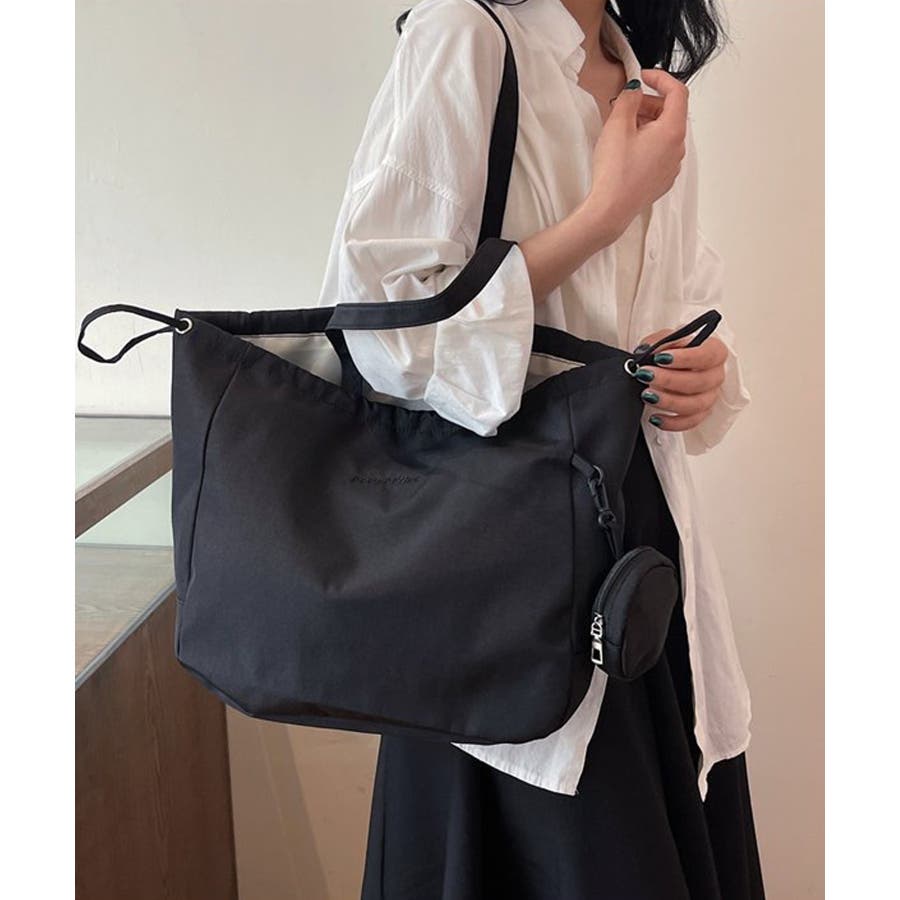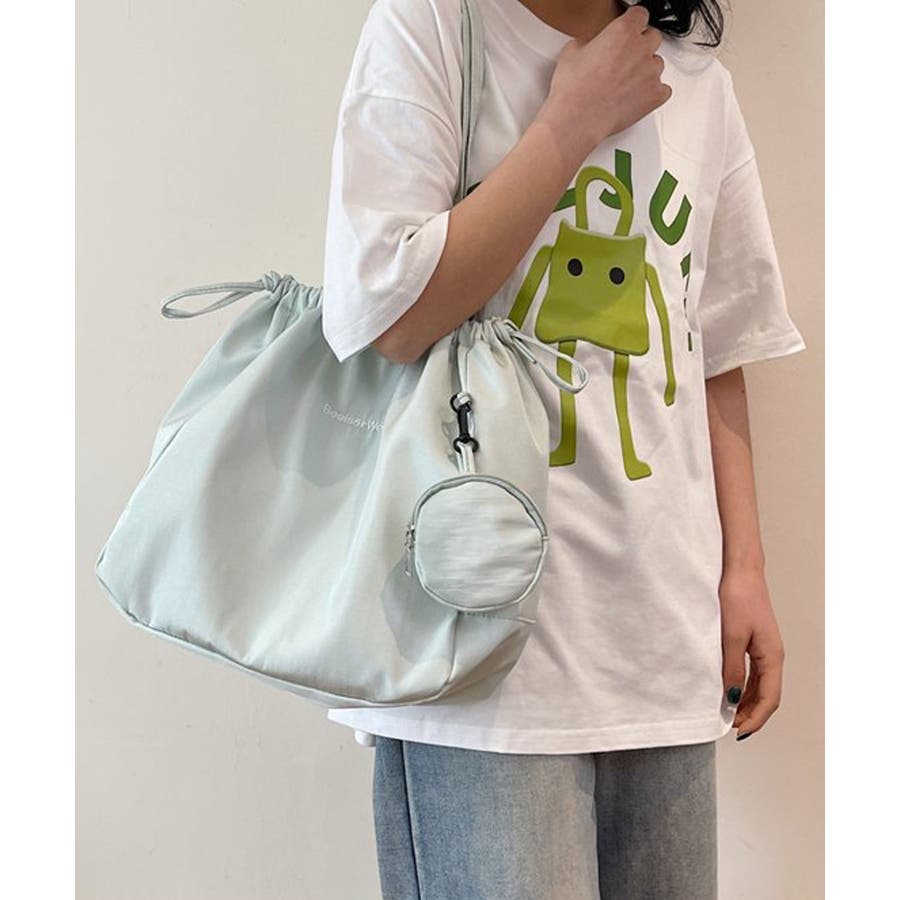 冬新作 ミニポーチ付き 巾着ナイロントートバッグA4サイズ