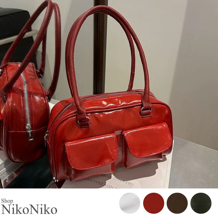 春新作 フロントダブルポケット ボストンバッグ韓国バッグ