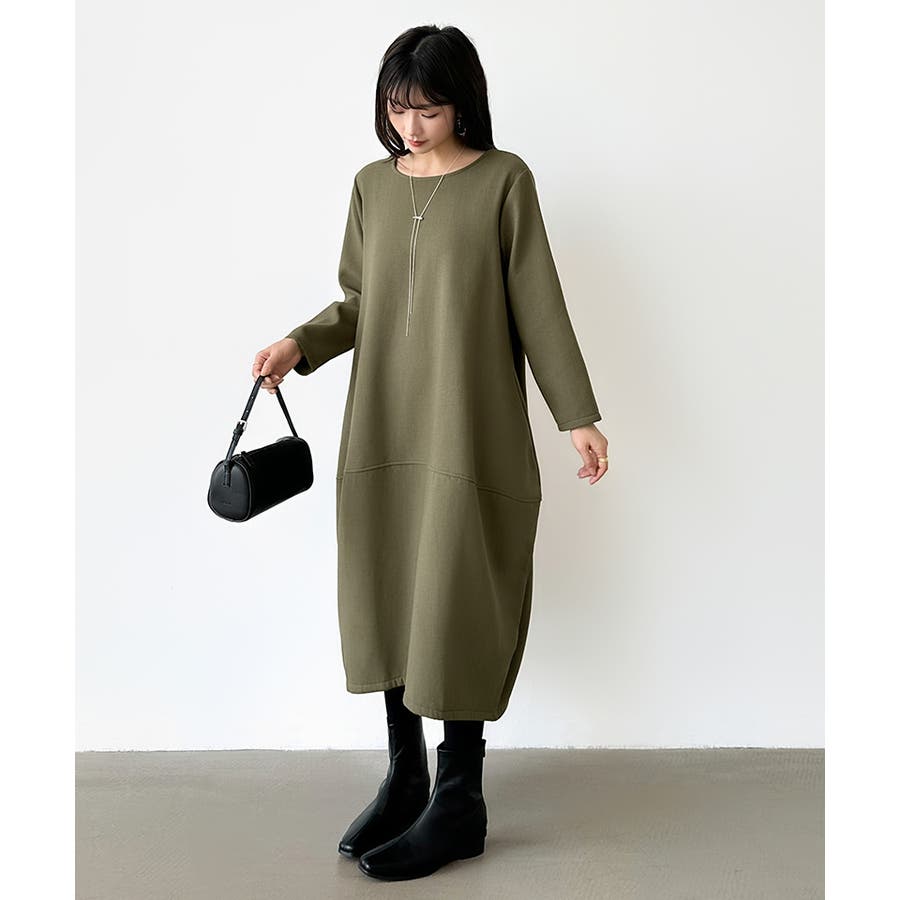 裏起毛 コクーンワンピース コットンリネンワンピース