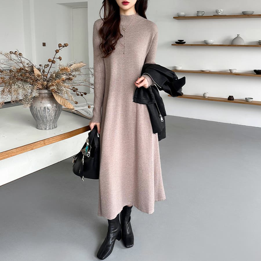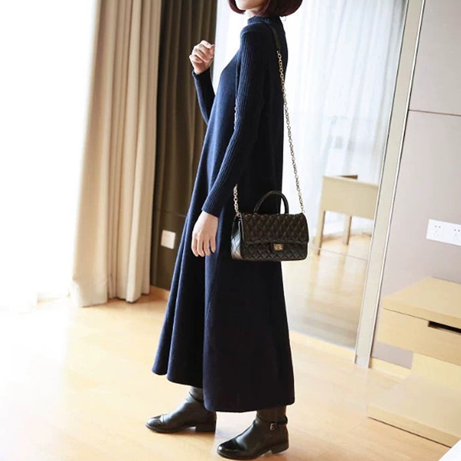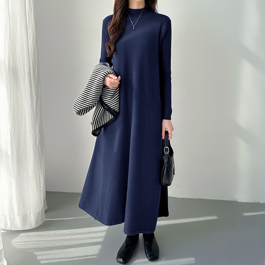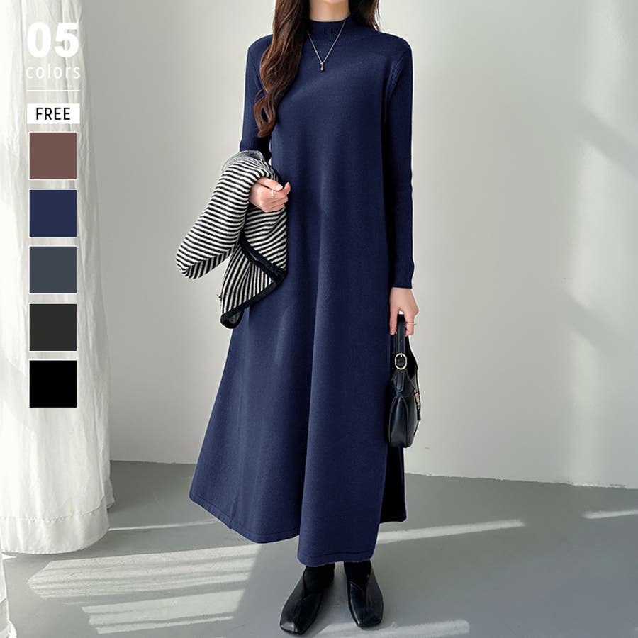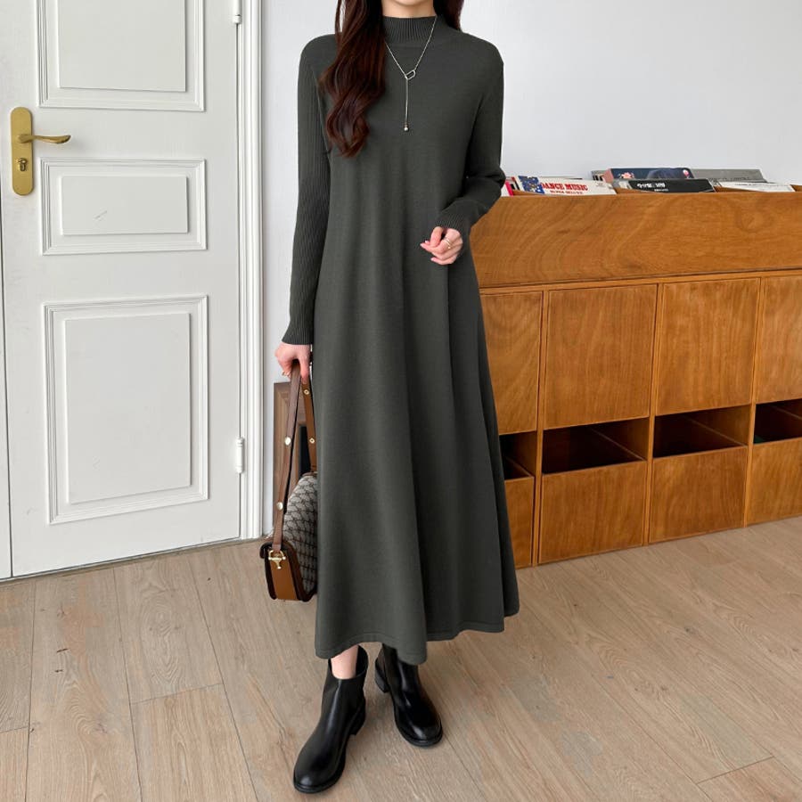 ニットワンピース リブニット タートルネック ハイネック ロング丈 レディース ワンピース ロングワンピース ロング ロング丈 マキシ マキシ丈 フレアワンピース 長袖 ハイネック タートルネック カットソー スタンドネック ニット リブ リブニット Aライン aライン ゆったり 大きいサイズ 体型カバー フリーサイズ 無地 プルオーバー 楽ちん ワンピ やわらかい やわらか ソフトな肌触り チクチクしない ふんわり 暖かい あったか 伸縮性 ストレッチ シンプル オフィス オフィスカジュアル フォーマル カジュアル きれいめ 大人 可愛い かわいい 大人可愛い 大人かわいい 大人可愛いワンピース おしゃれ 上品 ママコーデ 高見え プチプラ シニア ネイビー ブラウン ブラック ダークグレー 紺 茶 黒 灰 ワンピース秋冬 秋冬 春 秋 冬 春服 秋服 冬服 春物 秋物 冬物 韓国 韓国ファッション 20代 30代 40代 50代 cocomomo ココモモ