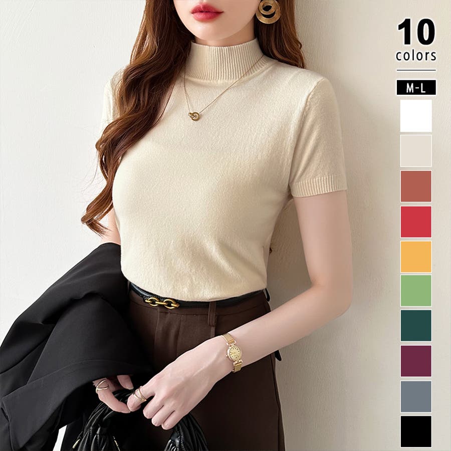 サマーニット ニット レディース フレンチスリーブ トップス ハイネック 半袖 きれいめ フォーマル オフィス オフィスカジュアル フィット ストレッチ 夏ニット 上品 半袖ニット 細見え 美人フレンチ シンプル 無地 プルオーバー タイト ニットレディース レディス 半袖セーター カットソー tシャツ プルオーバー インナー リブ 伸縮性 セーター サマー サマーセーター tops やわらかい 柔らかい やわらか セレモニー 食事会 会食 式典 行事 セクシー カジュアル フェミニン きれい め キレイめ 大人 かわいい 可愛い 大人可愛い おしゃれ オシャレ プチプラ 高見え トレンド ヒット 商品 おすすめ 服 ファッション コーデ ランキング 人気 ママ ママコーデ 母 女性 女子 通勤 通学 ブラウン 茶色 ダークグリーン グリーン 緑 ライトグリーン イエロー 黄色 パープル 紫 グレー 灰色 レッド 赤 ホワイト 白 ブラック 黒 ベージュ カラー 新作 レディース春夏 春ニット 春用 夏用 春トップス 夏トップス 春服 夏服 春物 夏物 春夏 春 夏 韓国 韓国ファッション 20代 30代 40代 50代 cocomomo ココモモ