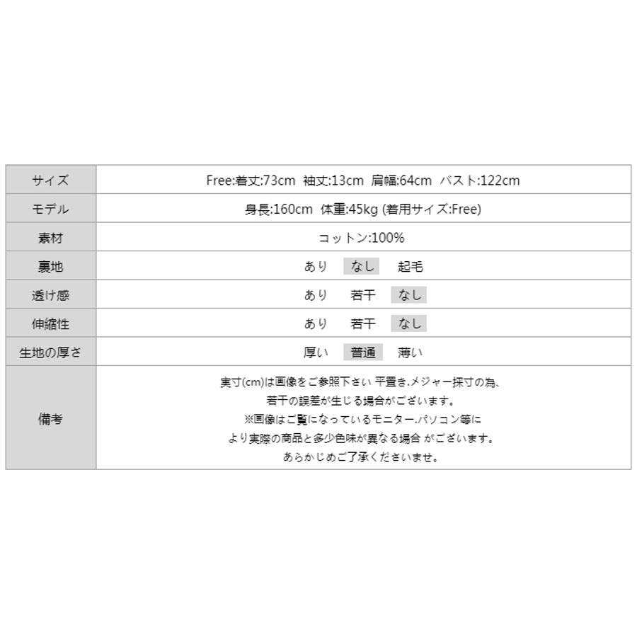 | サイズ | Free: 着丈:73cm 袖丈:13cm 肩幅:64cm バスト:122cm |