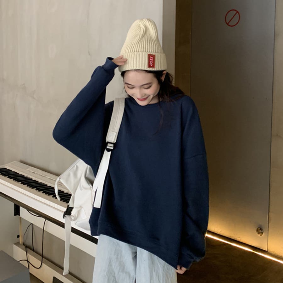 トレーナー シンプルスウェット トップス 無地 ロゴトレーナー 大きいサイズ レディース ゆったり 着回し 重ね着 休日 カジュアル おしゃれ ママコーデ 韓国 韓国ファッション 20代 30代 40代 50代 春 秋 冬 春服 秋服 冬服 秋冬