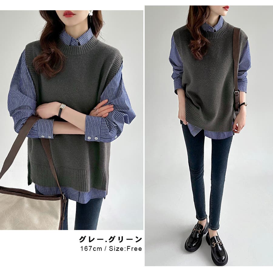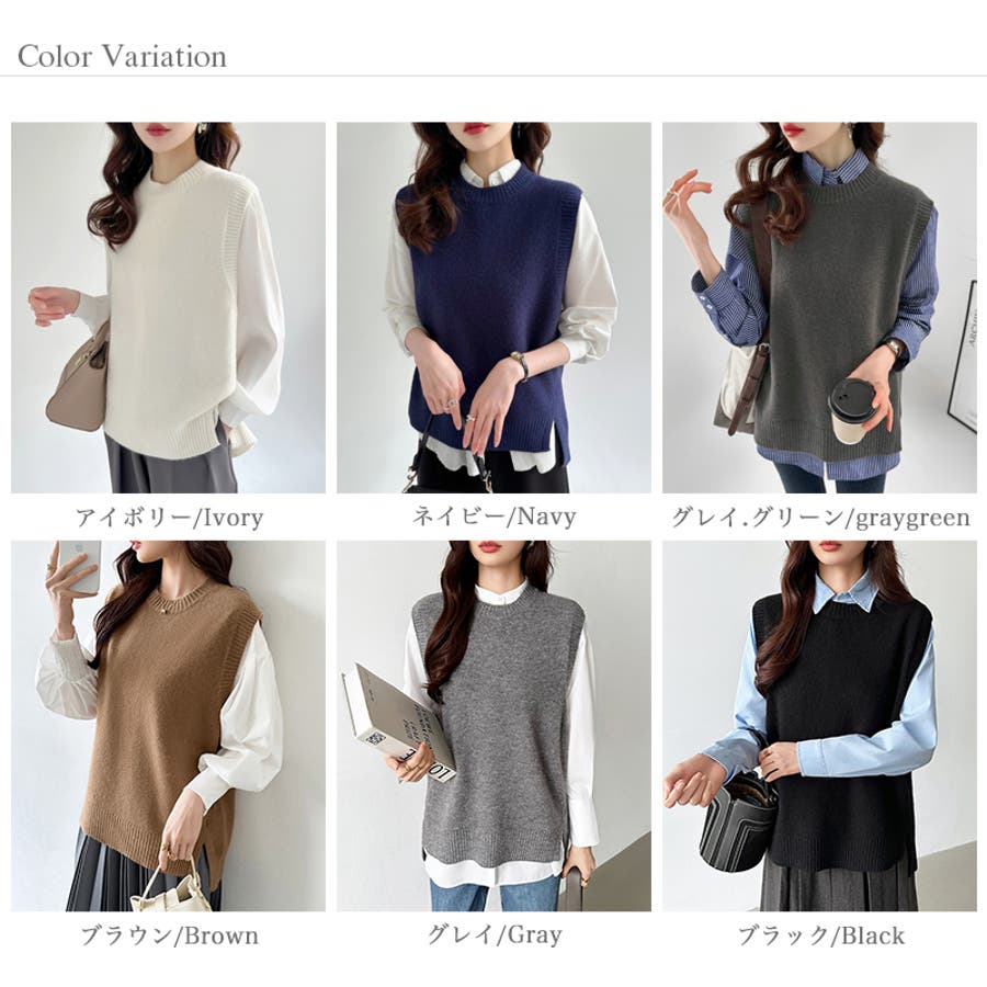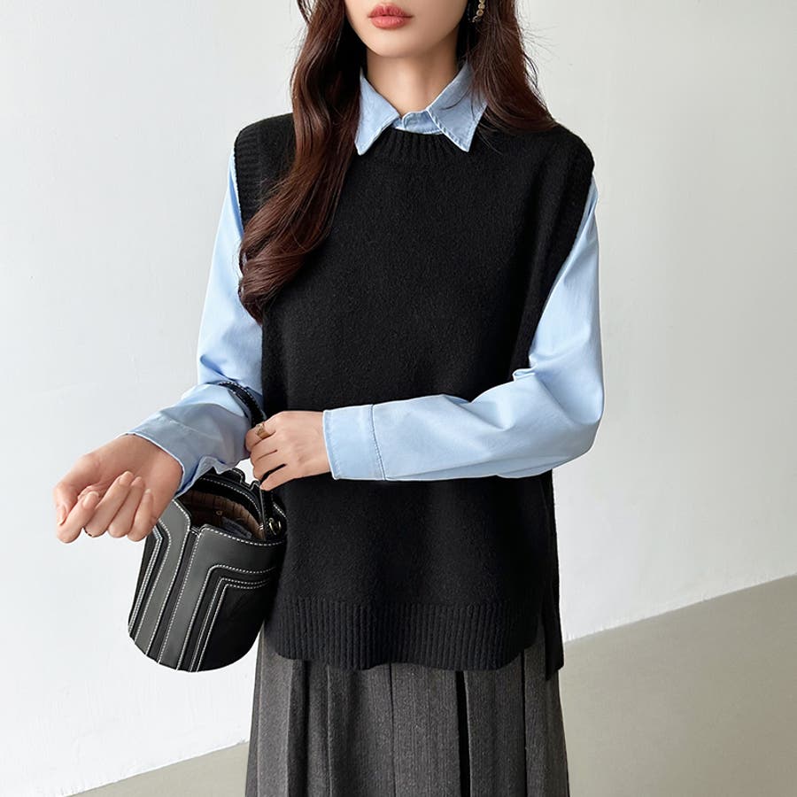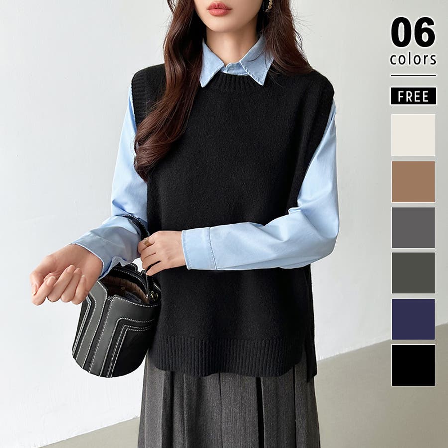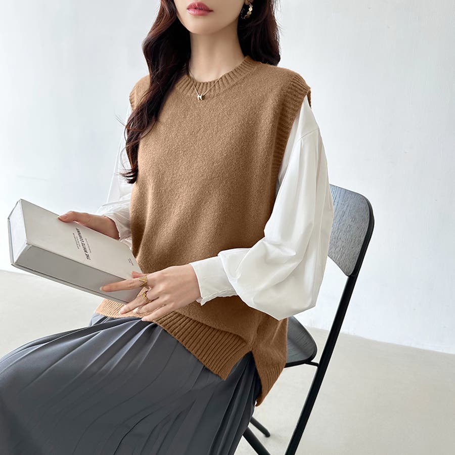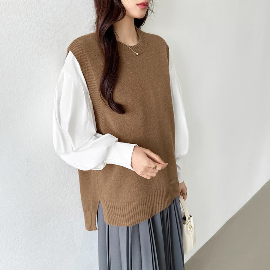 レディースニットベスト ニット ベスト セーター トップス ラウンドネック サイドスリット 可愛い カジュアル 通勤 通学