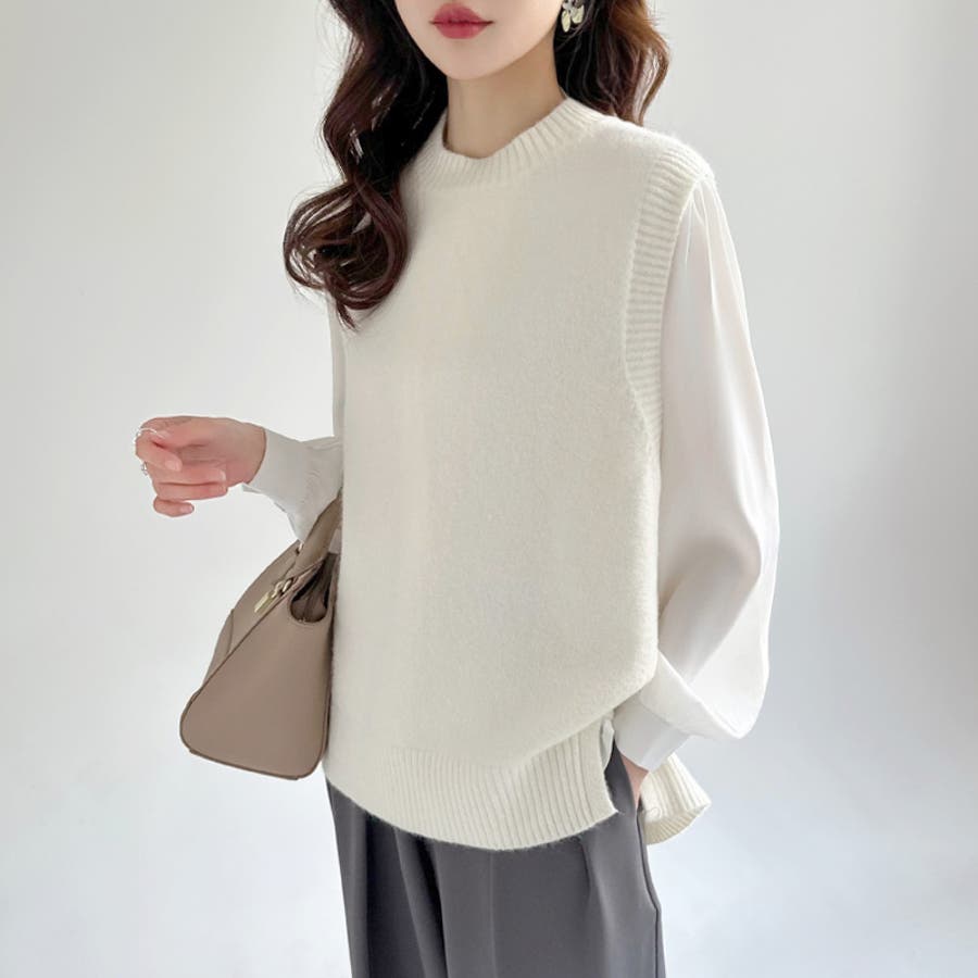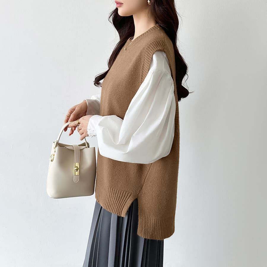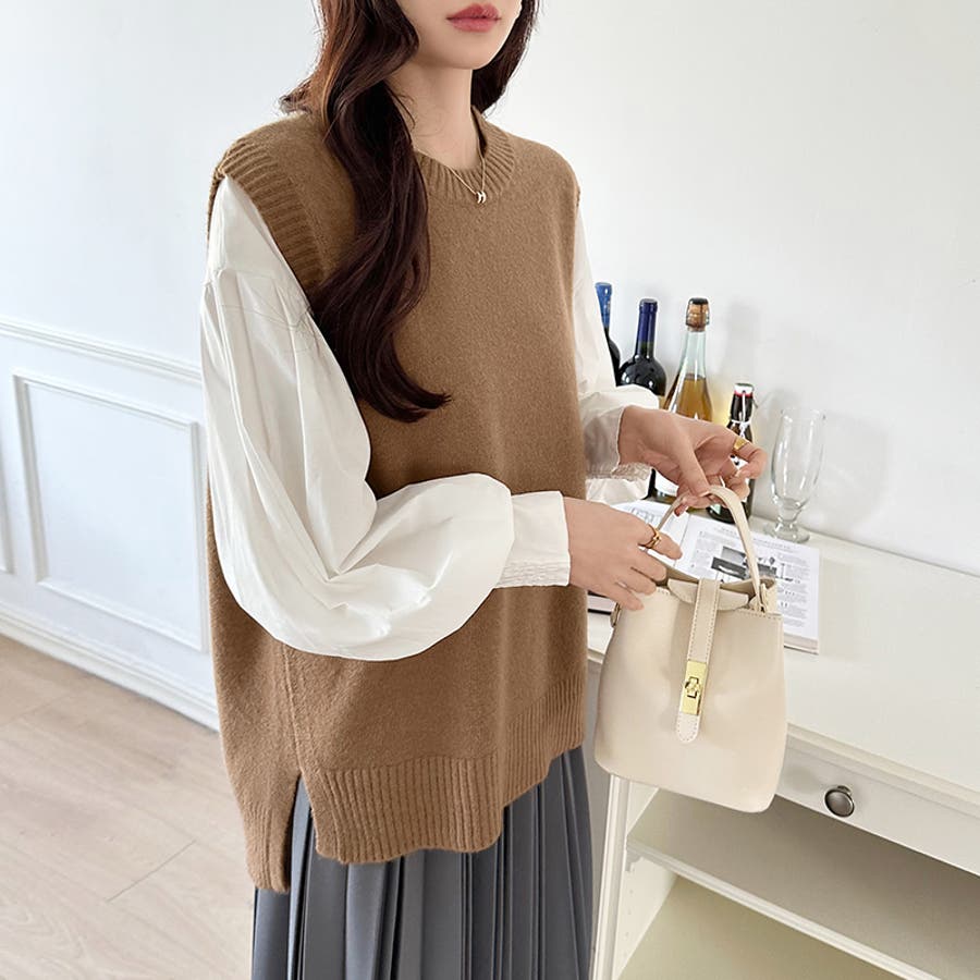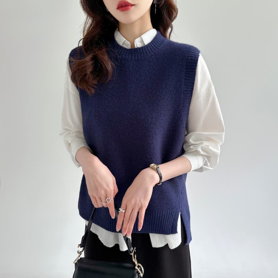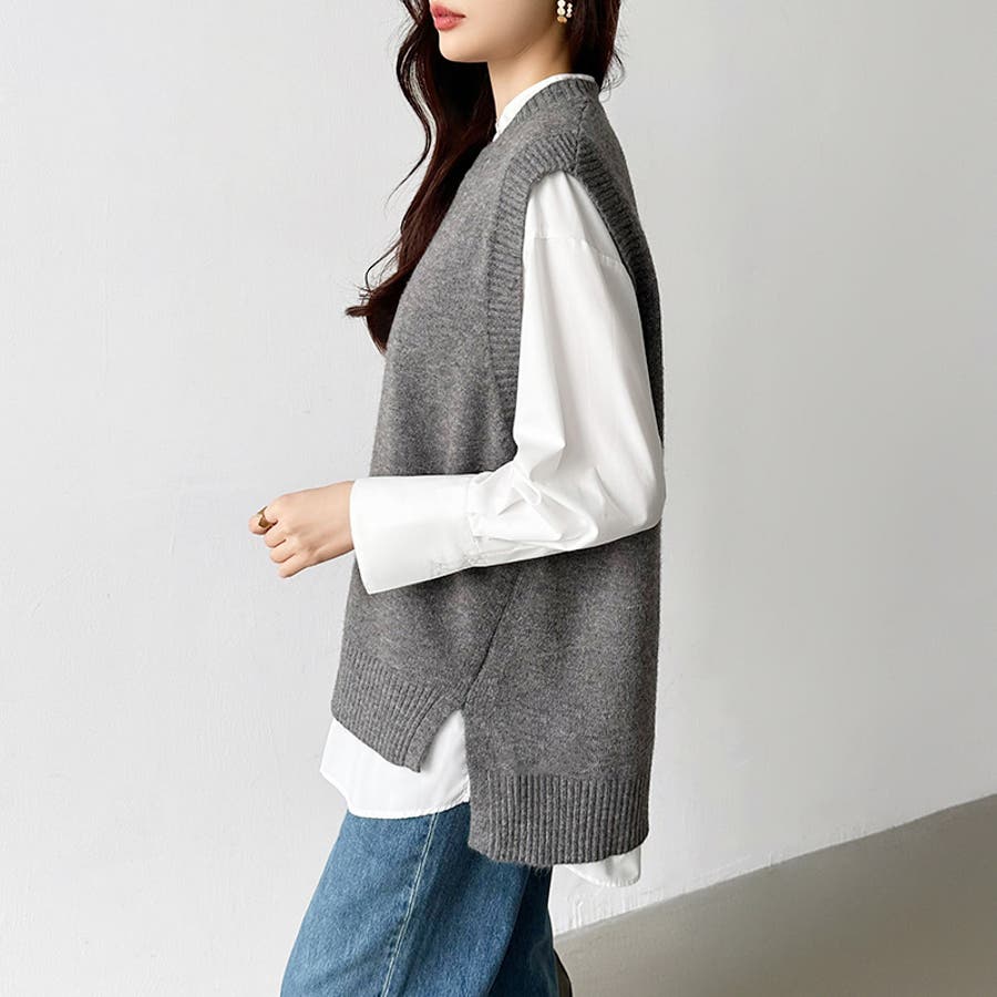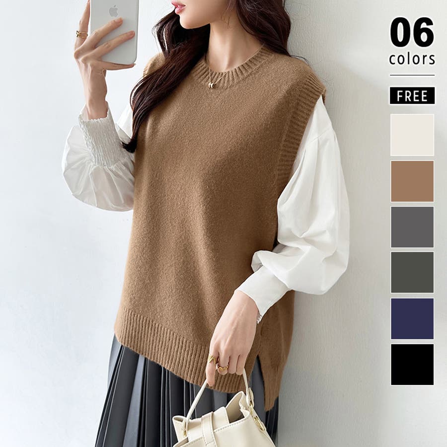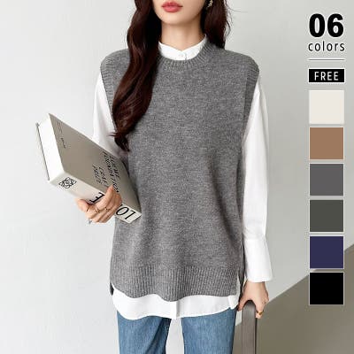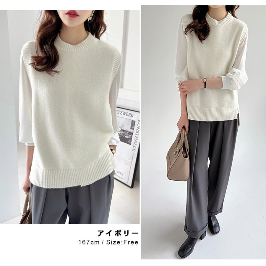 レディースニットベスト ニット ベスト セーター トップス ラウンドネック サイドスリット 可愛い カジュアル 通勤 通学