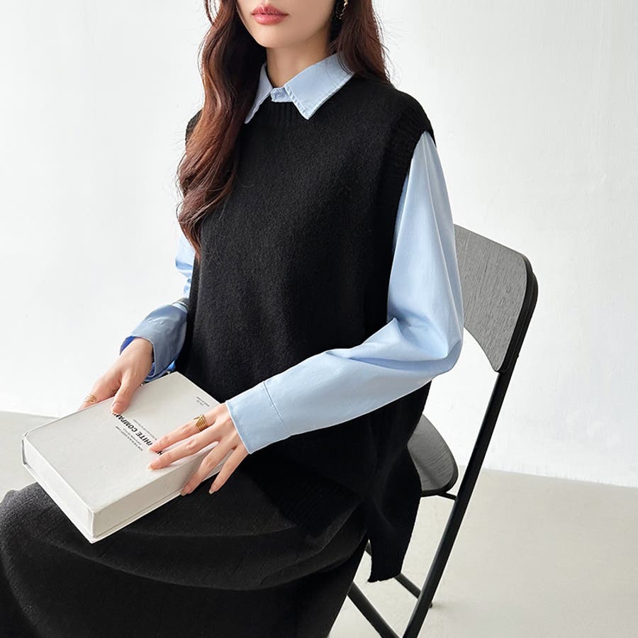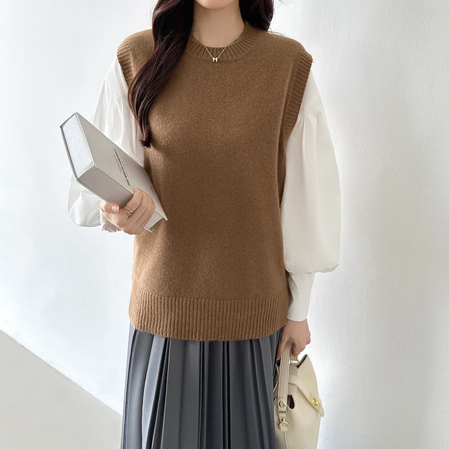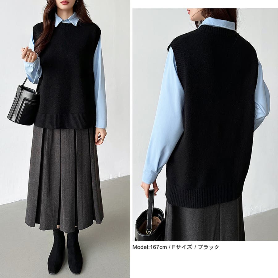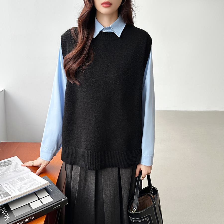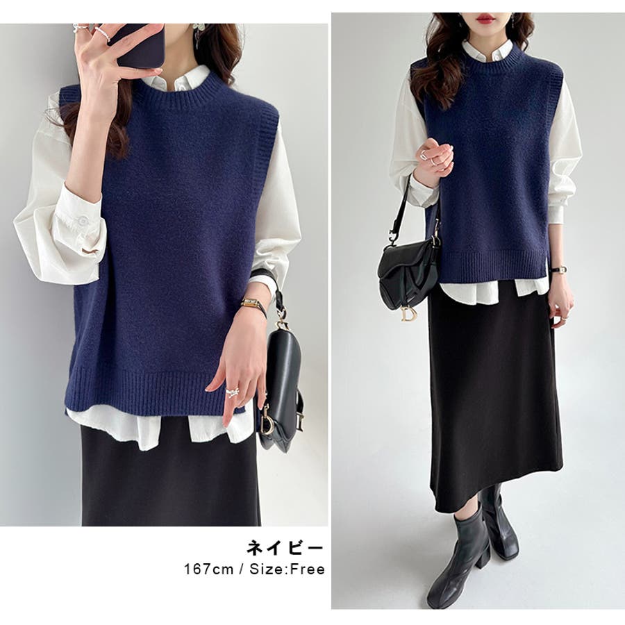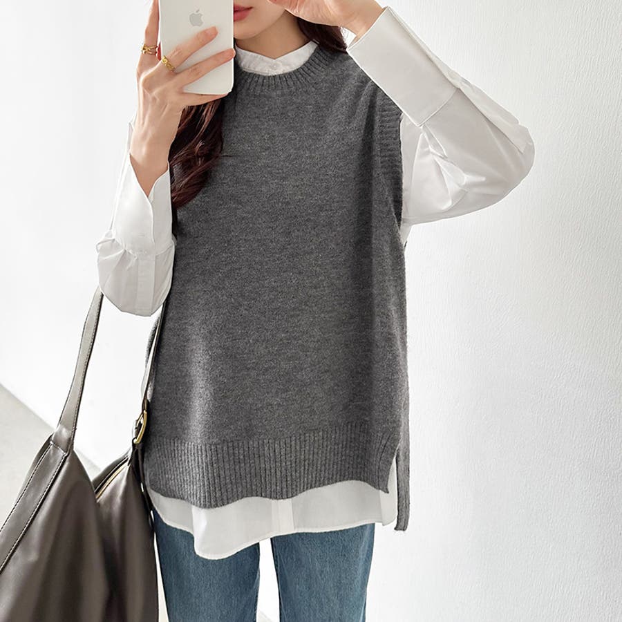 レディースニットベスト ニット ベスト セーター トップス ラウンドネック サイドスリット 可愛い カジュアル 通勤 通学