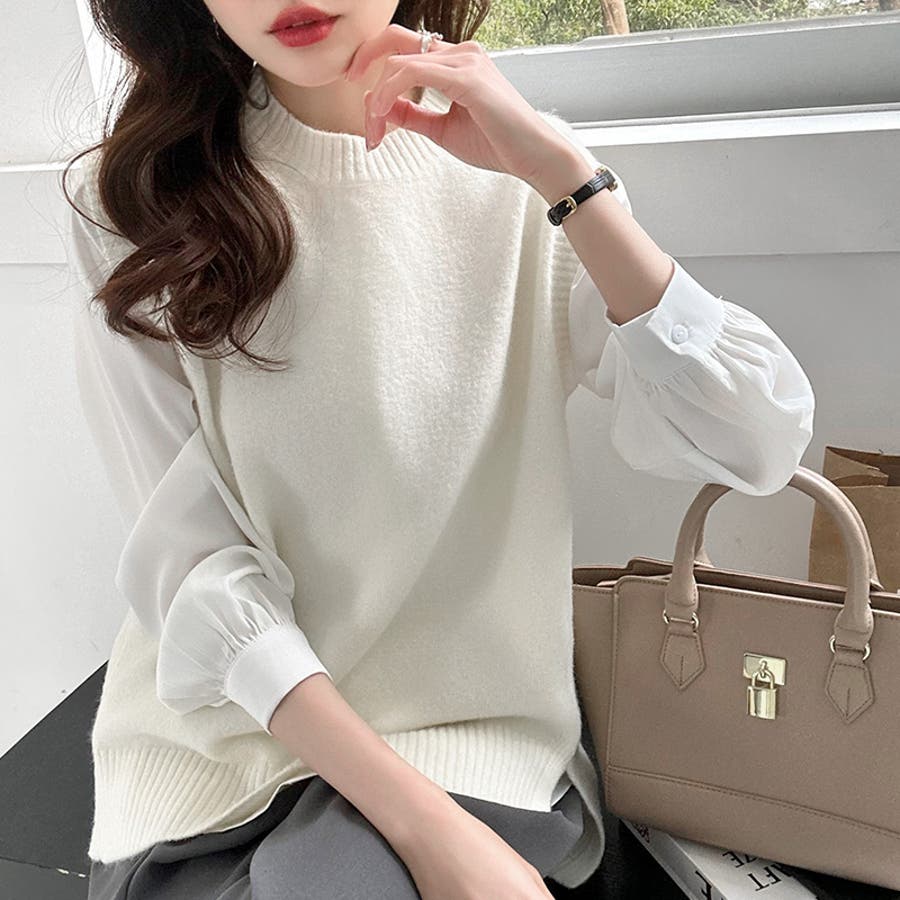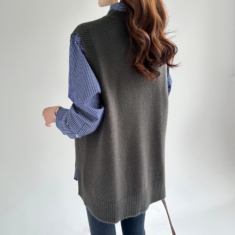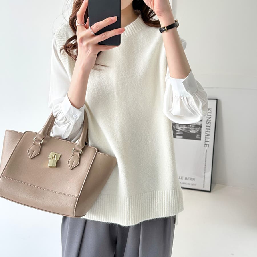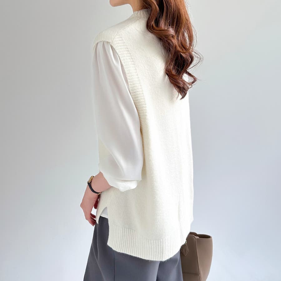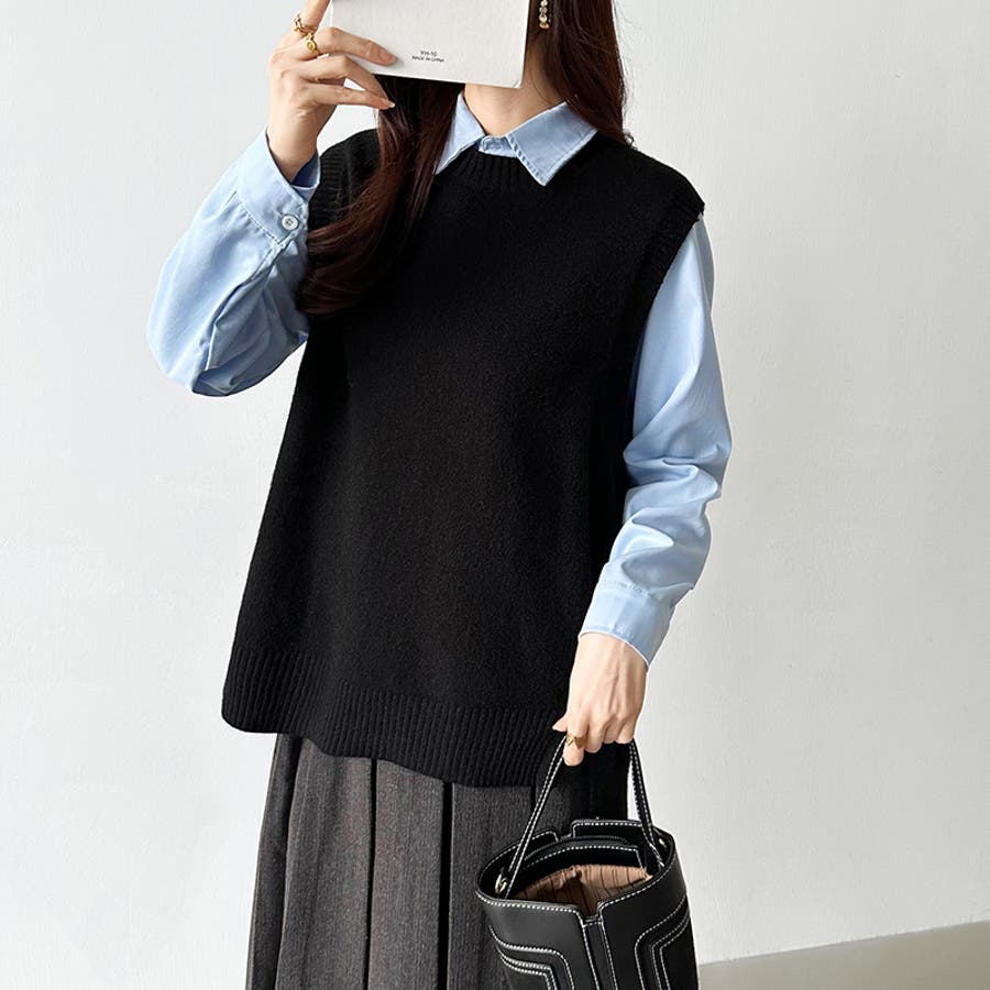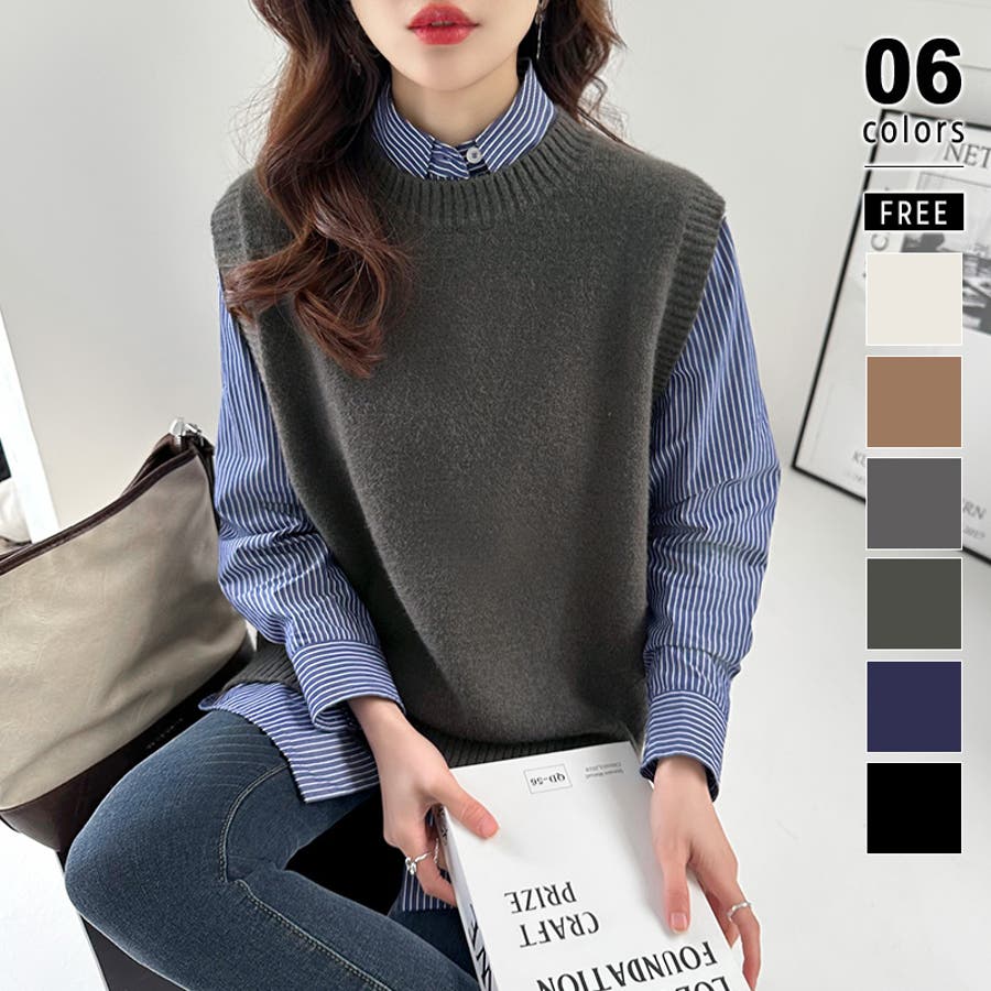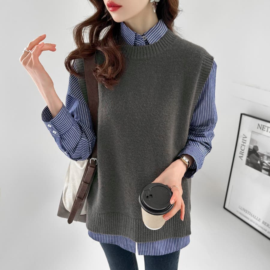 レディースニットベスト ニット ベスト セーター トップス ラウンドネック サイドスリット 可愛い カジュアル 通勤 通学