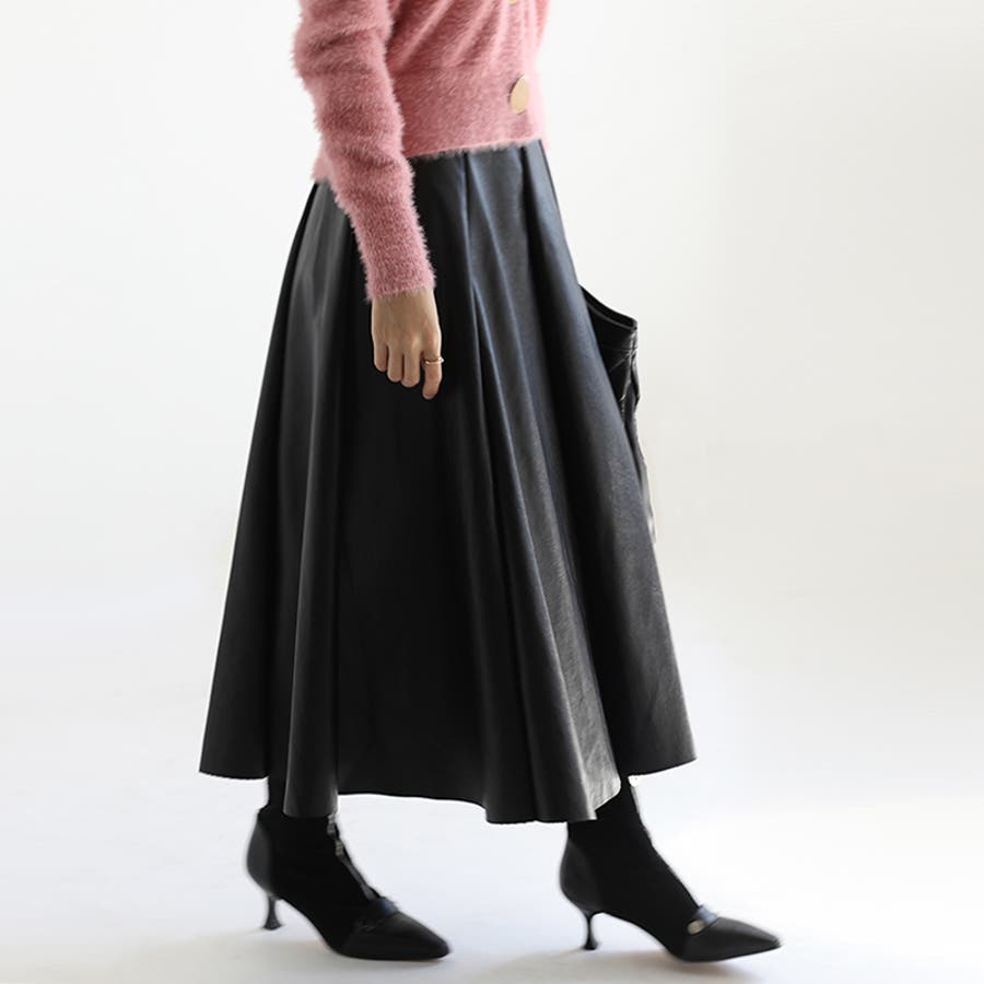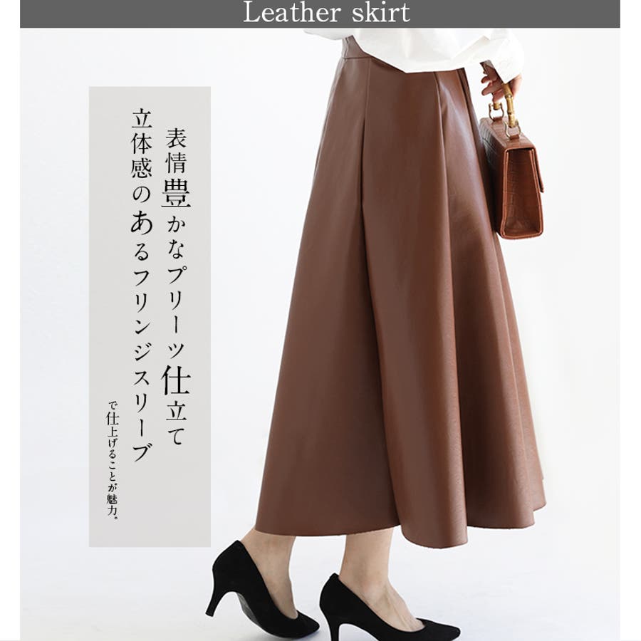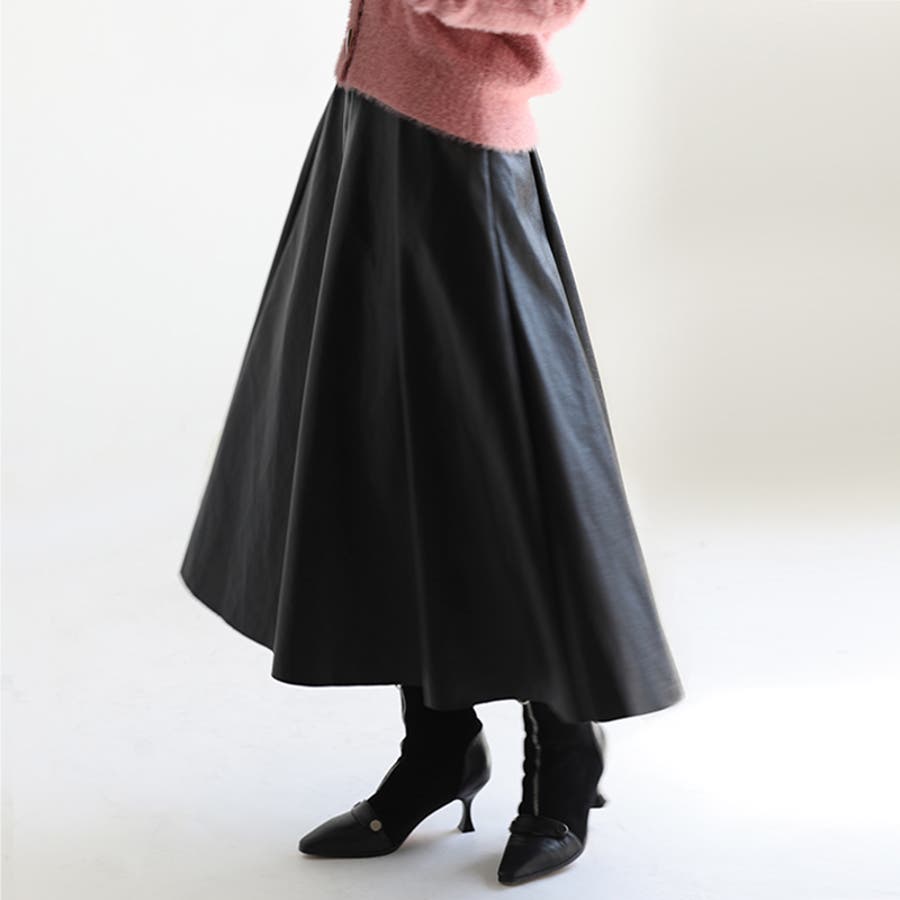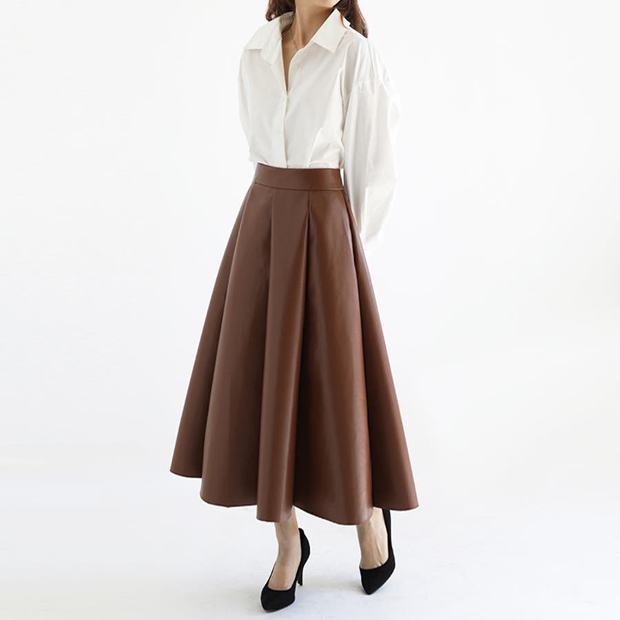 レディース ボトムス スカート フェイクレザー フレアスカート ハイウエスト ロングスカート シンプル オフィスカジュアル