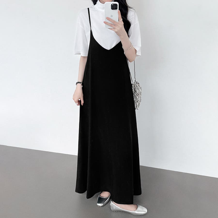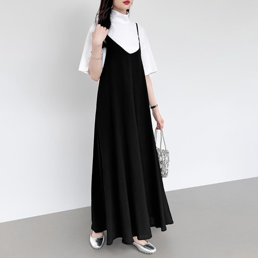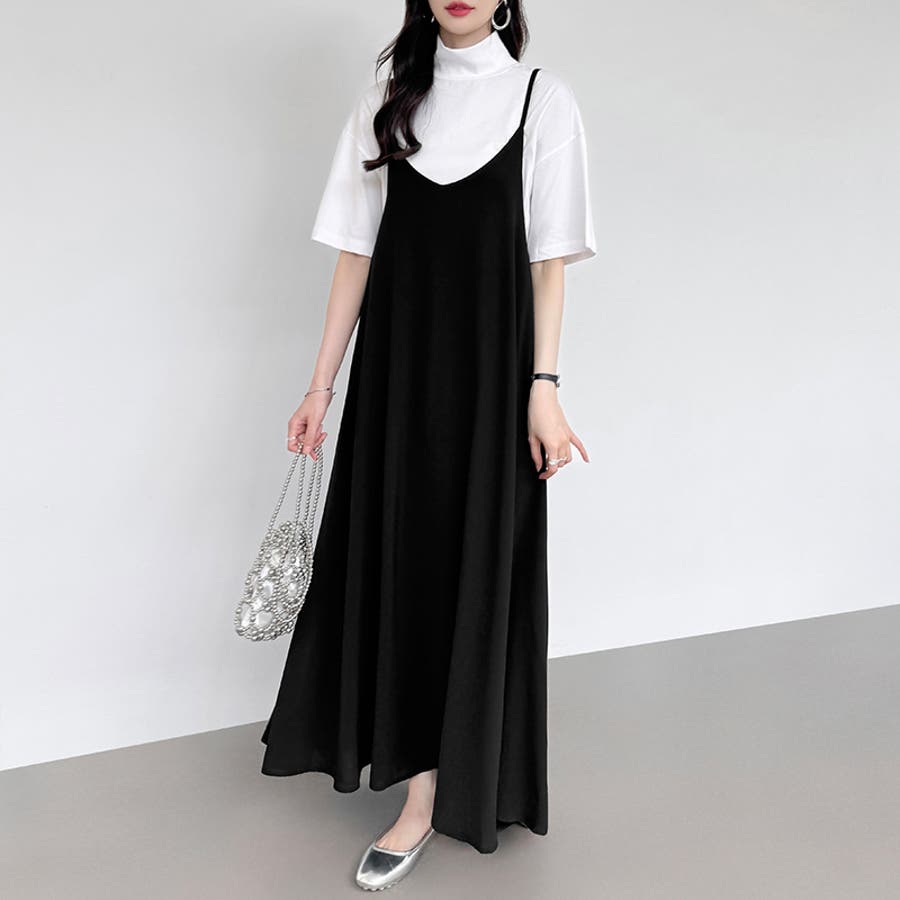 キャミソール ワンピース 無地 ゆったり 着痩せ 韓国ファッション サロペット レディース 可愛いカジュアル プチプラ 20代 30代 40代 ココモモ