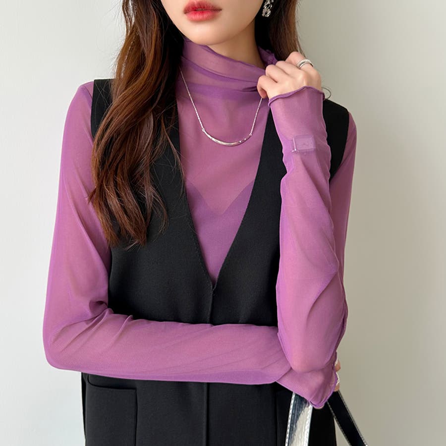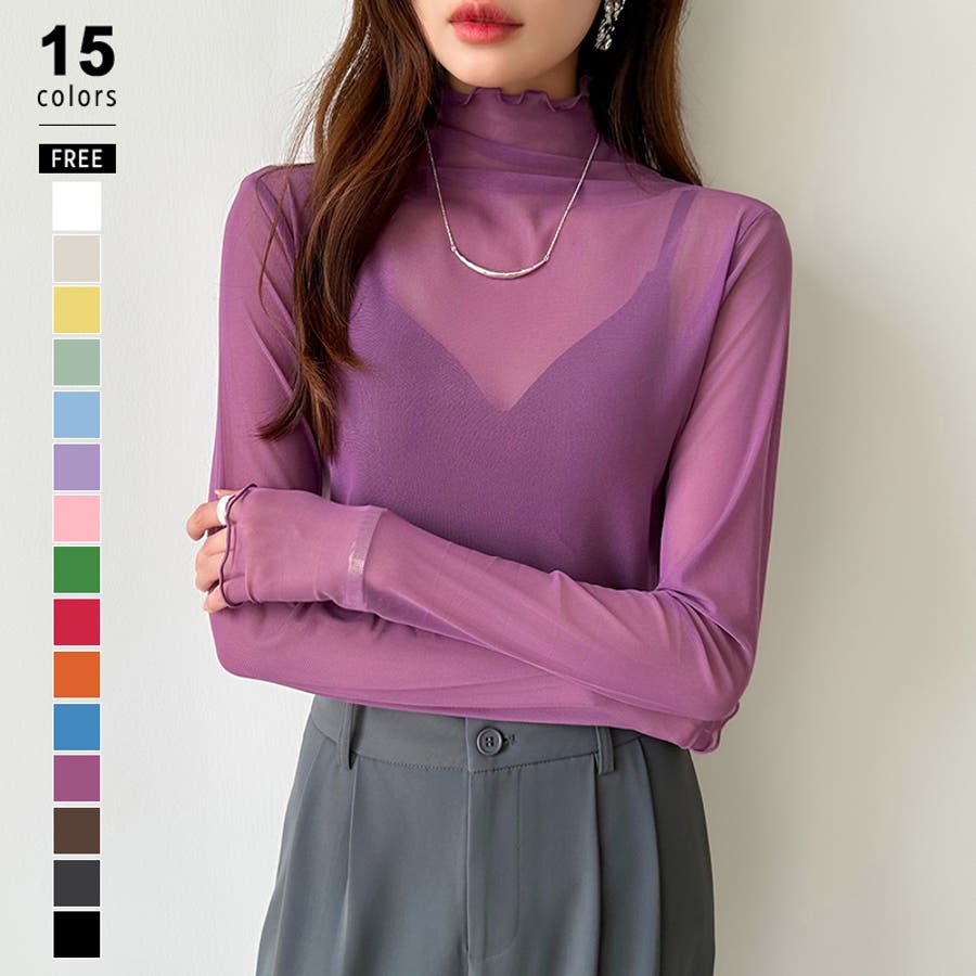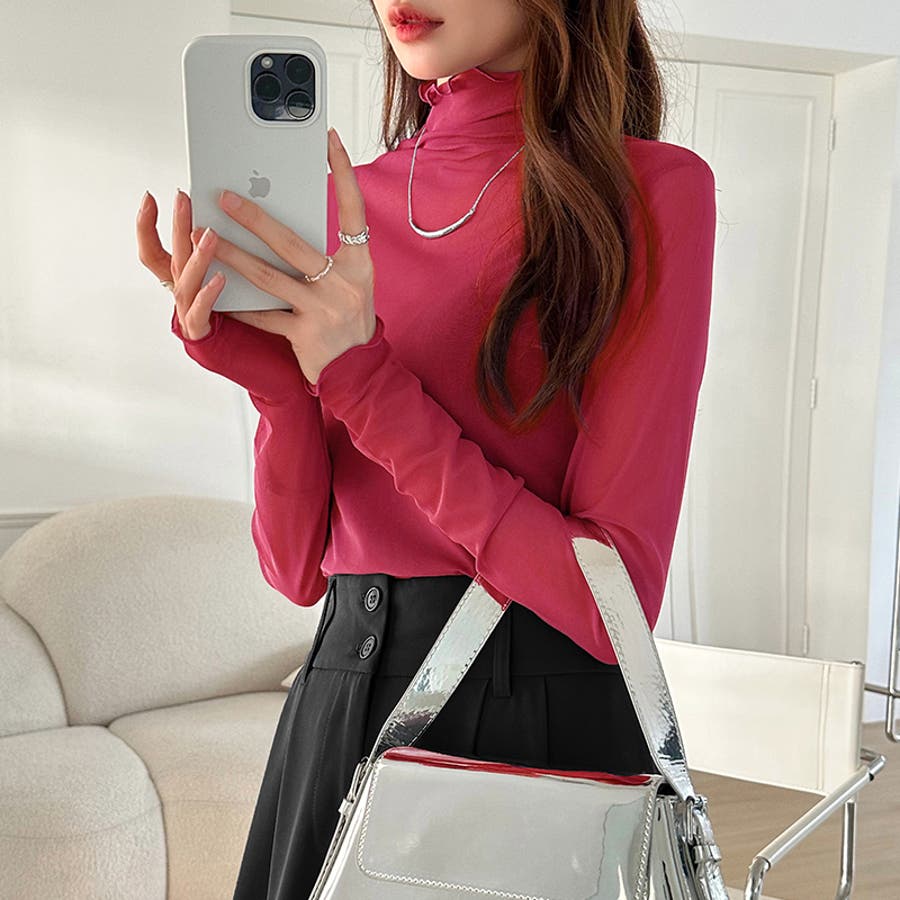 レイヤードにも使いやすい!カラー豊富! シアートップス ハイネック