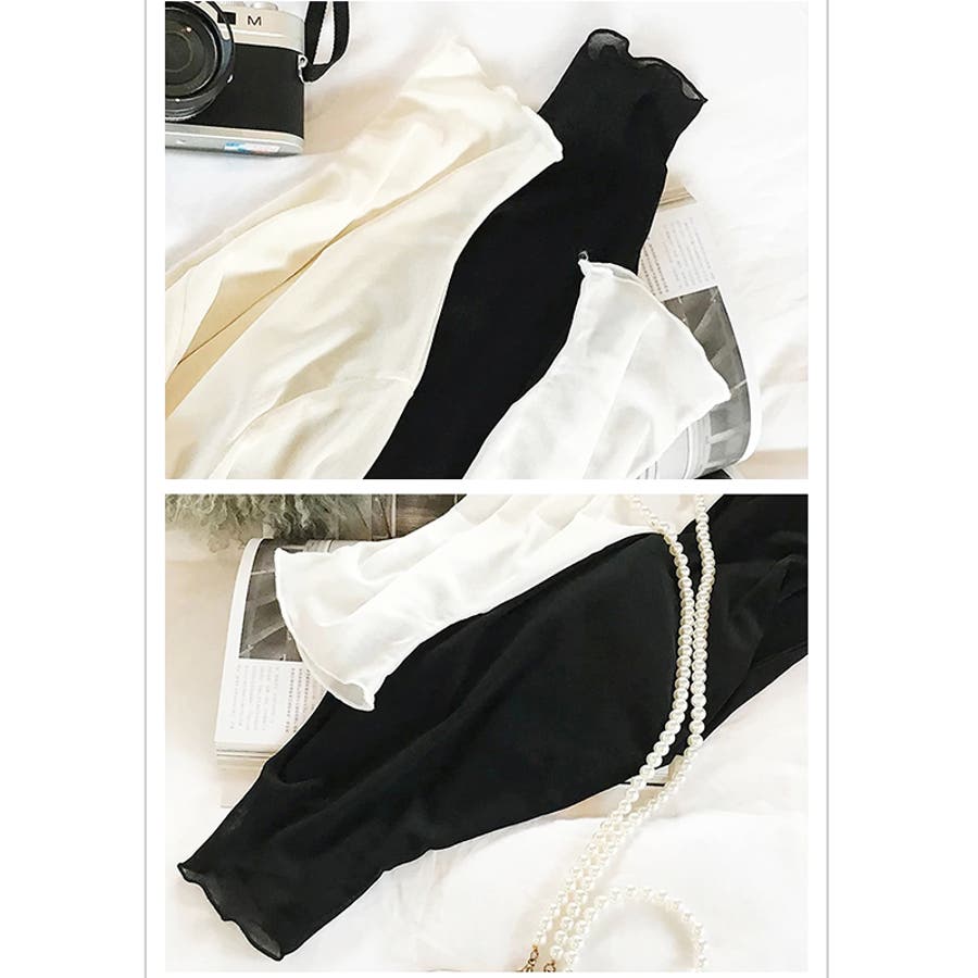 ヒートテックを着て、上からこちらの商品を着て、さらにニット等を着て、首、手首から差し色としてチラ見せしてます。薄いとはいえ3枚着てると暖かいですし、何よりかわいい。