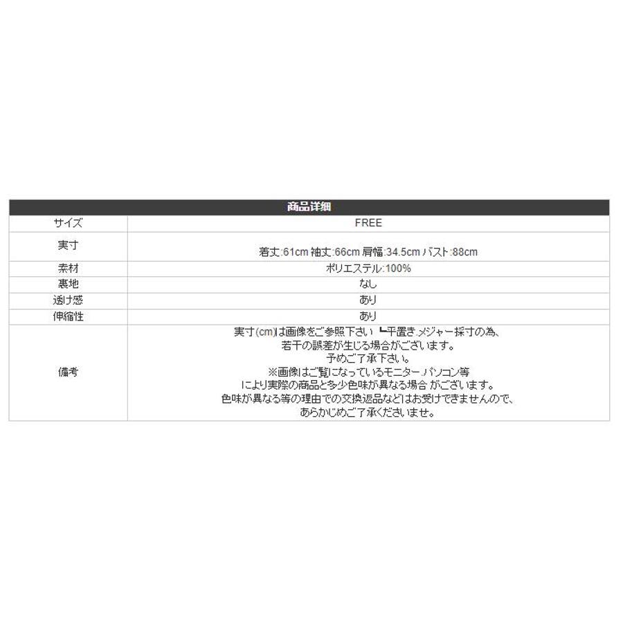 サイズ | FREE 着丈:61cm 袖丈:66cm 肩幅:34.5cm バスト:88cm |