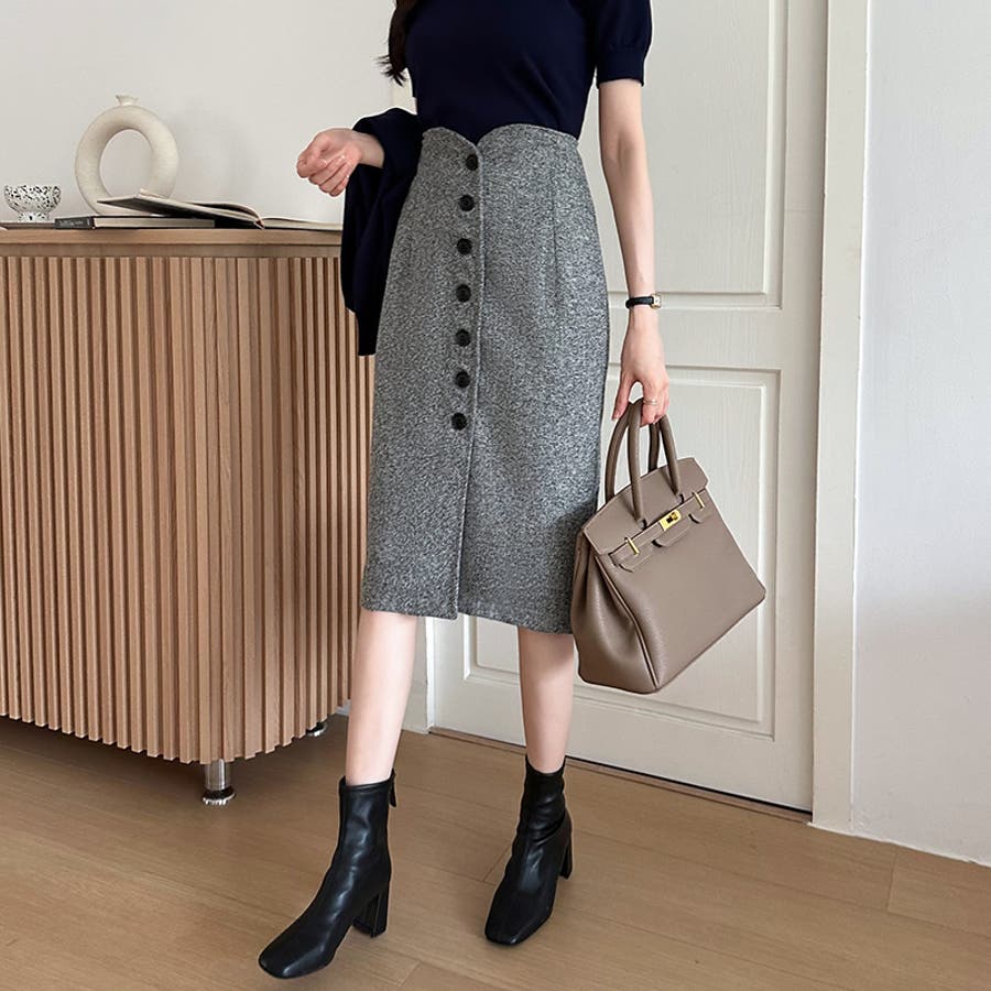 スカート タイトスカート ペンシルスカート タイト ミモレスカート ハイウエスト レディース ミモレ 丈 ミモレ丈 ミディ丈 ミドル丈 ひざ丈 ひざ下 膝丈 下 ボトムス ボタン フロントボタン 巻きスカート 着回し 着痩せ シンプル 無地 事務服 仕事 セレモニー フォーマル 入学式 入園式 オフィス オフィスカジュアル オフィスカジュアル秋冬 エレガント クラシカル カジュアル 上品 きれいめ きれい め キレイめ 大人 可愛い かわいい 大人可愛い オトナ女子 おしゃれ オシャレ 女性 母 ママ ママコーデ プチプラ 高見え フリーサイズ トレンド ヒット 商品 おすすめ 服 ファッション s m l xl sサイズ mサイズ lサイズ xlサイズ ダークグレー グレー 灰色 秋色 レディース秋冬 新作 2023ss 2023aw 2023AW 23年 2023 秋冬新作 秋冬 春 秋 冬 春服 秋服 冬服 韓国 韓国ファッション 10代 20代 30代 40代 50代 cocomomo ココモモ