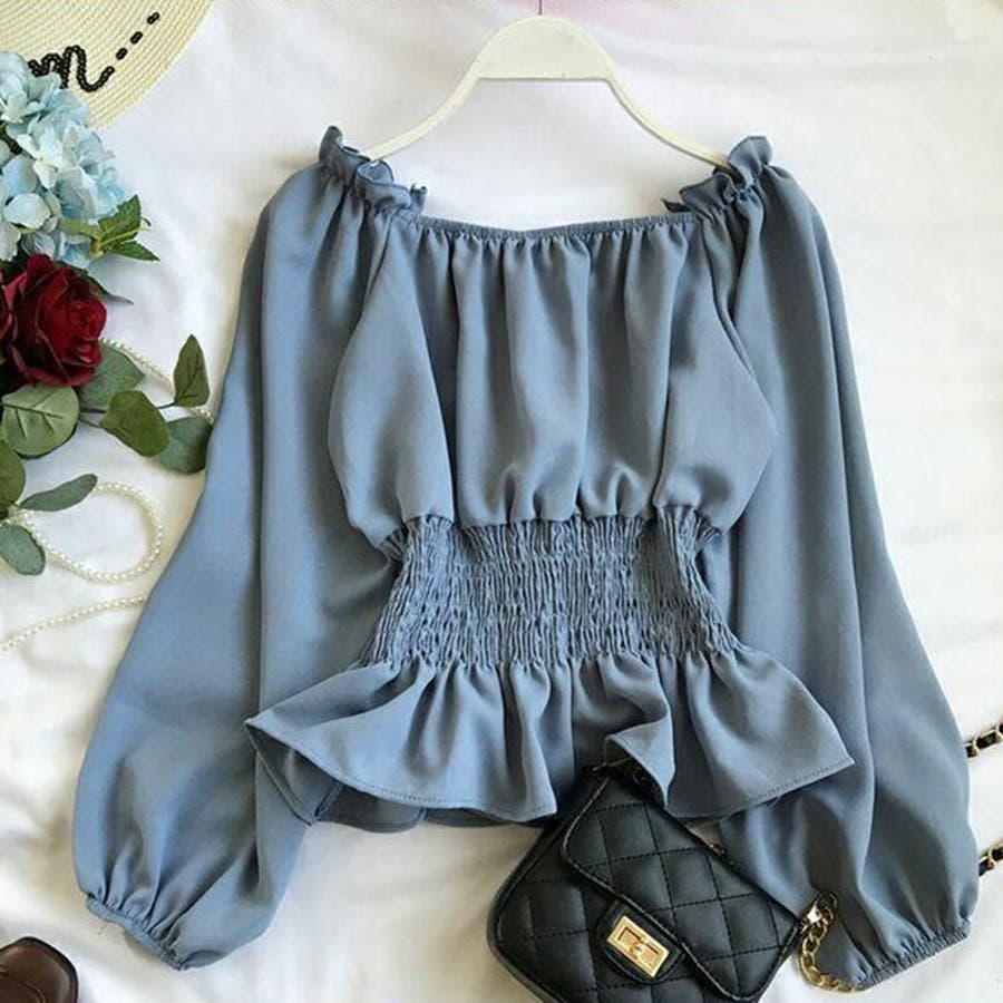 ギャザーチュニック 春ブラウス オフショルトップス