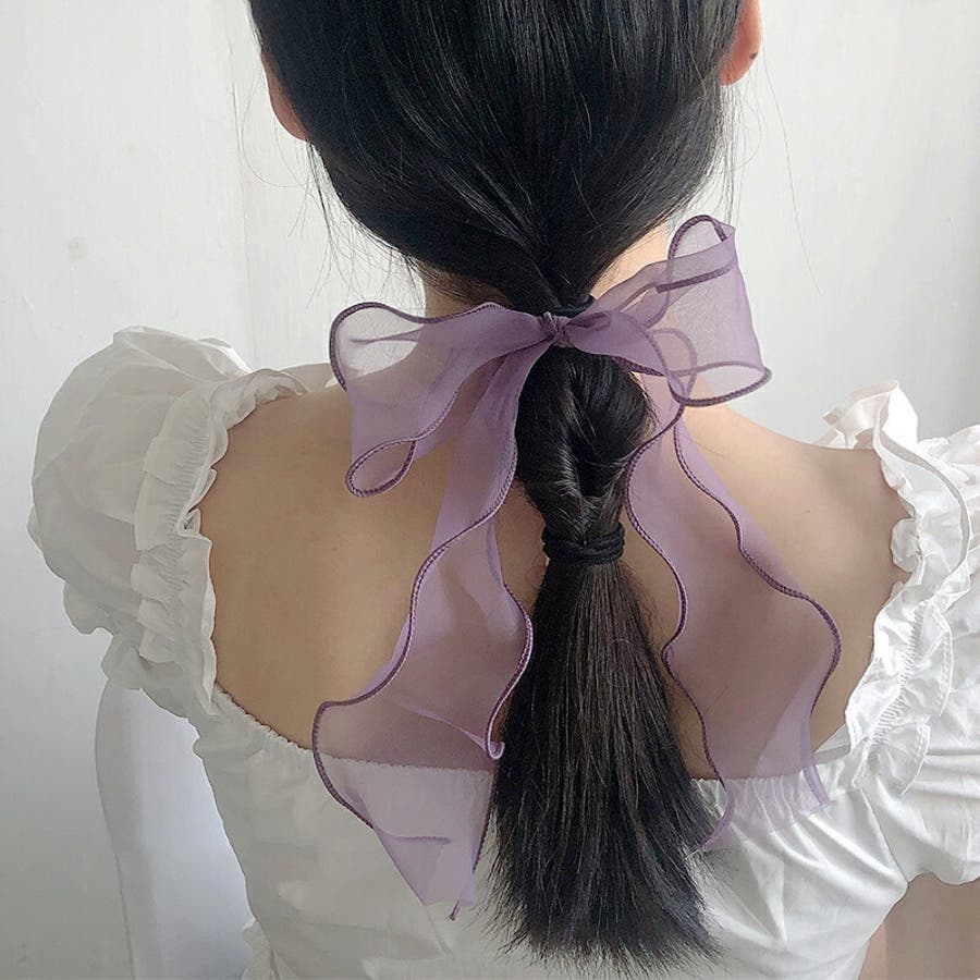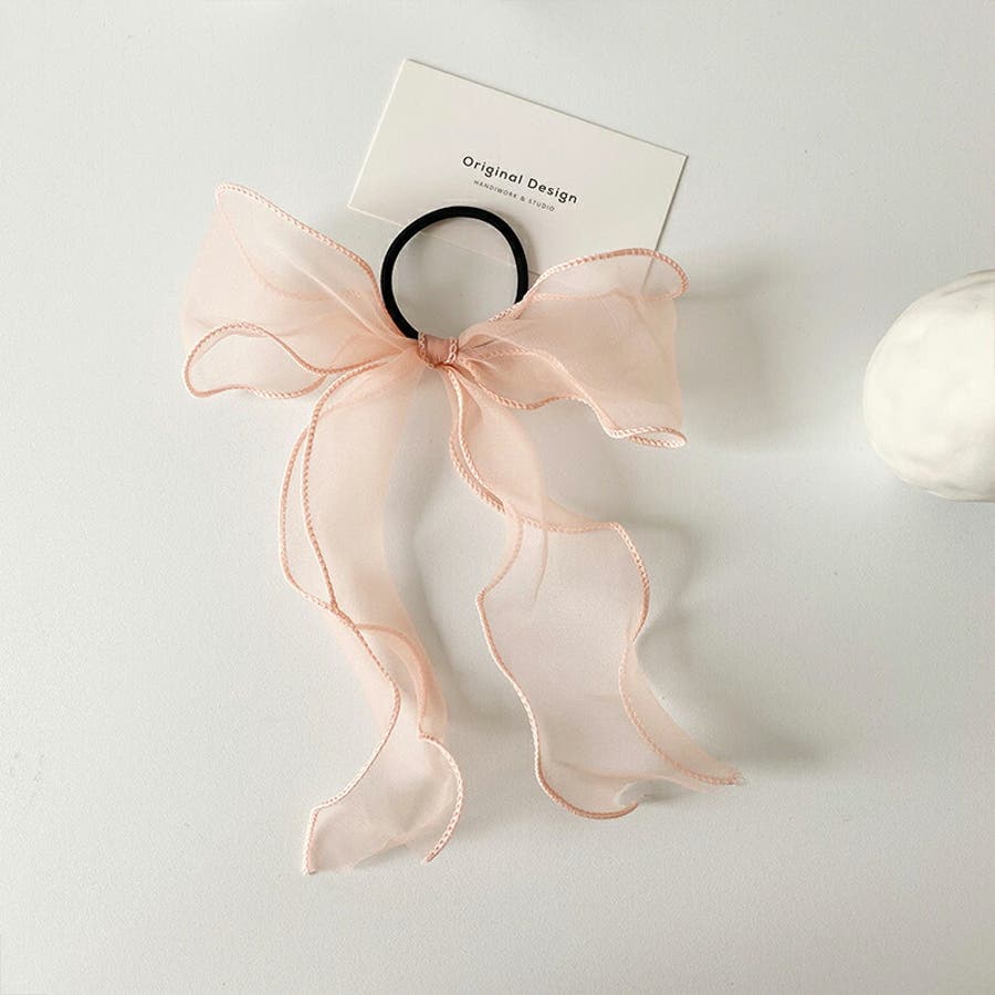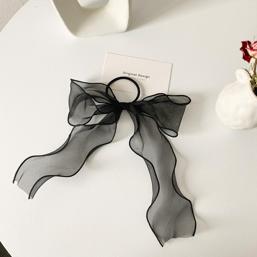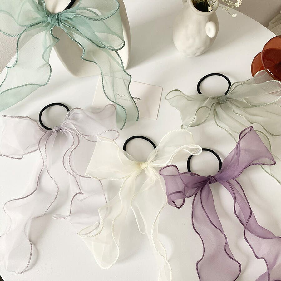シフォンリボン ヘアゴム ヘアアクセサリー ヘアポニー シアーリボン シフォン ビックチュールリボン
