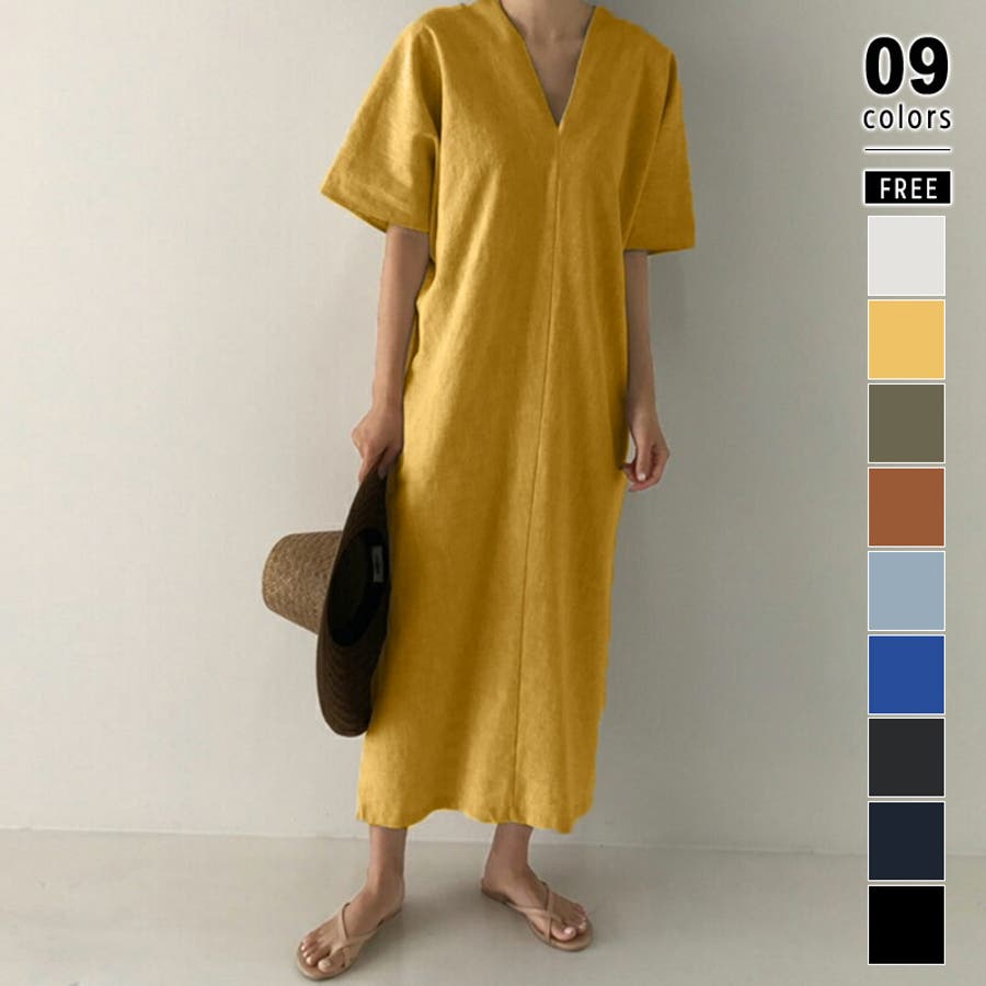 ワンピース レディース ロングワンピース マキシ丈ワンピース マキシ マキシ丈 リラックス 五分袖 5分袖 半袖 はんそで v vネック 深v リネン リネン混 綿 コットン 麻 綿麻 ロング ロング丈 ゆったり 大きめ 大きい 大きいサイズ 体型カバー お腹カバー 二の腕カバー 二の腕 カバー 隠し 服 細見え 着痩せ 袖あり スリット サイドスリット シンプル 無地 プルオーバー かぶるだけ らくちん 楽ちん 楽 1枚で決まる 洗える マタニティ さらさら 生地 涼しい お出かけ おでかけ 旅行 プチプラ 高見え リゾート ナチュラル カジュアル きれい きれいめ キレイめ 大人 かわいい 可愛い 大人可愛い オトナ女子 おしゃれ オシャレ 女性 女子 ママ ママコーデ 母 フリーサイズ プチプラ トレンド ヒット 商品 おすすめ 服 ファッション コーデ フリーサイズ ワンピース春 ワンピース夏 ワンピース春レディース ワンピースレディース夏 ワンピースレディース ワンピース春物 ワンピース夏物 春ワンピ 夏ワンピ 春ワンピース 夏ワンピース ワンピース長め ワンピースゆったり ワンピース可愛い ワンピースマキシ丈 リラックスワンピース オシャレワンピース 大人ワンピース 大人ワンピ カジュアルワンピース ワンピース春夏 春ワンピ 春ワンピース 夏ワンピ 夏ワンピース 秋ワンピ 秋ワンピース ワンピース秋冬ブラック 黒 ダークグレー 灰色 グリーン 緑 イエロー 黄色 ネイビー 紺 紺色 アイボリー ブラウン 茶色 グレーブルー 水色 ブルー 青 夏用 新作 春夏 春 夏 秋 春服 夏服 秋服 韓国 韓国ファッション 10代 20代 30代 40代 50代 60代 cocomomo ココモモ
