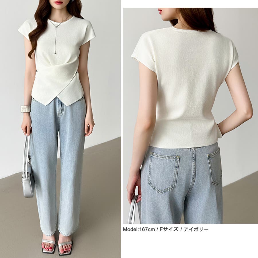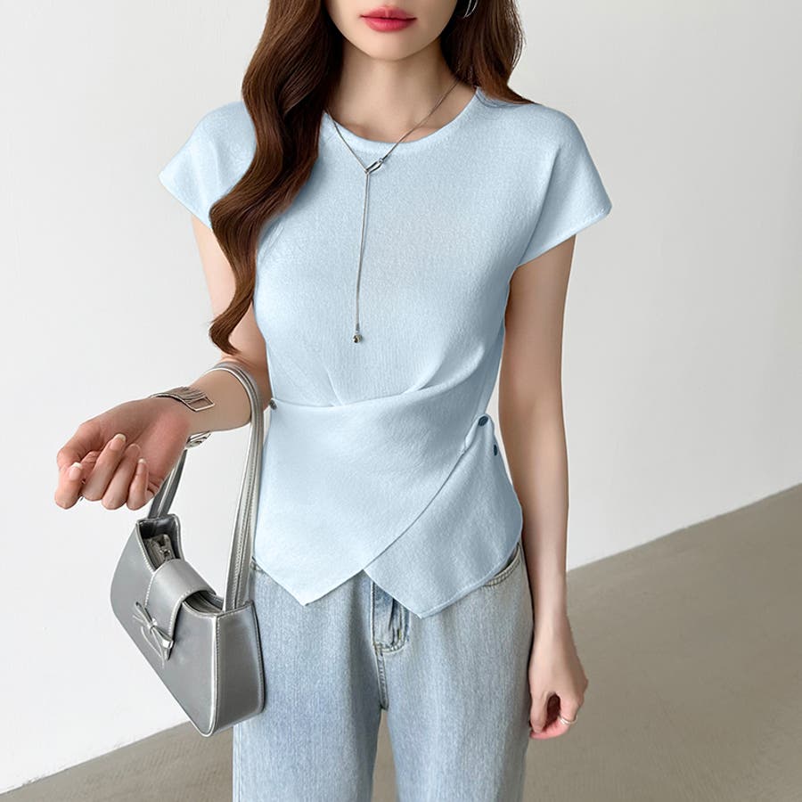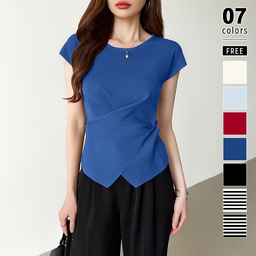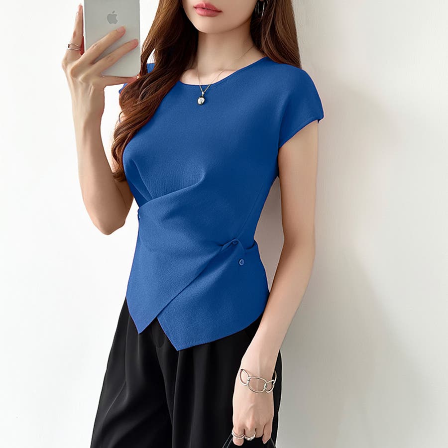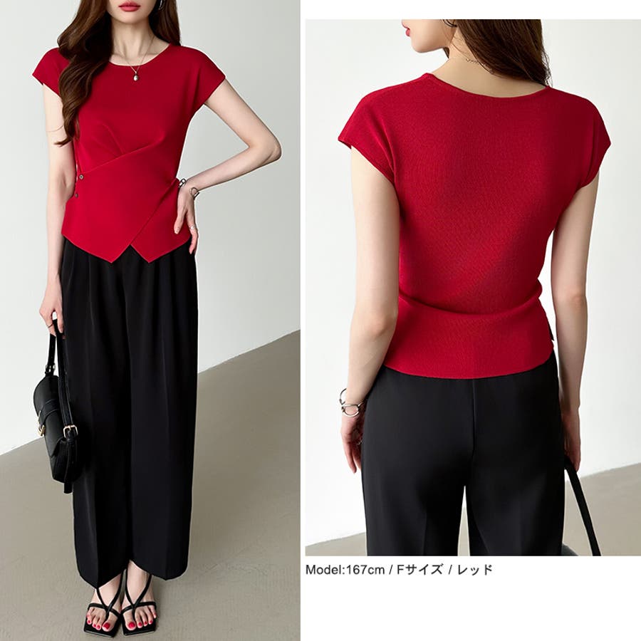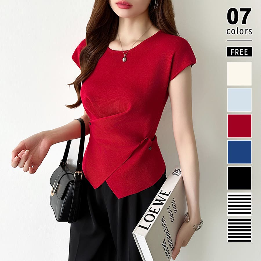 サマーニット クロス ドレープ トップス レディース フレンチスリーブ サマー ニット きれいめ ウエストクロス ドレープトップス サイドボタン クルーネック カットソー おしゃれ プルオーバー 半袖 フレンチスリーブニットプルオーバー キレイめトップス ラップトップス ラップ風 クロストップス ウエスト シェイプ フィット スリム タイト 半袖ニット 無地 tops 着回し 着まわし 伸縮性 伸びる ストレッチ 細見え 華奢見え 着痩せ 洗える 手洗い 手洗い可能 洗濯できる 洗濯 洗濯可能 洗濯可 オフィス オフィスカジュアル オフィスカジュアル春夏 オフィカジ 通勤 通学 おでかけ お出かけ 旅行 大人カジュアル カジュアル フェミニン オトナ かわいい 可愛い 大人 大人可愛い 大人かわいい きれい め キレイめ 綺麗め オシャレ 女性 母 ママ ママコーデ プチプラ 高見え トレンド ヒット 商品 おすすめ 服 服装 洋服 ファッション コーデ コーディネート フリーサイズ フリー サイズ アイボリー ブルー 水色 ダークブルー 青 レッド 赤 ブラック 黒 ボーダー 白黒 黒白 カラー レディース春夏 レディース春物 レディース夏物 レディース春 春トップス レディース夏 夏トップス きれいめカジュアル きれいめカジュアルレディース 新作 春夏 春 夏 春服 夏服 春物 夏物 春用 夏用 韓国 韓国ファッション 10代 20代 30代 40代 50代 60代 cocomomo ココモモ