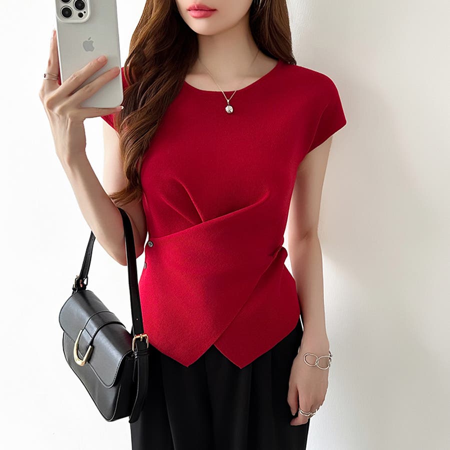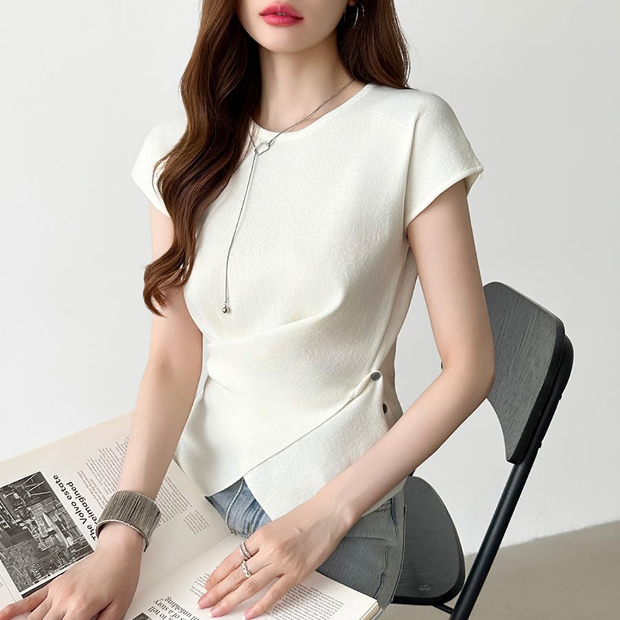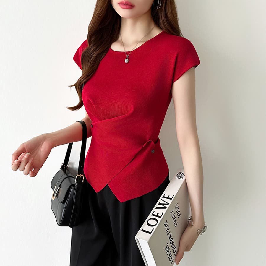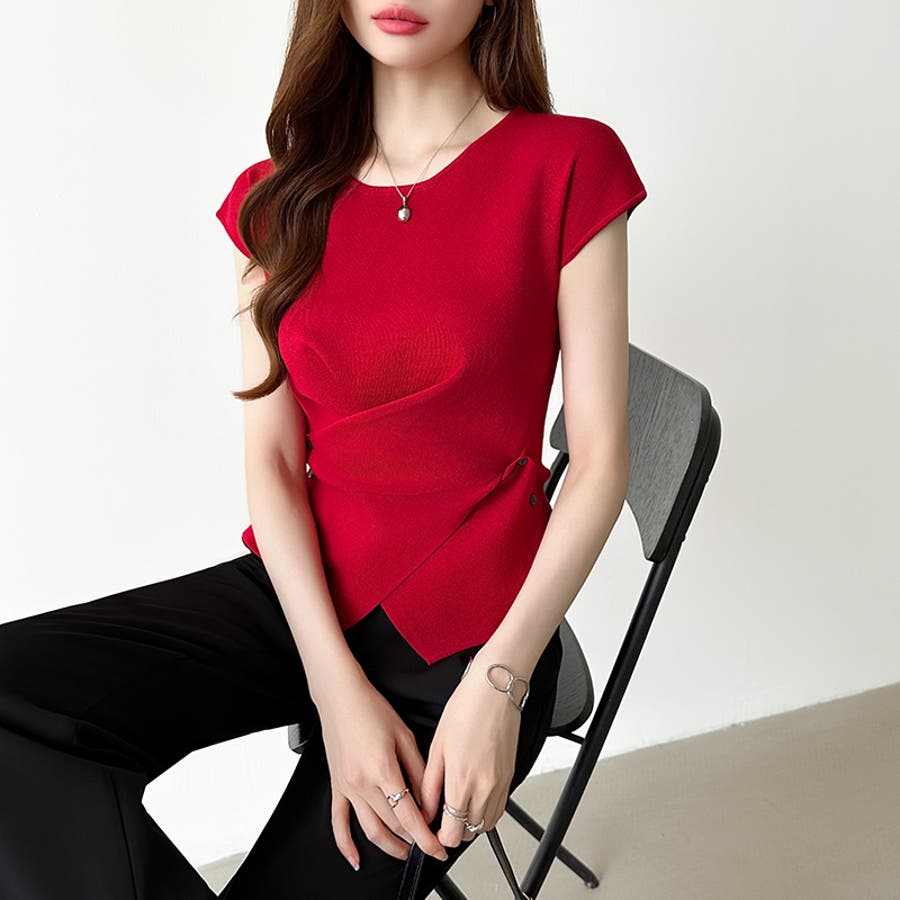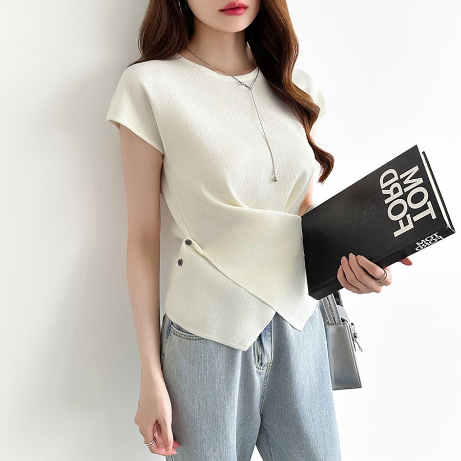 サマーニット クロス ドレープ トップス レディース フレンチスリーブ サマー ニット きれいめ ウエストクロス ドレープトップス サイドボタン クルーネック カットソー おしゃれ プルオーバー 半袖 フレンチスリーブニットプルオーバー キレイめトップス ラップトップス ラップ風 クロストップス ウエスト シェイプ フィット スリム タイト 半袖ニット 無地 tops 着回し 着まわし 伸縮性 伸びる ストレッチ 細見え 華奢見え 着痩せ 洗える 手洗い 手洗い可能 洗濯できる 洗濯 洗濯可能 洗濯可 オフィス オフィスカジュアル オフィスカジュアル春夏 オフィカジ 通勤 通学 おでかけ お出かけ 旅行 大人カジュアル カジュアル フェミニン オトナ かわいい 可愛い 大人 大人可愛い 大人かわいい きれい め キレイめ 綺麗め オシャレ 女性 母 ママ ママコーデ プチプラ 高見え トレンド ヒット 商品 おすすめ 服 服装 洋服 ファッション コーデ コーディネート フリーサイズ フリー サイズ アイボリー ブルー 水色 ダークブルー 青 レッド 赤 ブラック 黒 ボーダー 白黒 黒白 カラー レディース春夏 レディース春物 レディース夏物 レディース春 春トップス レディース夏 夏トップス きれいめカジュアル きれいめカジュアルレディース 新作 春夏 春 夏 春服 夏服 春物 夏物 春用 夏用 韓国 韓国ファッション 10代 20代 30代 40代 50代 60代 cocomomo ココモモ