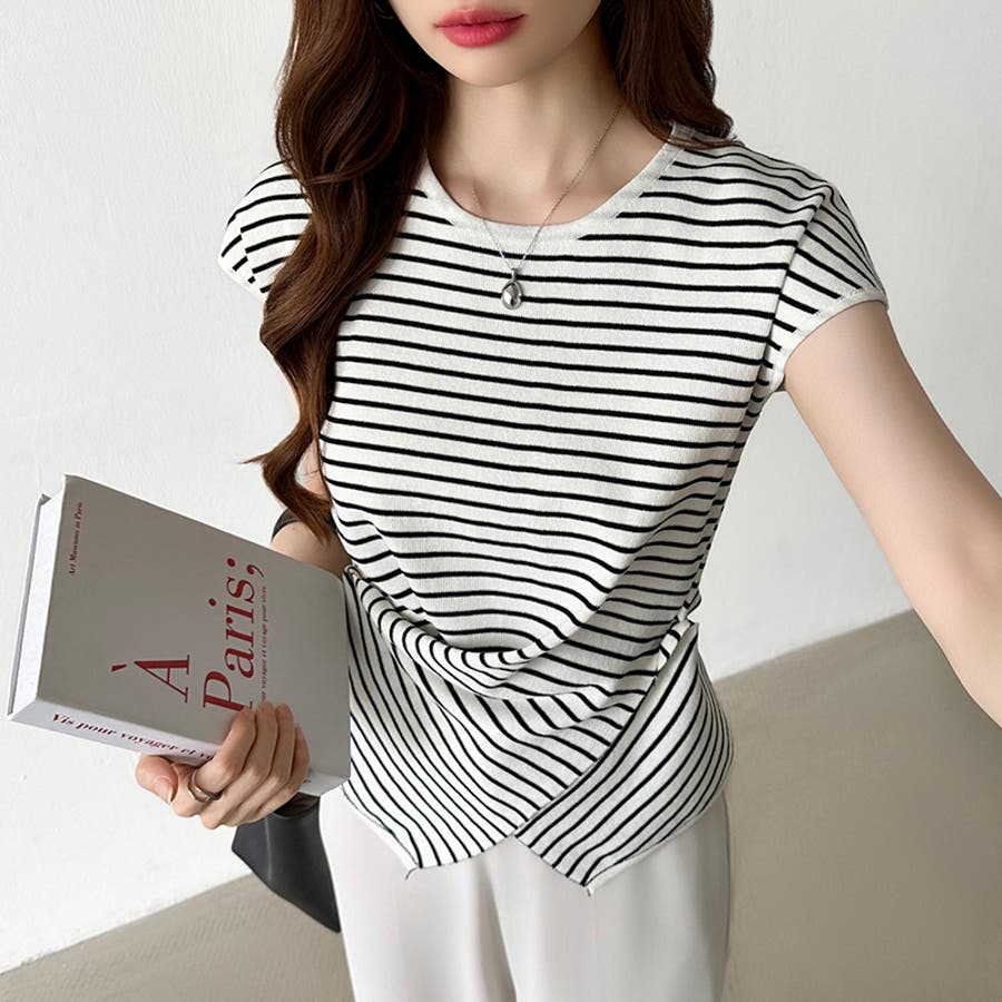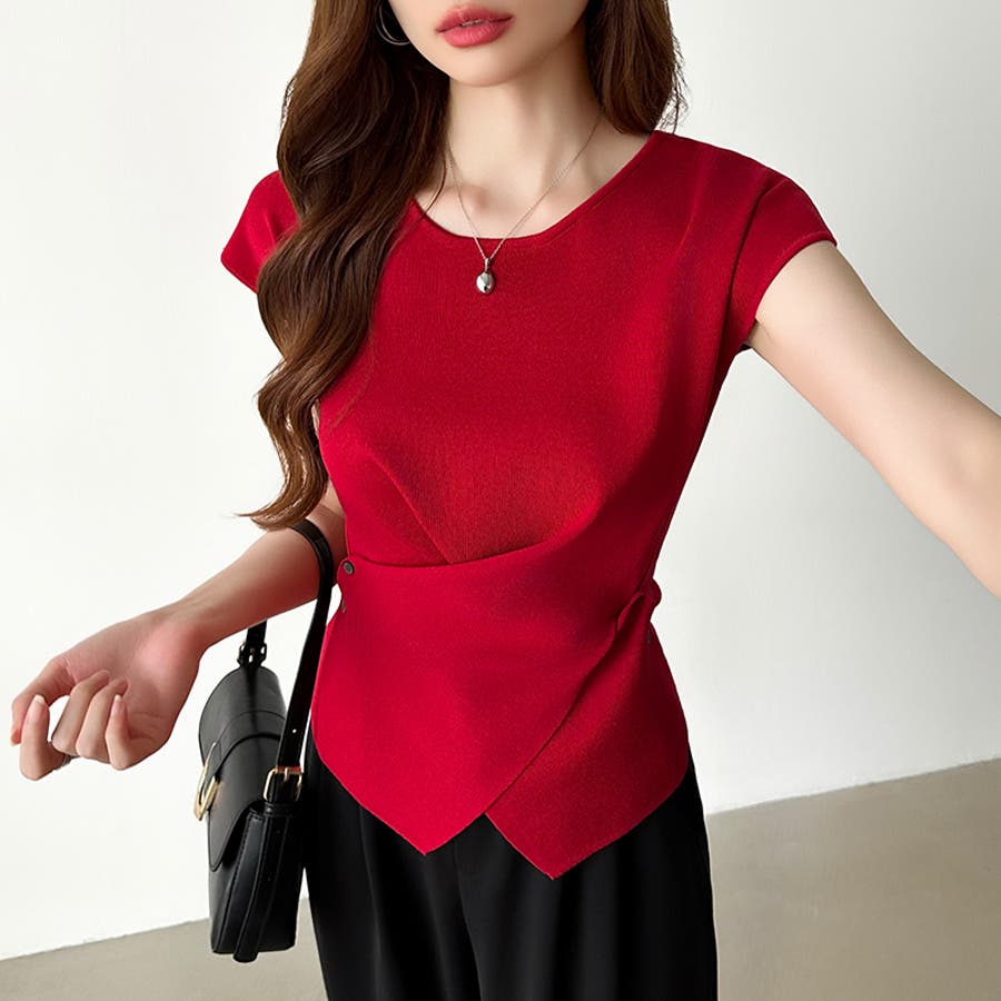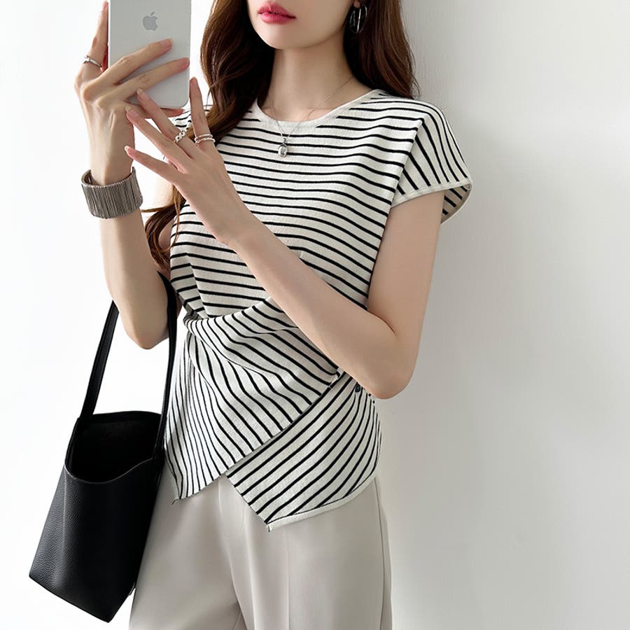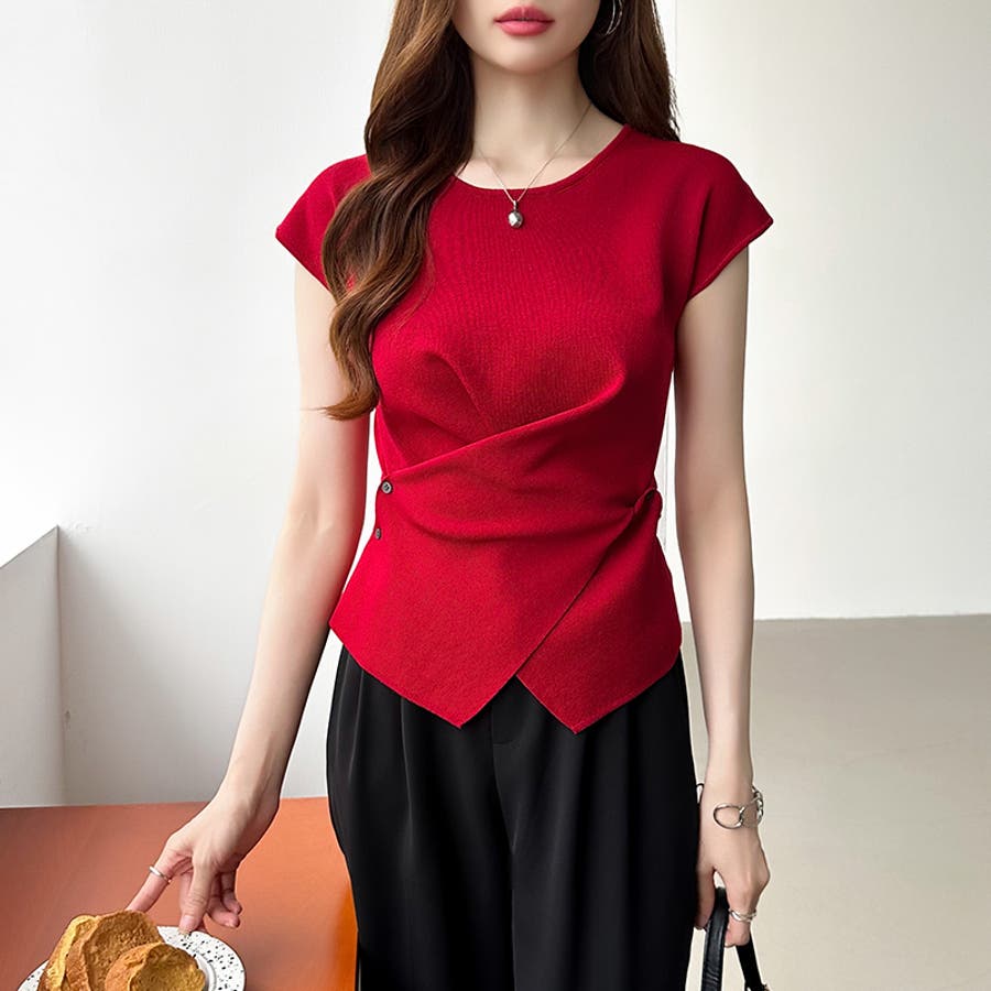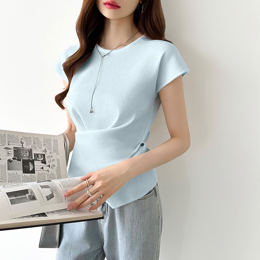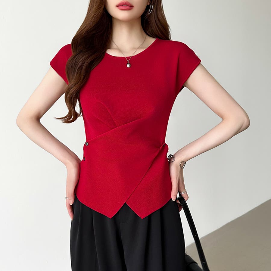 サマーニット クロス ドレープ トップス レディース フレンチスリーブ サマー ニット きれいめ ウエストクロス ドレープトップス サイドボタン クルーネック カットソー おしゃれ プルオーバー 半袖 フレンチスリーブニットプルオーバー キレイめトップス ラップトップス ラップ風 クロストップス ウエスト シェイプ フィット スリム タイト 半袖ニット 無地 tops 着回し 着まわし 伸縮性 伸びる ストレッチ 細見え 華奢見え 着痩せ 洗える 手洗い 手洗い可能 洗濯できる 洗濯 洗濯可能 洗濯可 オフィス オフィスカジュアル オフィスカジュアル春夏 オフィカジ 通勤 通学 おでかけ お出かけ 旅行 大人カジュアル カジュアル フェミニン オトナ かわいい 可愛い 大人 大人可愛い 大人かわいい きれい め キレイめ 綺麗め オシャレ 女性 母 ママ ママコーデ プチプラ 高見え トレンド ヒット 商品 おすすめ 服 服装 洋服 ファッション コーデ コーディネート フリーサイズ フリー サイズ アイボリー ブルー 水色 ダークブルー 青 レッド 赤 ブラック 黒 ボーダー 白黒 黒白 カラー レディース春夏 レディース春物 レディース夏物 レディース春 春トップス レディース夏 夏トップス きれいめカジュアル きれいめカジュアルレディース 新作 春夏 春 夏 春服 夏服 春物 夏物 春用 夏用 韓国 韓国ファッション 10代 20代 30代 40代 50代 60代 cocomomo ココモモ