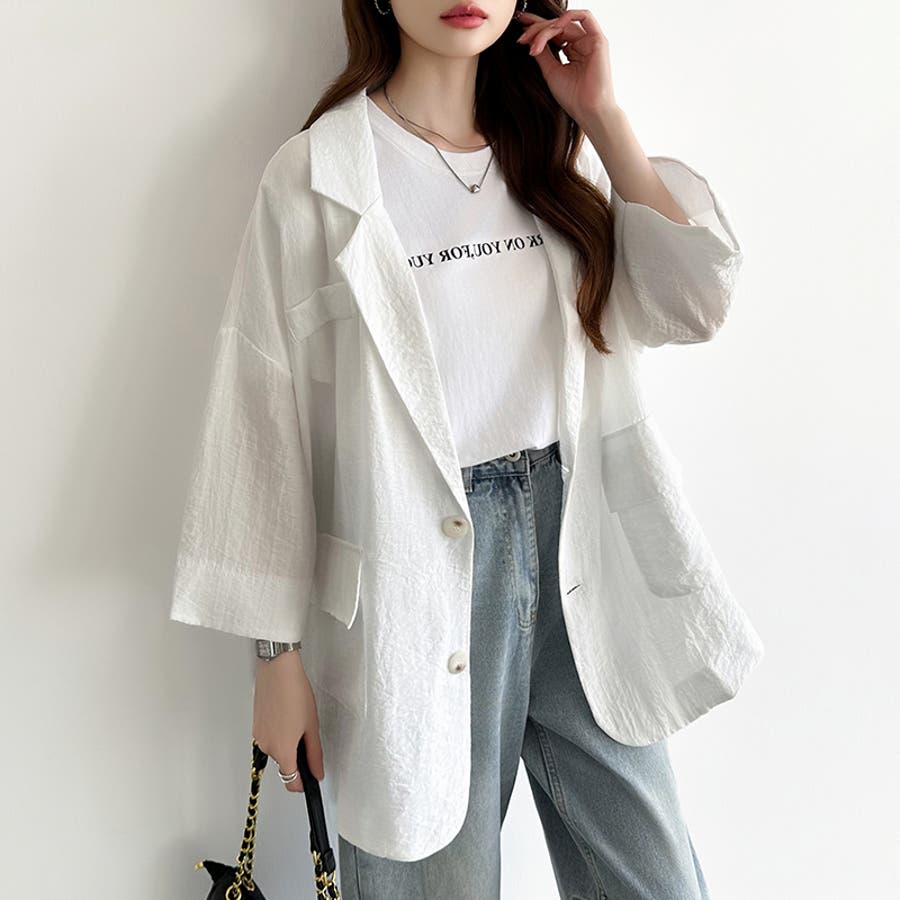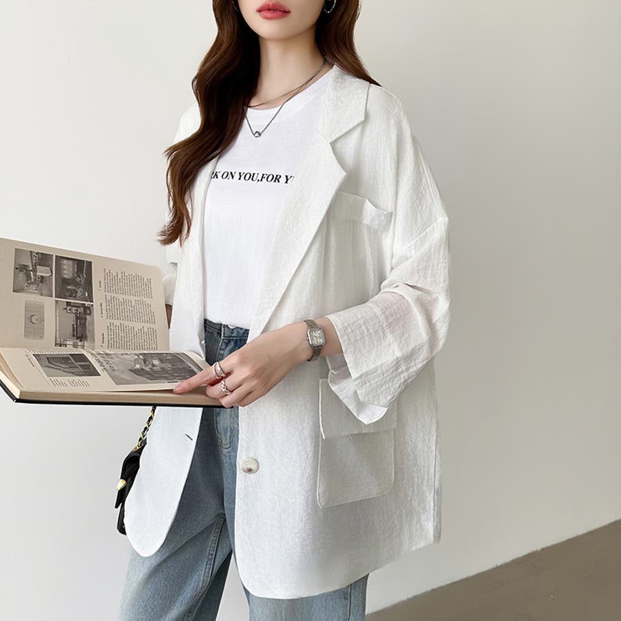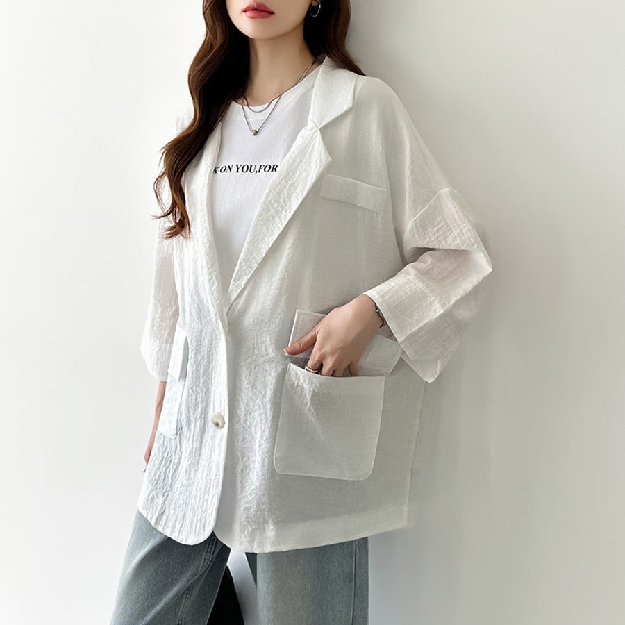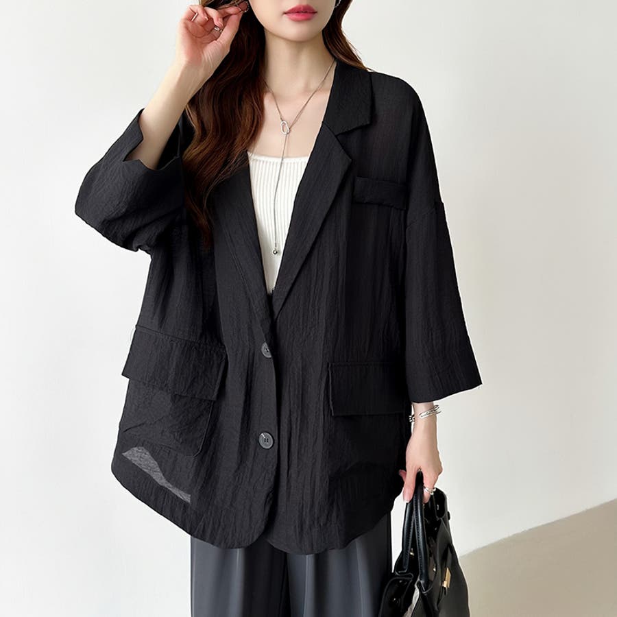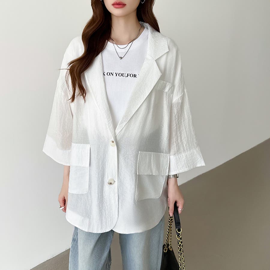 シャツジャケット シアー 涼しい ジャケット シアージャケット レディース 夏 薄手 七分袖 テーラード サマー 夏用 サマージャケット シャツ 透け感 カジュアルジャケット カジュアル オフィス オフィスカジュアル オーバーサイズ ゆったり 羽織り きれいめ 長め ロング ルーズ 大きめ 大きい 大きいサイズ テーラードジャケット サマージャケットレディース 涼感 シースルー コットン 綿 フォーマル アウター トップス ロング丈 丈 vネック Vネック ジャケットのみ ジャケット単品 トップスのみ レディースおしゃれ黒 一つボタン ボタン 裏地なし 上着 羽織 羽織もの ポケット 7分袖 七分 袖 袖あり 襟 あり 襟あり 襟付き 襟付きジャケット 着回し 着まわし 着痩せ シンプル 無地 きちんと感 きちんと 軽量 やわらか 柔らかい ポケット ポケット付き ポケットあり 付き あり 日焼け 紫外線 冷房 対策 日焼け対策 紫外線対策 冷房対策 れでぃーす 同窓会 ビジネス 顔合わせ 仕事 学校行事 行事 参観日 通勤 通学 ol OL オフィカジ オフィスカジュアル春夏 レディース夏 ナチュラル クール かっこいい モード 上品 綺麗 きれい目 キレイめ きれい め 大人 オトナ かわいい 可愛い 大人可愛い オトナ女子 おしゃれ オシャレ 女性 母 母親 女性 ママ ママコーデ プチプラ 高見え 高級感 レンド ヒット 商品 おすすめ 服 服装 ファッション コーデ コーディネート フリー サイズ フリーサイズ ホワイト 白 ブラック 黒 夏スーツ 夏レディース レディース夏 夏ジャケット 夏ジャケットレディース サマージャケットレディース 新作 春物 夏物 春用 春夏 春 春服 夏服 韓国 韓国ファッション 10代 20代 30代 40代 50代 60代 cocomomo ココモモ
