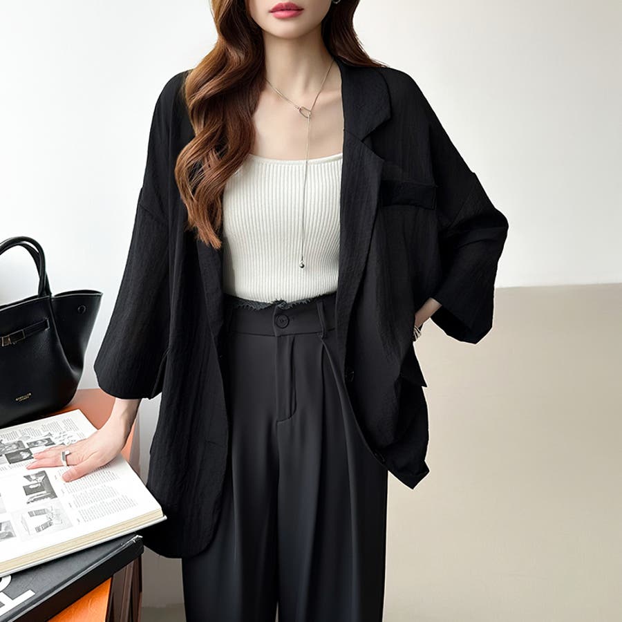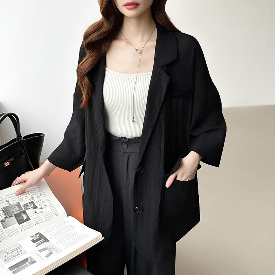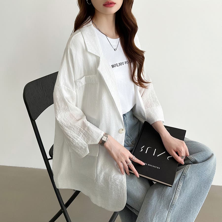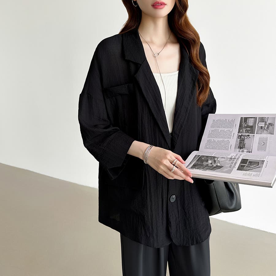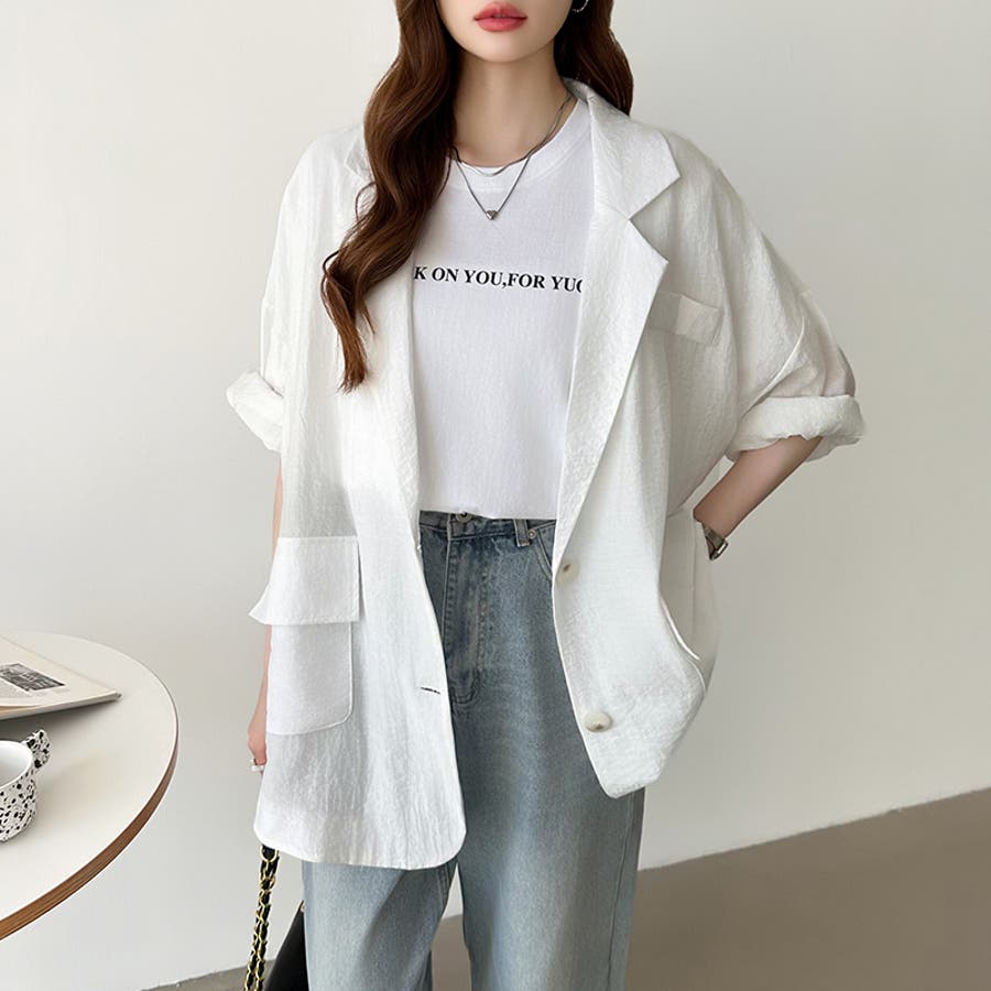 シャツジャケット シアー 涼しい ジャケット シアージャケット レディース 夏 薄手 七分袖 テーラード サマー 夏用 サマージャケット シャツ 透け感 カジュアルジャケット カジュアル オフィス オフィスカジュアル オーバーサイズ ゆったり 羽織り きれいめ 長め ロング ルーズ 大きめ 大きい 大きいサイズ テーラードジャケット サマージャケットレディース 涼感 シースルー コットン 綿 フォーマル アウター トップス ロング丈 丈 vネック Vネック ジャケットのみ ジャケット単品 トップスのみ レディースおしゃれ黒 一つボタン ボタン 裏地なし 上着 羽織 羽織もの ポケット 7分袖 七分 袖 袖あり 襟 あり 襟あり 襟付き 襟付きジャケット 着回し 着まわし 着痩せ シンプル 無地 きちんと感 きちんと 軽量 やわらか 柔らかい ポケット ポケット付き ポケットあり 付き あり 日焼け 紫外線 冷房 対策 日焼け対策 紫外線対策 冷房対策 れでぃーす 同窓会 ビジネス 顔合わせ 仕事 学校行事 行事 参観日 通勤 通学 ol OL オフィカジ オフィスカジュアル春夏 レディース夏 ナチュラル クール かっこいい モード 上品 綺麗 きれい目 キレイめ きれい め 大人 オトナ かわいい 可愛い 大人可愛い オトナ女子 おしゃれ オシャレ 女性 母 母親 女性 ママ ママコーデ プチプラ 高見え 高級感 レンド ヒット 商品 おすすめ 服 服装 ファッション コーデ コーディネート フリー サイズ フリーサイズ ホワイト 白 ブラック 黒 夏スーツ 夏レディース レディース夏 夏ジャケット 夏ジャケットレディース サマージャケットレディース 新作 春物 夏物 春用 春夏 春 春服 夏服 韓国 韓国ファッション 10代 20代 30代 40代 50代 60代 cocomomo ココモモ