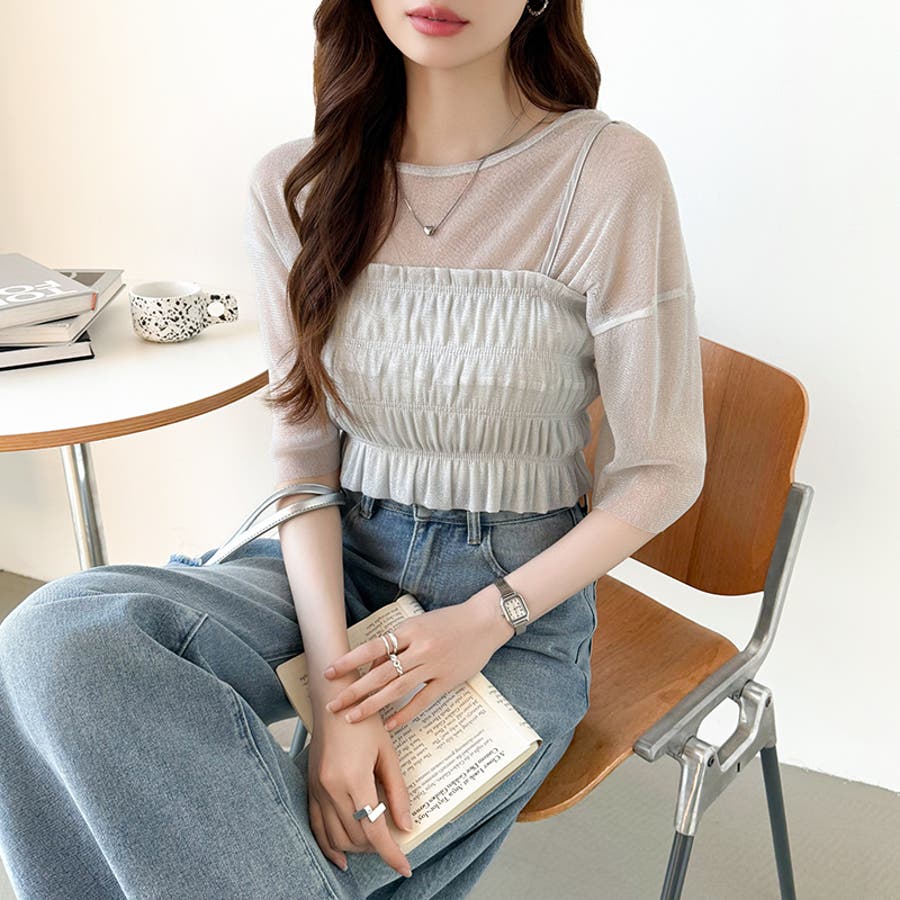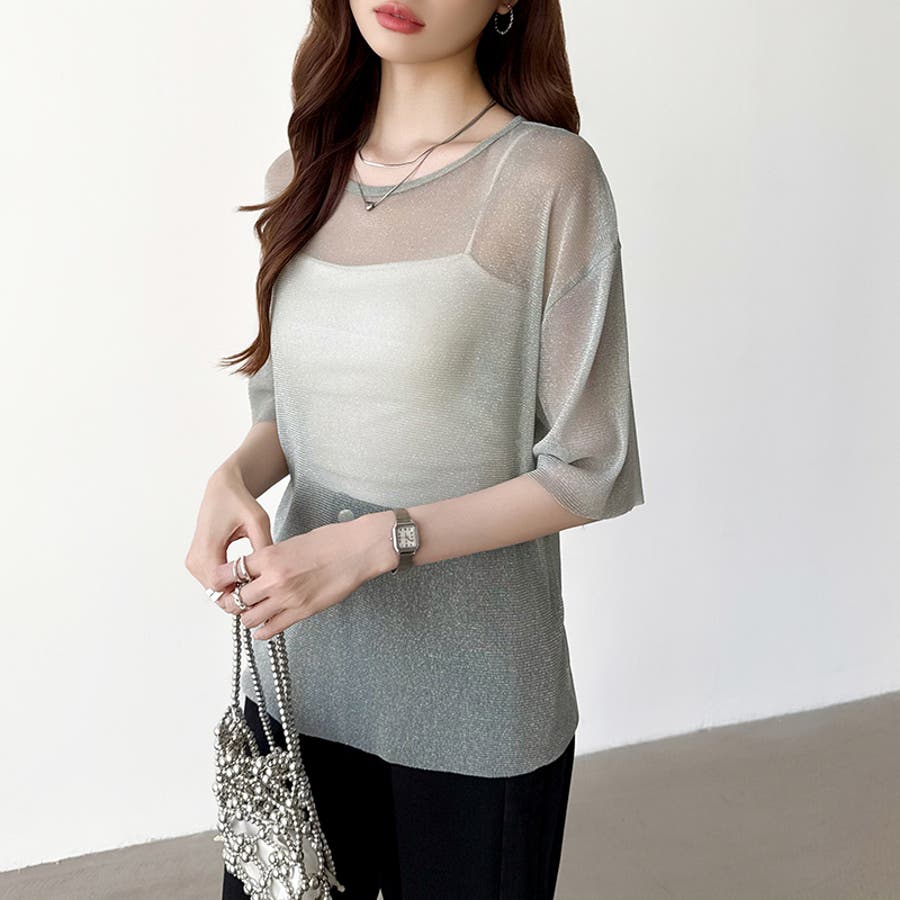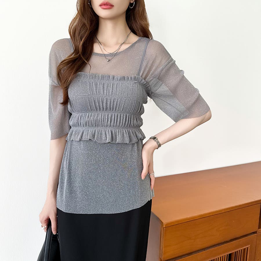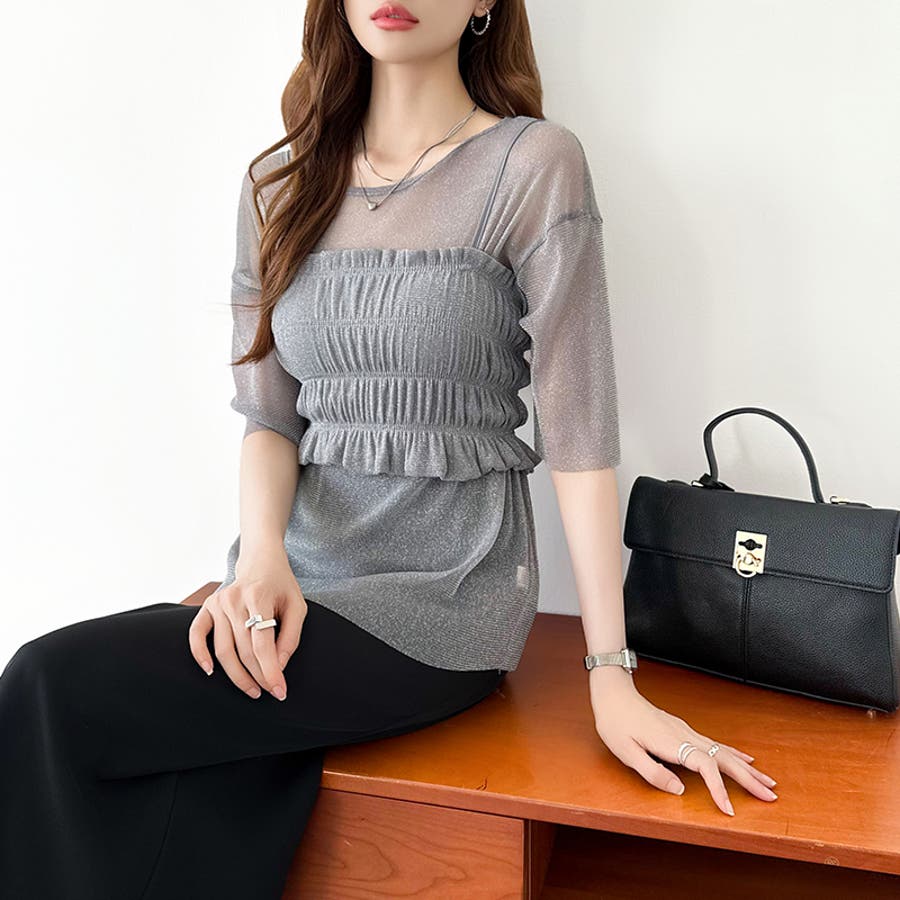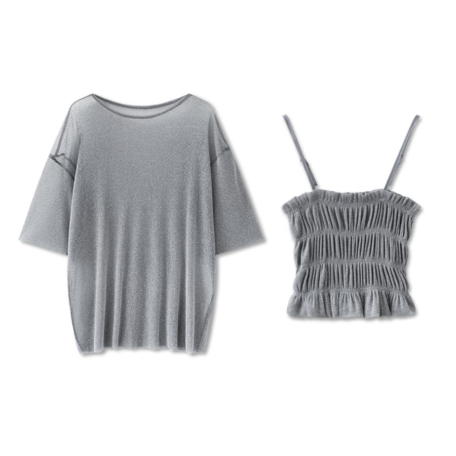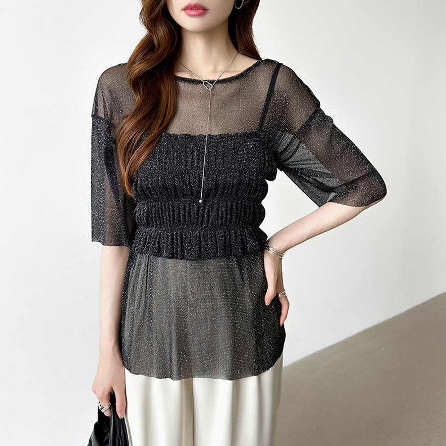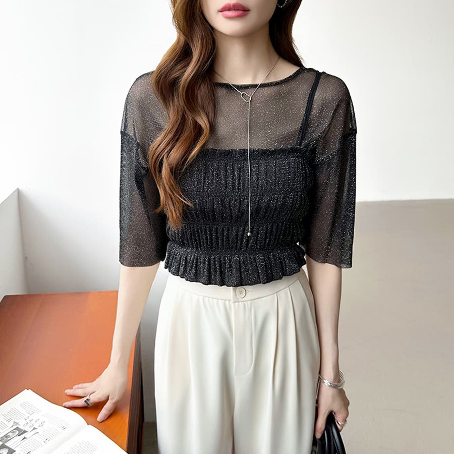シアートップス ビスチェセット ラメシアートップス 半袖 レディース 2点セット ラメ シアー トップス カットソー ビスチェ セット キャミソール 五分袖 透け感 レイヤード 重ね着 インナー キラキラ ゆったり シースルー シアーカットソー シアーインナー キラキラトップス 2点 シャーリング ギャザー アンサンブル 伸縮性 ストレッチ 大きい 大きめ 大きいサイズ ラウンドネック クルーネック 薄手 涼しい シアートップスレディース レイヤードトップス レイヤードインナー シースルートップス 透けトップス 通気性 透け 感 薄い 透かし 透けシアー 透け感生地 プルオーバー シアー素材 重ね 着 袖 二の腕カバー 二の腕 カバー 隠し サマー tops さらさら ポリエステル ポリエステル100% さらさら 涼しい 肌見せ 露出控えめ 露出少なめ フィット 伸縮性 ストレッチ 伸びる 冷房対策 シワになりにくい 洗える 洗濯機で洗える 毛玉になりにくい 韓国風 セクシー モード カジュアル 大人 かわいい 可愛い 大人可愛い おしゃれ オシャレ ママ 母 ママコーデ プチプラ 高見え トレンド ヒット 商品 おすすめ 服 服装 ファッション コーデ コーディネート フリー サイズ フリーサイズ ホワイト 白 グレー 灰色 グリーン 緑 ブラック 黒 レディース夏物 レディース春 春トップス レディース夏 夏トップス レディース韓国 レディース夏服トップス 夏服レディース おしゃれレディース 新作 夏物 夏用 春夏 夏 夏服 韓国 韓国ファッション 10代 20代 30代 40代 50代 cocomomo ココモモ