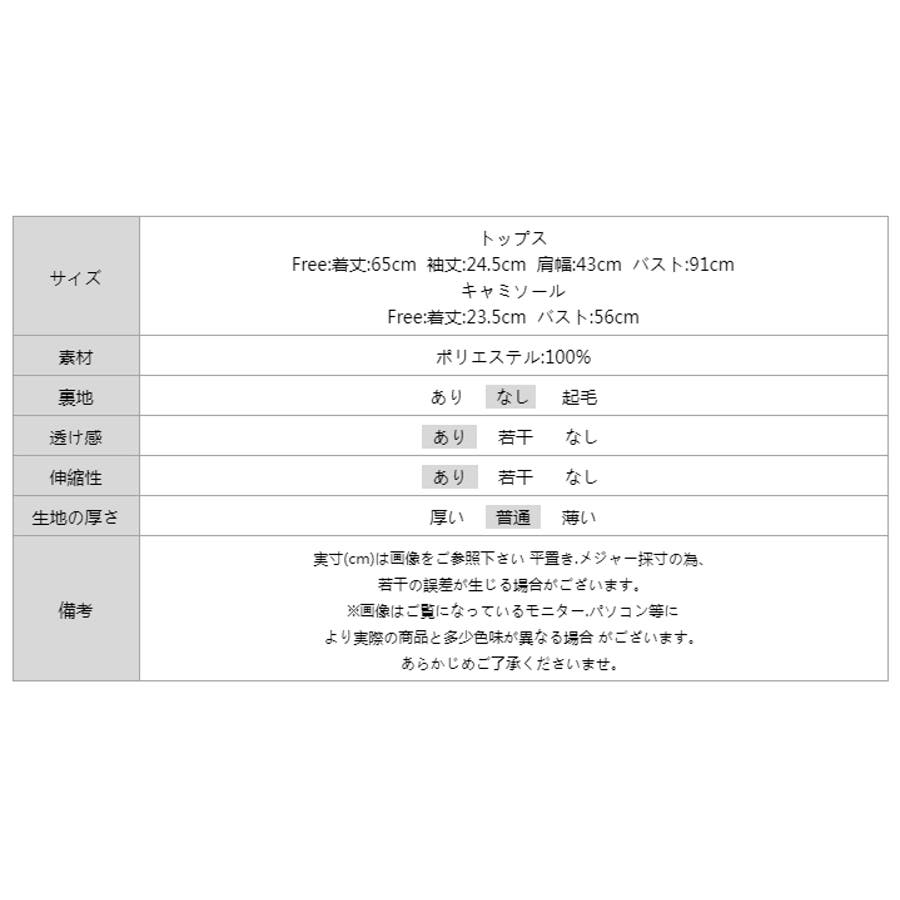 | サイズ | トップス Free: 着丈 65cm 袖丈 24.5cm 肩幅 43cm バスト 91cm ビスチェ Free: 着丈 23.5cm バスト 56cm |