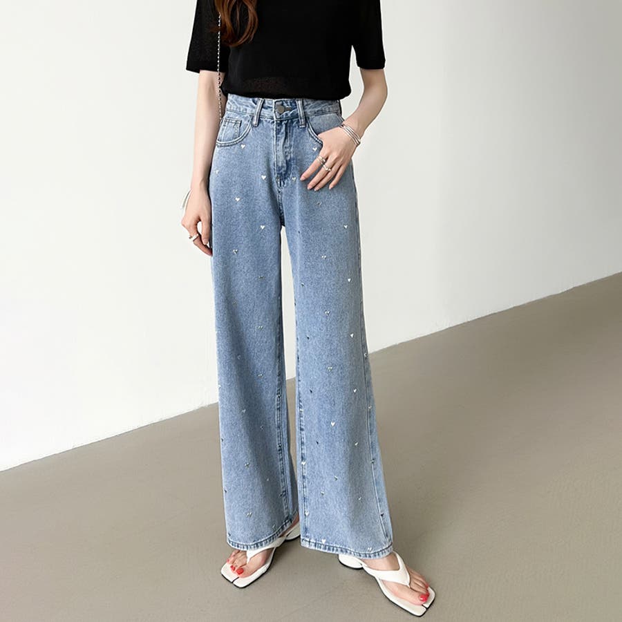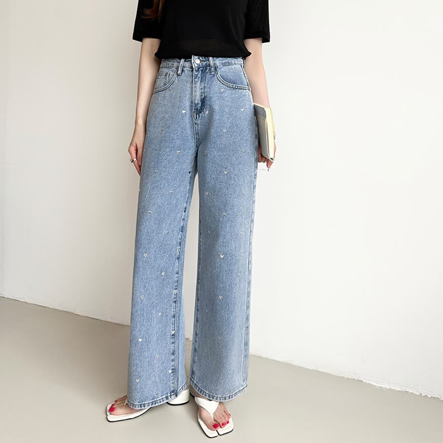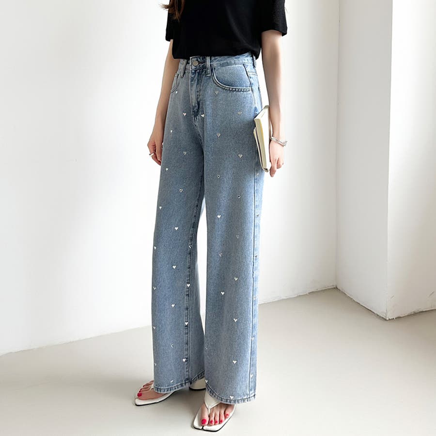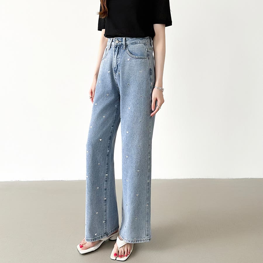 ハートスタッズ デニムパンツ ストレート レディース ハート柄 セミワイドパンツ ワイド デニム パンツ ストレートデニム ストレートパンツ ワイドデニム デニムワイドパンツ メタリック ハート おしゃれ ワイドパンツ ジーンズ メタリックハート メタル ハートデニム ハートデニムパンツ ハート柄パンツ ハート柄デニム ハート柄デニムパンツ 美シルエットワイドパンツ ゆったり きれいめ ボトムス 美脚デニム ハイウエスト 大きいサイズ 体型カバー 美脚スタイル ジーパン ズボン 太もも ロング セミワイド セミワイドパンツレディース ストレートデニムパンツ ストレートデニムレディース ジーンズレディース レディースデニム 長ズボン ロングパンツ ハイウエストパンツ ハイウエストデニム ハイウエストデニムパンツ ストレートデニムレディース ストレートワイドパンツ ストレートパンツレディース ワイドデニムレディース ワイドデニムパンツレディース デニムワイドパンツレディース デニムワイドパンツレディース ワイドジーンズ ボトム デニムパンツレディース デニムレディース カジュアルパンツ カバー 隠し 太ももゆったり 大きめ 大きい 美シルエット ポケット ポケット付き 着痩せ 脚長 美ライン 細見え 股上 深め おでかけ お出かけ 外出 旅行 イベント フェミニン カジュアル かわいい 可愛い 大人可愛い 大人かわいい オシャレ 大人 母 ママ ママコーデ おすすめ トレンド ランキング 人気 コーデ コーディネート ワンツーコーデ ブルー ライトブルー 青 ブラック 黒 ブルージーンズ ブルーデニム ブラックジーンズ ブラックデニム カラー s m l S M L サイズ Sサイズ Mサイズ Lサイズ 大きいサイズレディース 新作 春夏 秋冬 春 夏 秋 冬 春服 夏服 秋服 冬服 春物 夏物 秋物 冬物 春用 夏用 秋用 冬用 韓国 韓国ファッション 10代 20代 30代 40代 50代 60代 cocomomo ココモモ