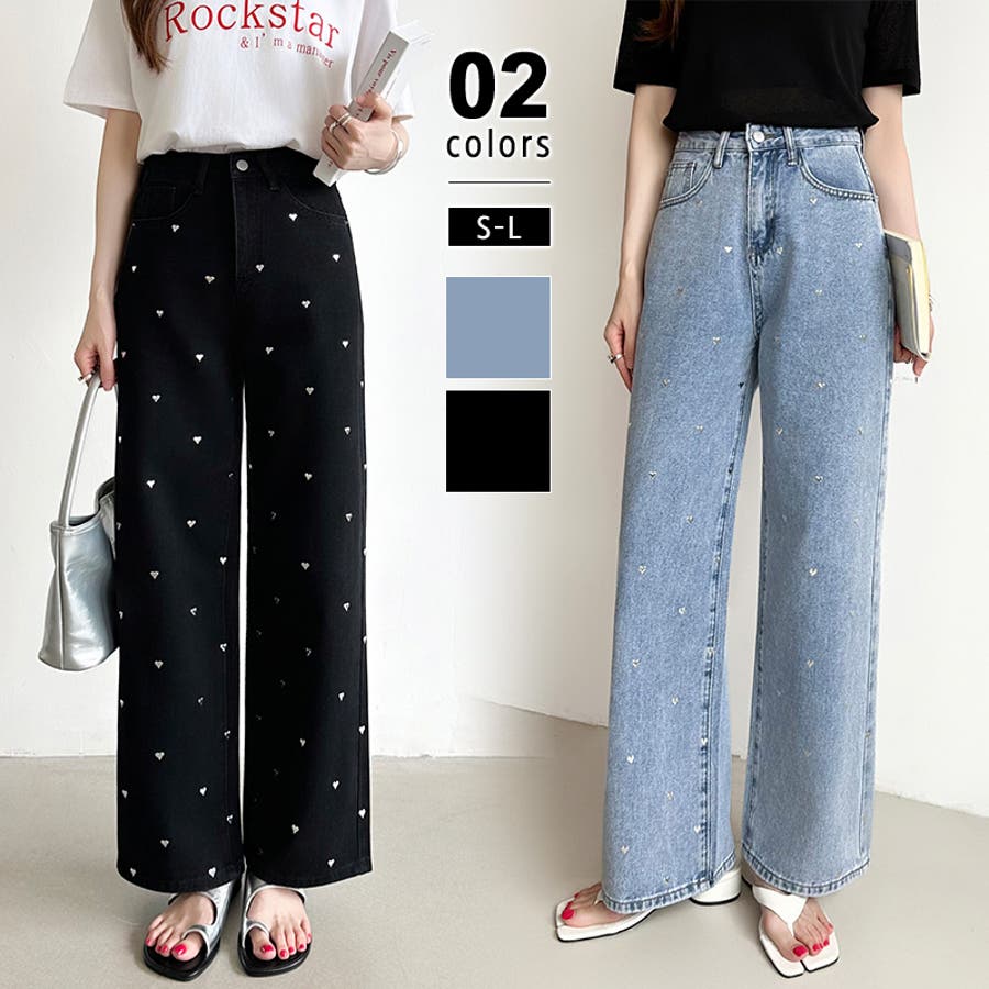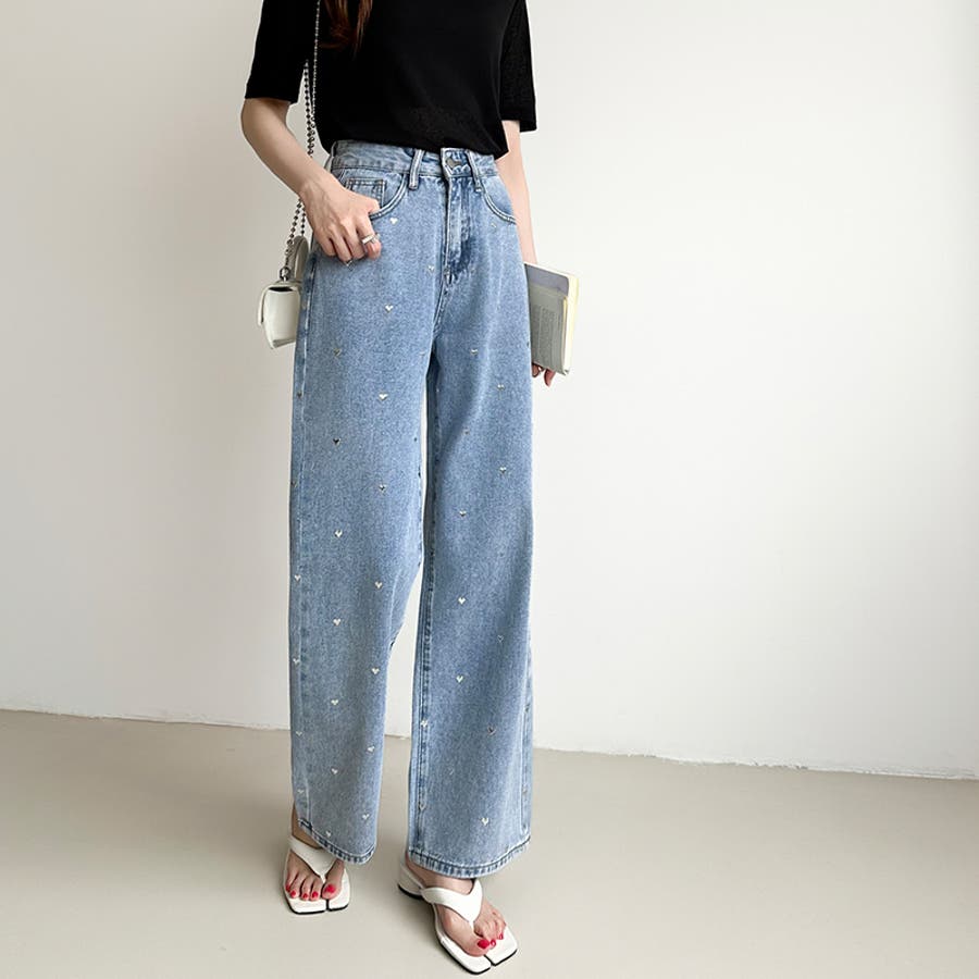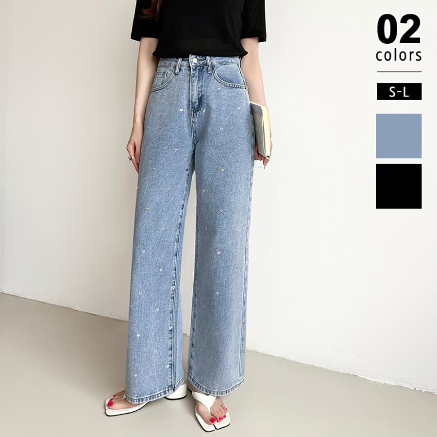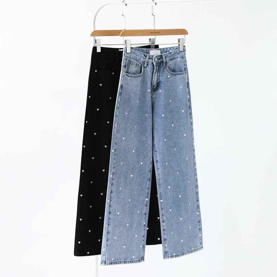 ハートスタッズ デニムパンツ ストレート レディース ハート柄 セミワイドパンツ ワイド デニム パンツ ストレートデニム ストレートパンツ ワイドデニム デニムワイドパンツ メタリック ハート おしゃれ ワイドパンツ ジーンズ メタリックハート メタル ハートデニム ハートデニムパンツ ハート柄パンツ ハート柄デニム ハート柄デニムパンツ 美シルエットワイドパンツ ゆったり きれいめ ボトムス 美脚デニム ハイウエスト 大きいサイズ 体型カバー 美脚スタイル ジーパン ズボン 太もも ロング セミワイド セミワイドパンツレディース ストレートデニムパンツ ストレートデニムレディース ジーンズレディース レディースデニム 長ズボン ロングパンツ ハイウエストパンツ ハイウエストデニム ハイウエストデニムパンツ ストレートデニムレディース ストレートワイドパンツ ストレートパンツレディース ワイドデニムレディース ワイドデニムパンツレディース デニムワイドパンツレディース デニムワイドパンツレディース ワイドジーンズ ボトム デニムパンツレディース デニムレディース カジュアルパンツ カバー 隠し 太ももゆったり 大きめ 大きい 美シルエット ポケット ポケット付き 着痩せ 脚長 美ライン 細見え 股上 深め おでかけ お出かけ 外出 旅行 イベント フェミニン カジュアル かわいい 可愛い 大人可愛い 大人かわいい オシャレ 大人 母 ママ ママコーデ おすすめ トレンド ランキング 人気 コーデ コーディネート ワンツーコーデ ブルー ライトブルー 青 ブラック 黒 ブルージーンズ ブルーデニム ブラックジーンズ ブラックデニム カラー s m l S M L サイズ Sサイズ Mサイズ Lサイズ 大きいサイズレディース 新作 春夏 秋冬 春 夏 秋 冬 春服 夏服 秋服 冬服 春物 夏物 秋物 冬物 春用 夏用 秋用 冬用 韓国 韓国ファッション 10代 20代 30代 40代 50代 60代 cocomomo ココモモ