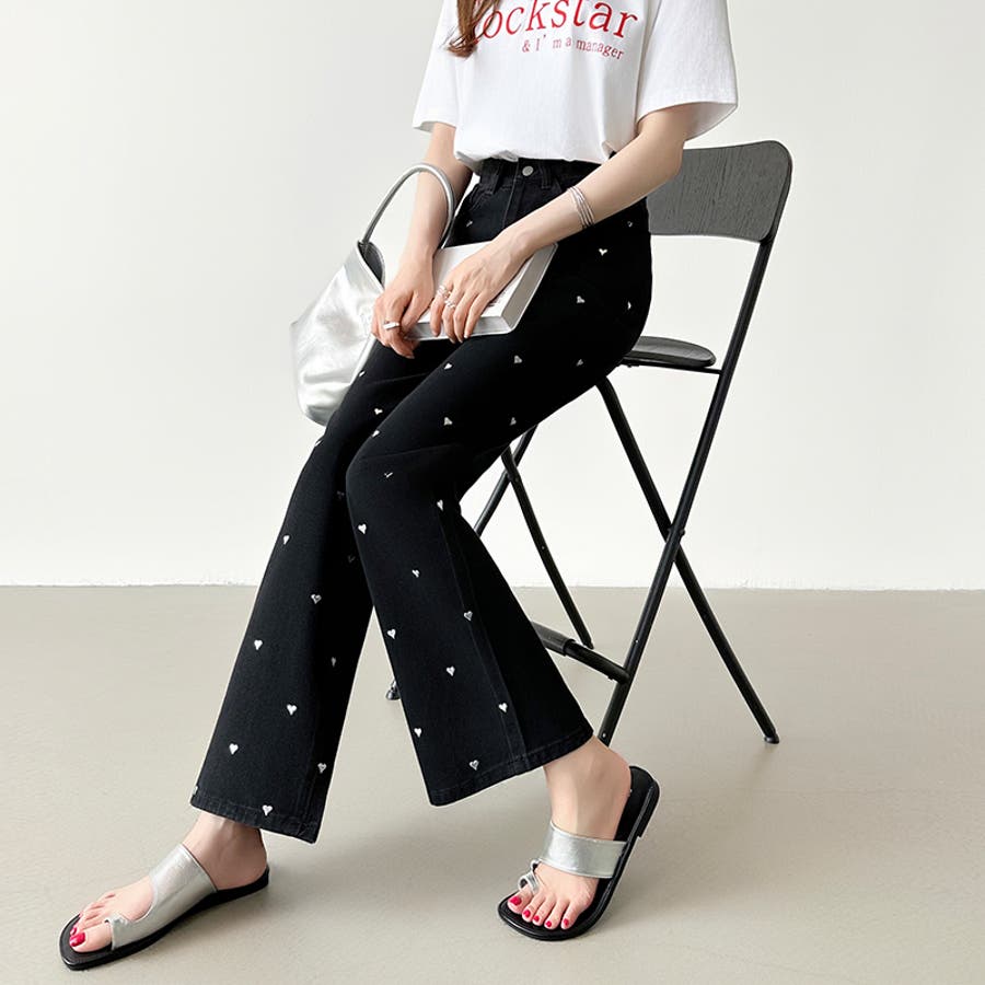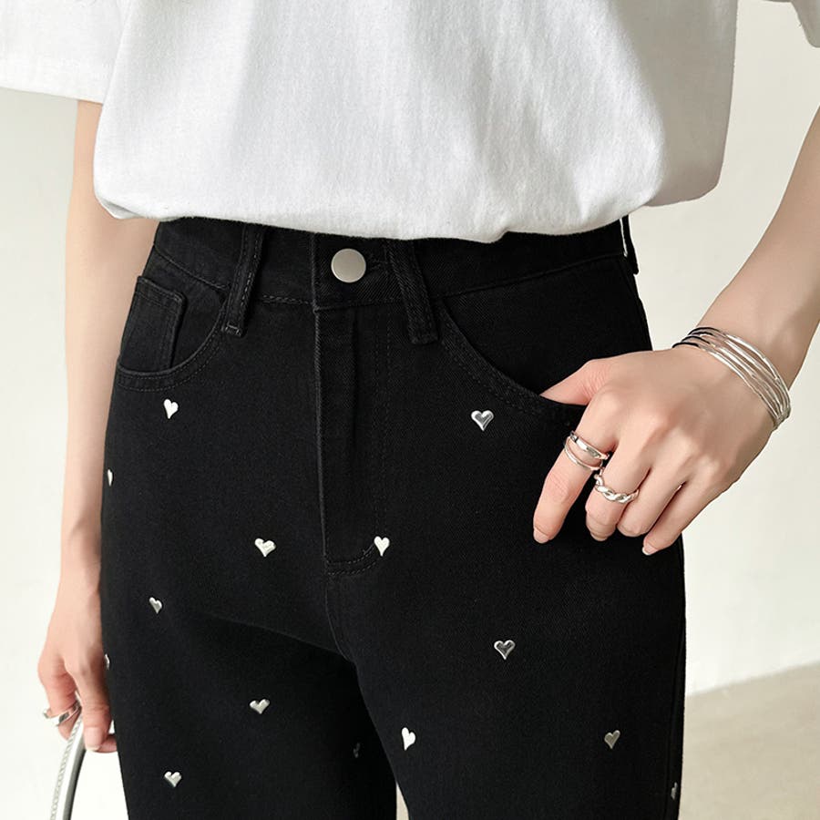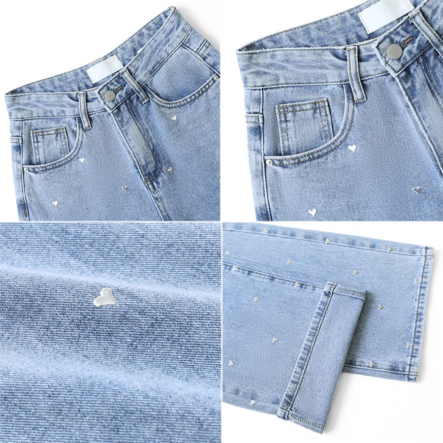 ハートスタッズデニムパンツ ハート柄 デニムパンツ
