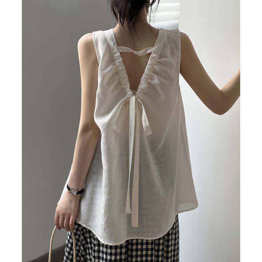 バックリボンノースリーブブラウス。