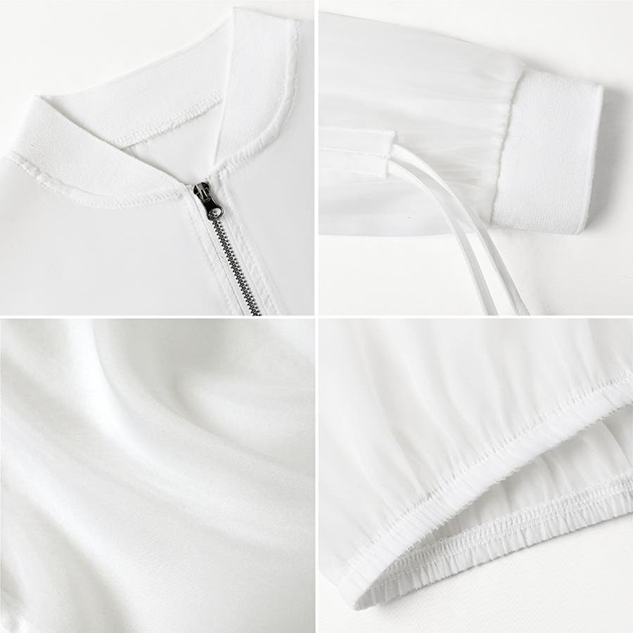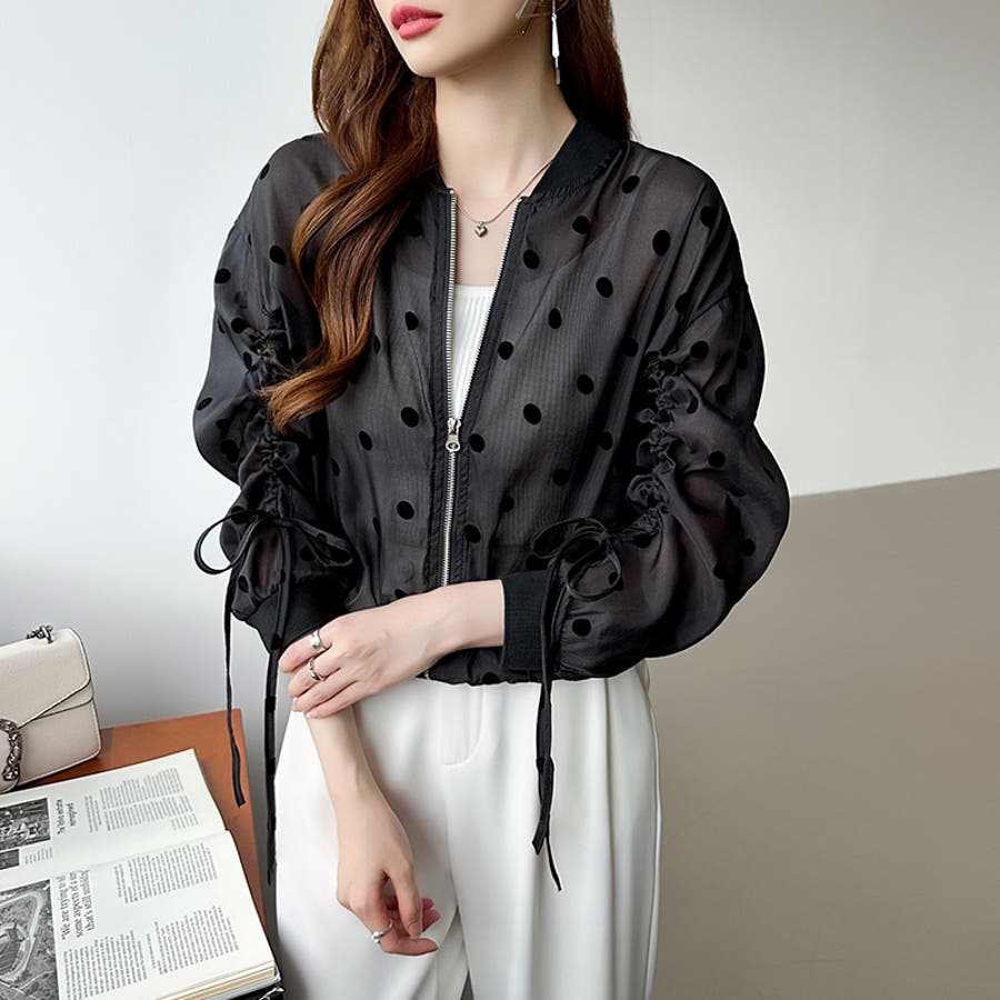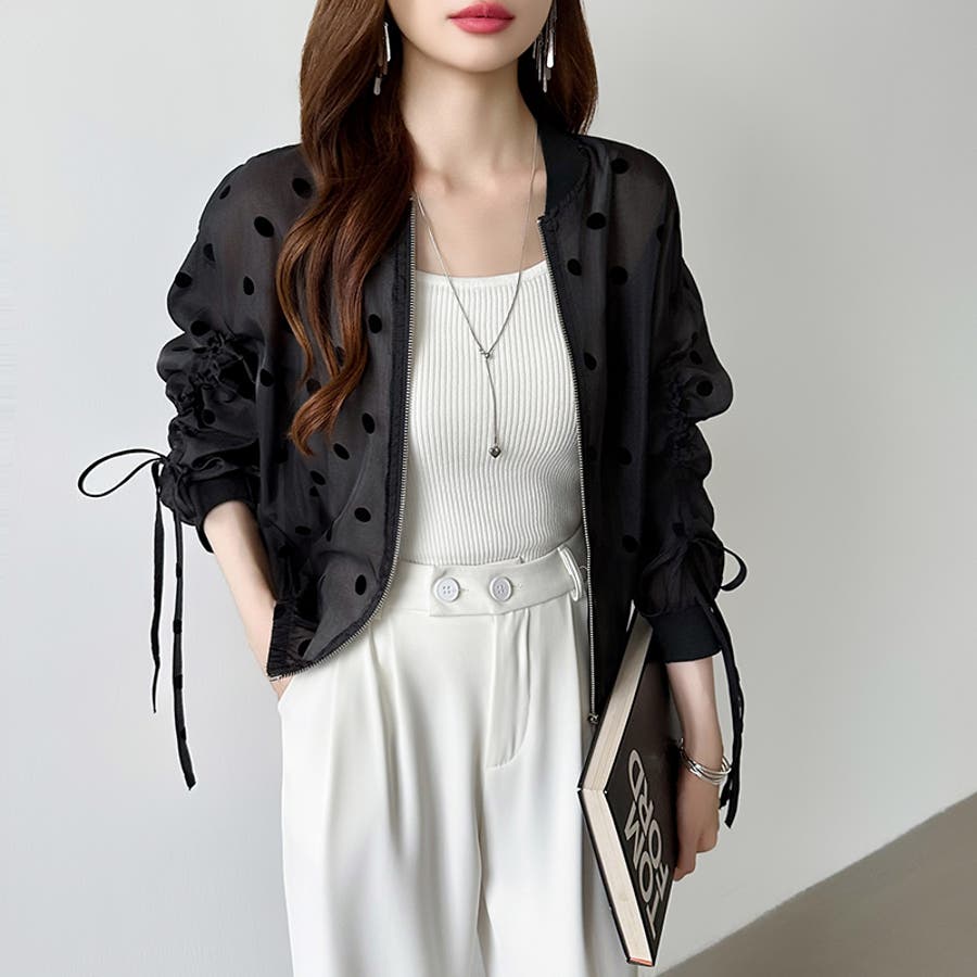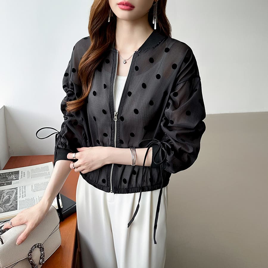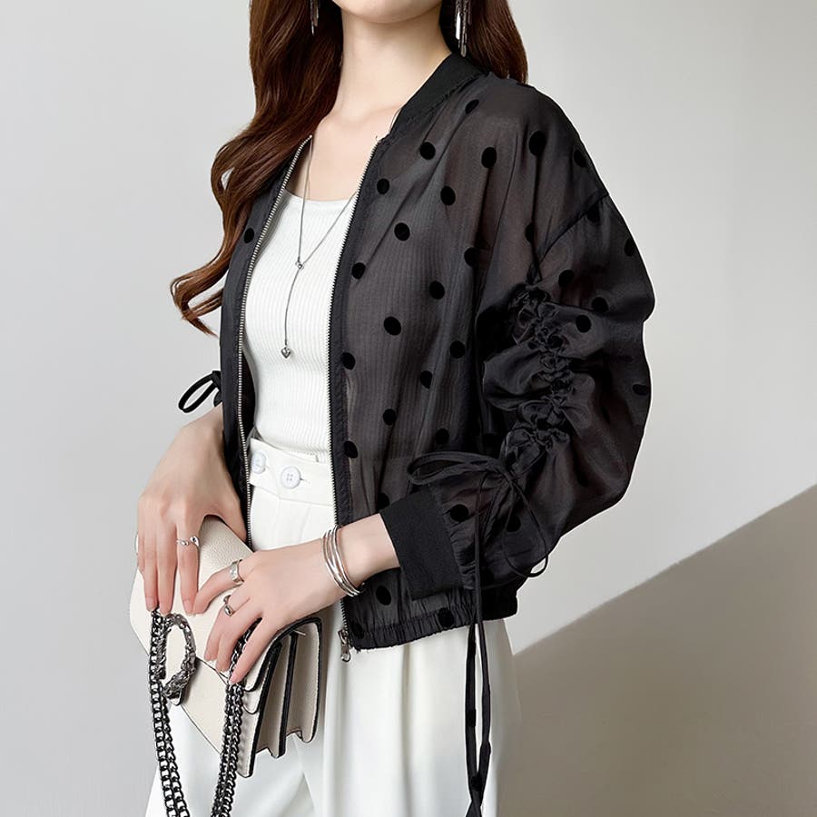 シアーブルゾン ショート丈 ノーカラー オーガンジー きれいめ アウター レディース リボン ギャザースリーブ ドット柄 無地 シアー ブルゾン ノーカラーブルゾン 薄手 メッシュ 透け感 シースルー ライトアウター 羽織 上着 ジャケット 長袖 涼しい メッシュブルゾン ドット 水玉 フロッキー フロッキードット ギャザー スリーブ ボリューム 袖 ボリュームスリーブ ボリューム袖 シャーリング ノーカラージャケット ノーカラージャケットレディース シアージャケット しあーブルゾン シアーブルゾンレディース ショートブルゾン ショートジャケット ショートジャケットレディース ショート おしゃれ 透け感 クロップド クロップド丈 丈 透け 感 軽い 春ジャケット 春アウター 日焼け 対策 紫外線 uv 日焼け対策 冷房対策 UV対策 ぽわん ぽわん袖 袖 紐 ジャンパー ライトアウターレディース カジュアル ジップ アップ ジップアップ ファスナー 襟 襟なし 上着 羽織り 羽織もの 羽織ものレディース夏 防風 前開き 前あき 体型カバー 体型 二の腕カバー 二の腕 カバー お出かけ おでかけ 旅行 通勤 通学 華やか フェミニン 大人 かわいい 可愛い 大人可愛い 大人かわいい きれい め オトナ女子 大人女子 女子 オシャレ 母 ママ ママコーデ プチプラ 高見え 高級感 トレンド ヒット 商品 おすすめ 服 服装 ファッション コーデ コーディネート 人気 女性 フリーサイズ フリー サイズ ホワイト 白 ブラック 黒 カラー 春アウター 春アウターレディース 夏レディース 夏アウター 夏アウターレディース アウター夏 アウターレディース 大人カジュアル シアーブルゾンレディース 上着レディース 新作 春物 夏物 春用 夏用 春夏 春 夏 秋 春服 夏服 韓国 韓国ファッション 10代 20代 30代 40代 50代 60代 cocomomo ココモモ