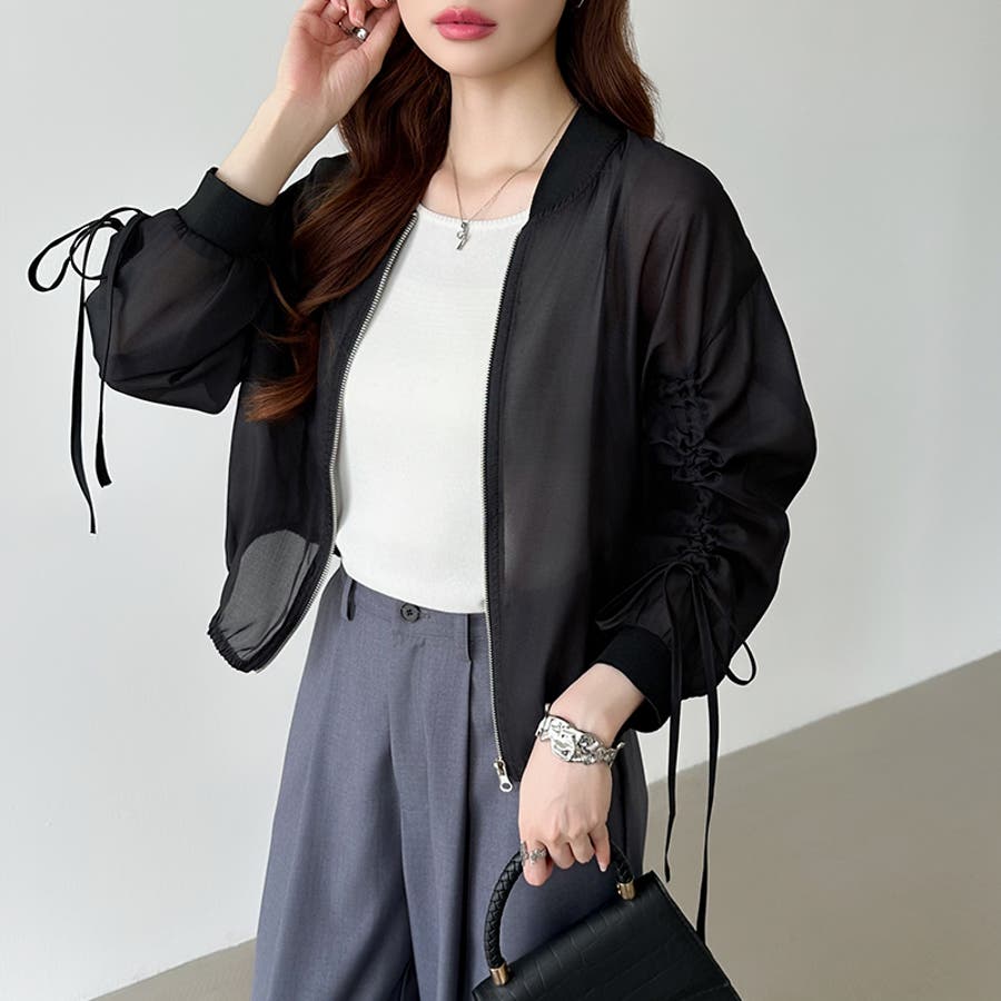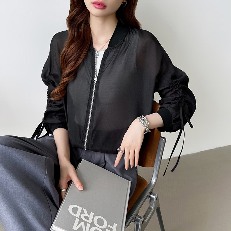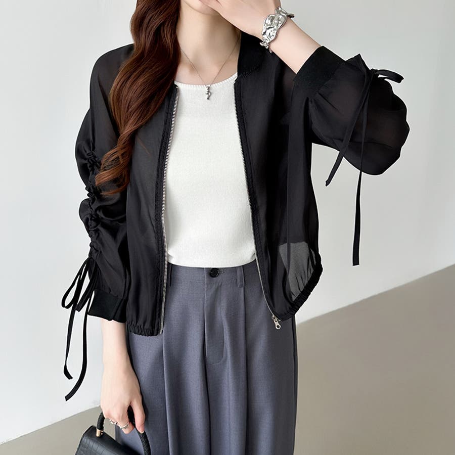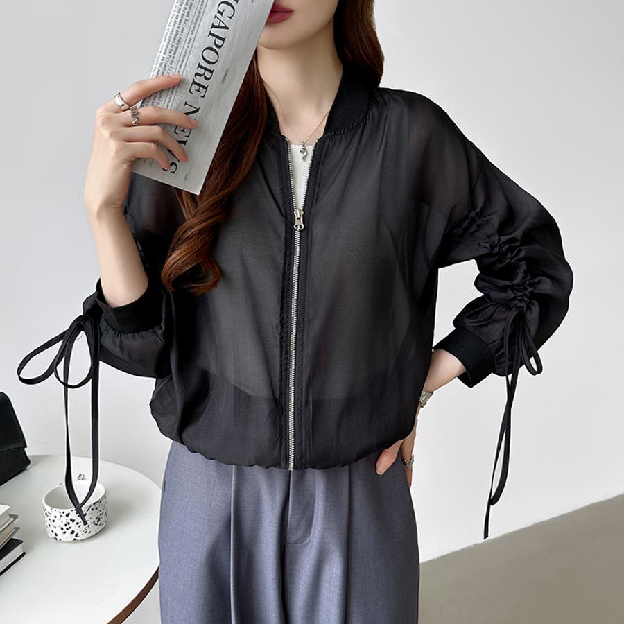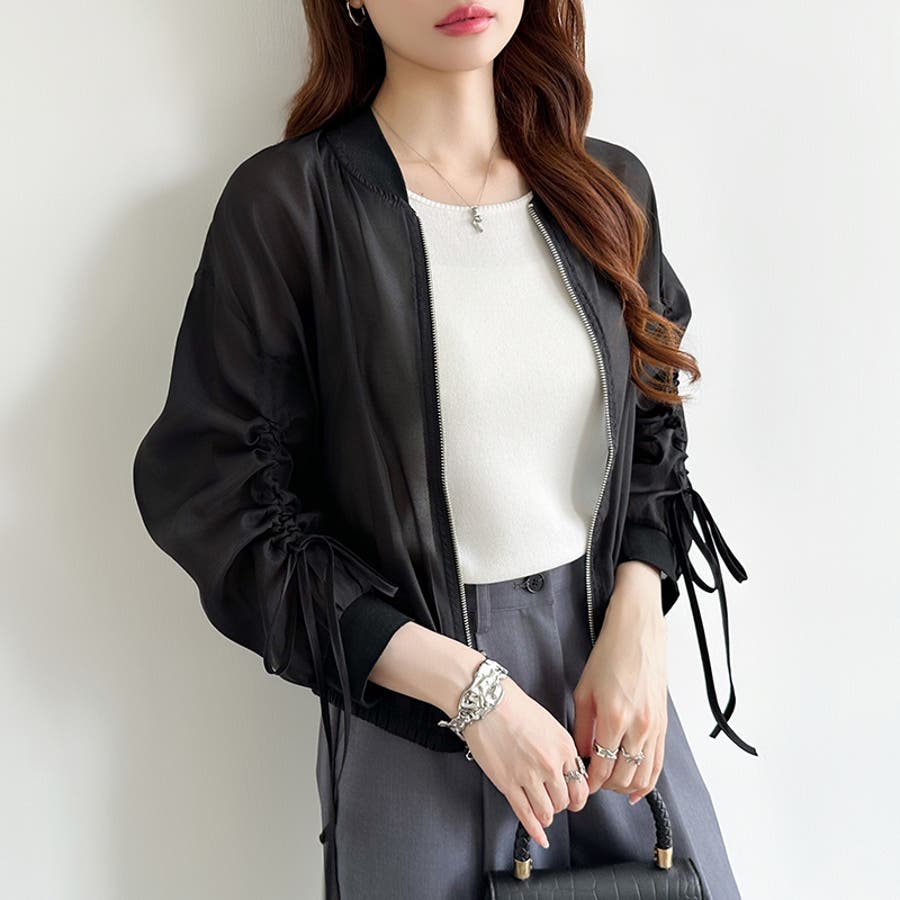 ギャザースリーブ シアーブルゾン ノーカラーブルゾン