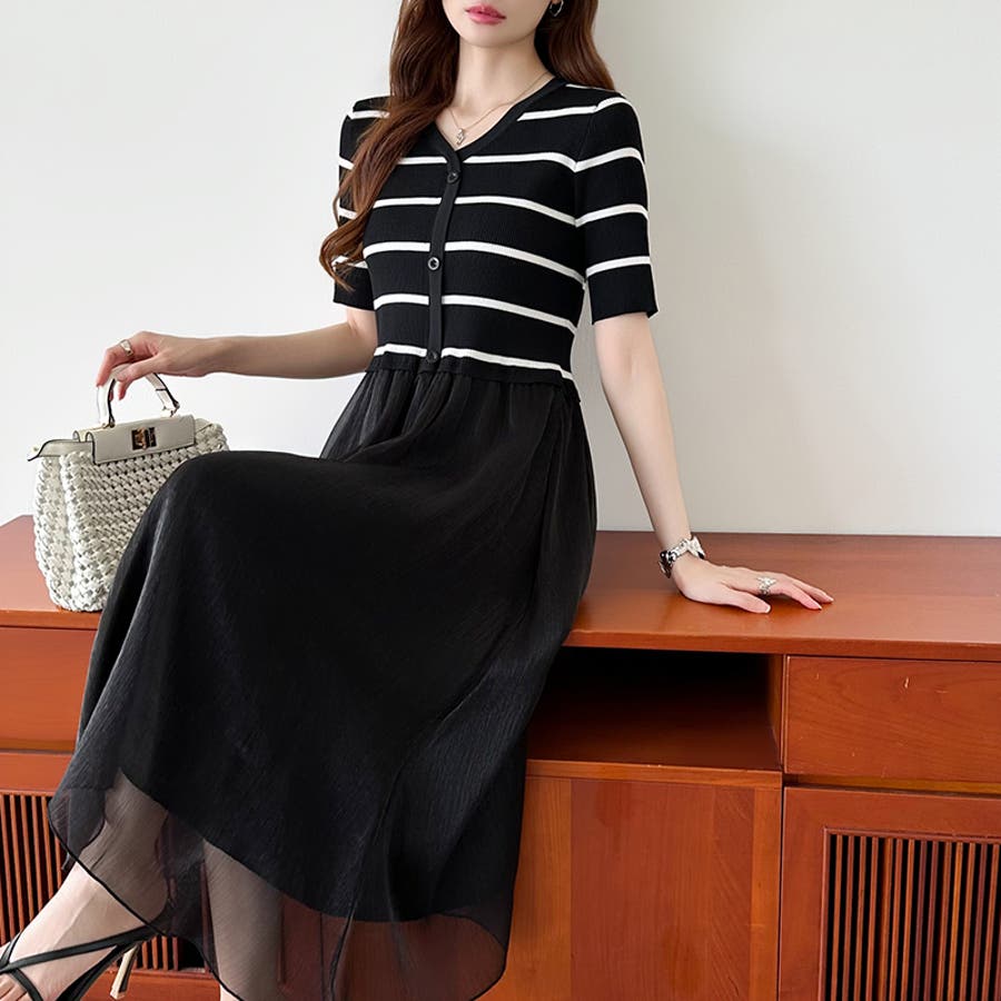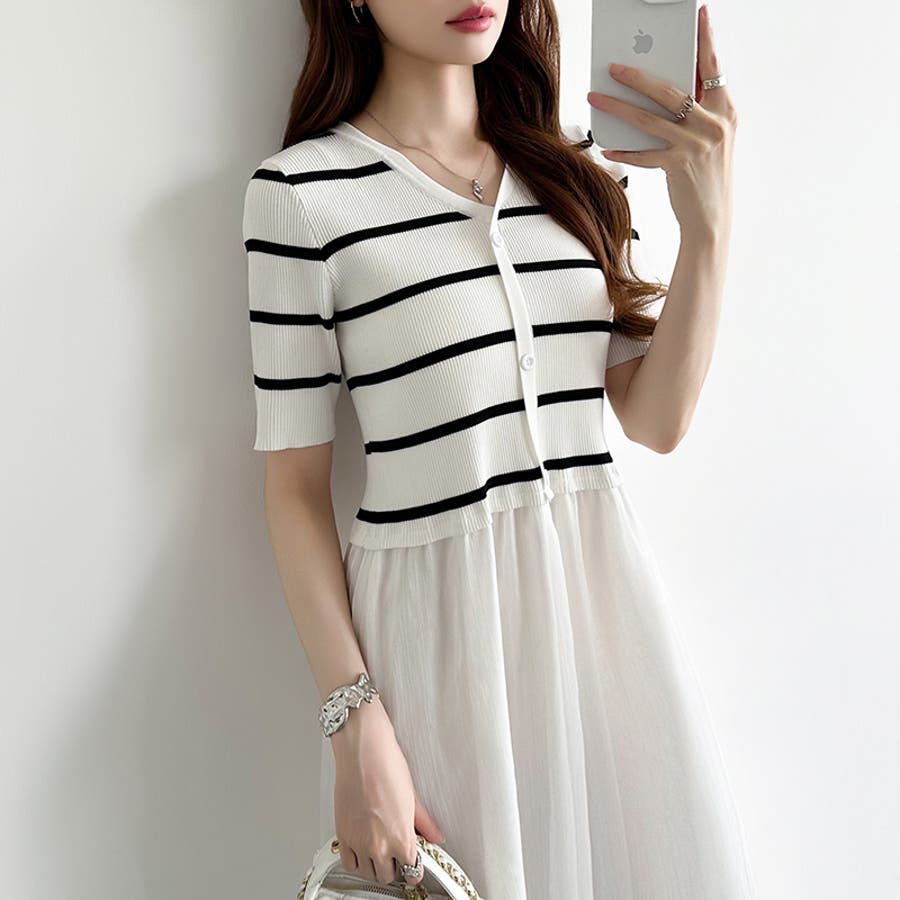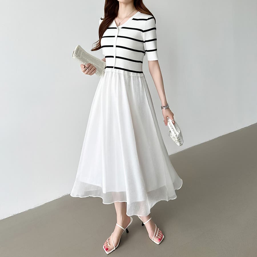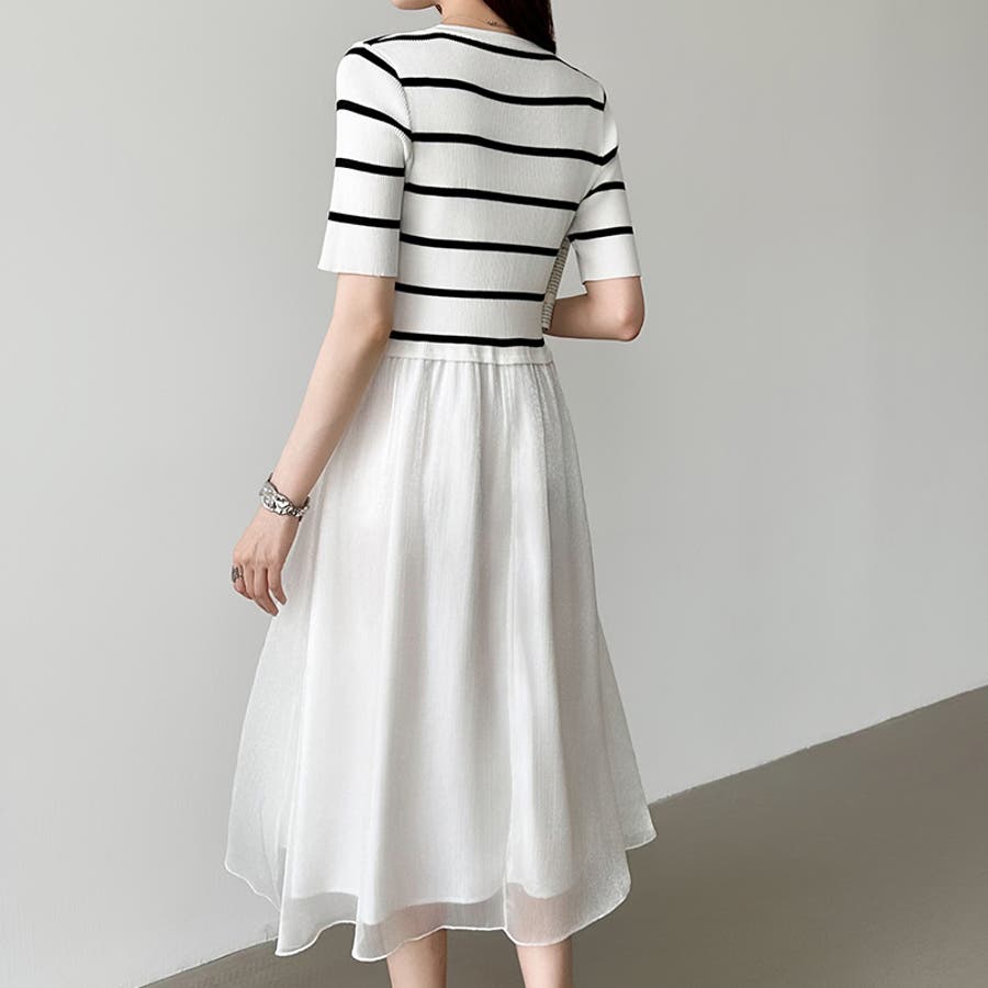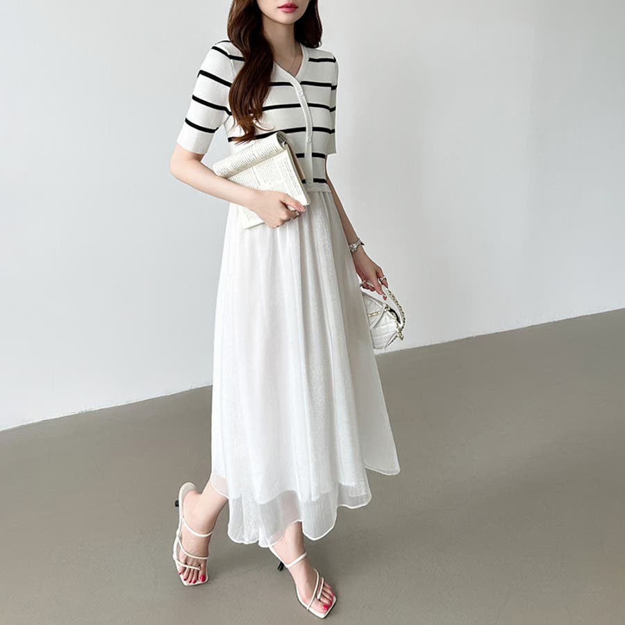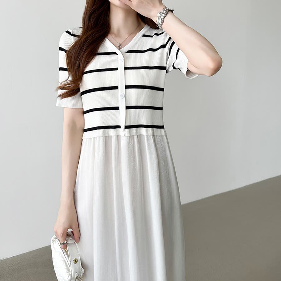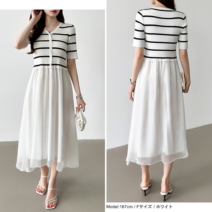 ドッキングワンピース 半袖 ワンピース オーガンジー ドッキング レディース サマーニット ボーダー 切り替えワンピース フレアワンピース 半袖ワンピース vネック ロング 異素材 フレア リブ ニット リブニット 光沢 光沢感 カーディガン ボタン ミモレ丈 ミモレ 丈 ロング丈 ロングワンピース ボーダーワンピース ボーダー柄 ドッキングワンピ 半袖ワンピースレディース ワンピ 切り替え プルオーバー らくちん 楽ちん 体型カバー お腹カバー 体型 カバー 隠し ギャザー ワンピース半袖 Vネック vネックワンピース 切替 異素材切り替えワンピース シアー 透け感 ふんわり スカート ボリューム 袖 袖あり かぶるだけ 裏地付き 裏地あり 裏地 洗える 1枚で決まる お出かけ おでかけ 旅行 プチプラ 高見え カジュアル フェミニン きれい め きれいめ キレイめ 綺麗 大人 オトナ 大人女子 オトナ女子 かわいい 可愛い 大人かわいい 大人可愛い 大人可愛いワンピース おしゃれ オシャレ 女性 女子 母 母親 ママ ママコーデ フリー サイズ フリーサイズ ホワイト 白 ブラック 黒 白黒 黒白 ブラックボーダー 黒白 ワンピース春 ワンピース春レディース ワンピース春物 ワンピースレディース夏 ワンピースレディース ワンピース春夏 ドッキングワンピース夏 サマーニットワンピース きれいめカジュアル きれいめカジュアルレディース 新作 春夏 春 夏 春服 夏服 春物 夏物 春用 夏用 韓国 韓国ファッション 10代 20代 30代 40代 50代 cocomomo ココモモ