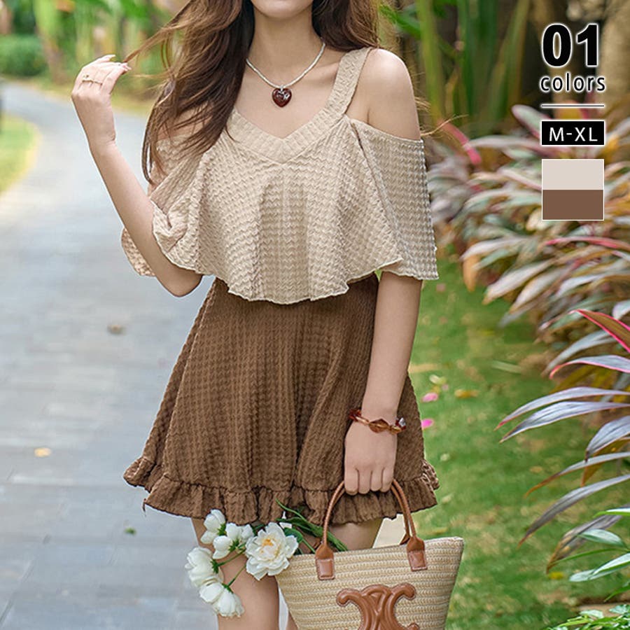 オフショルワンピース水着 ワンピース水着 水着体型カバー
