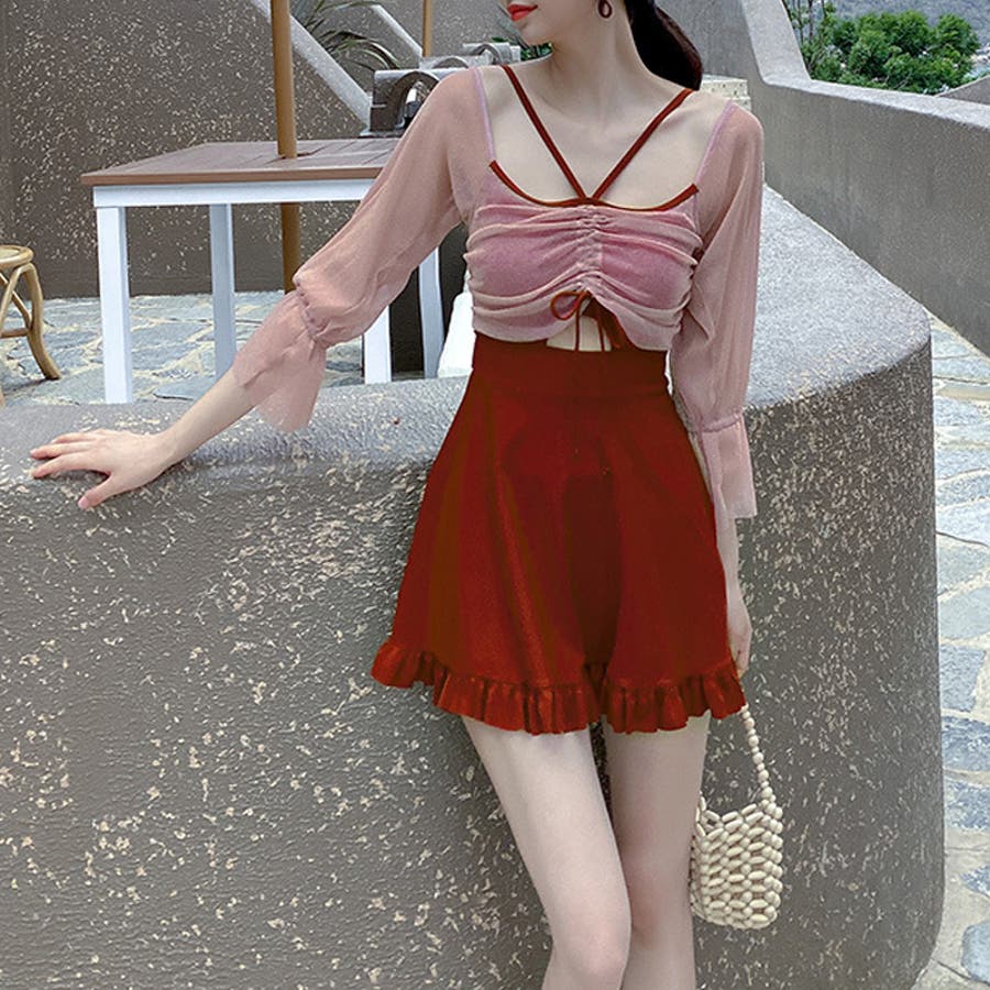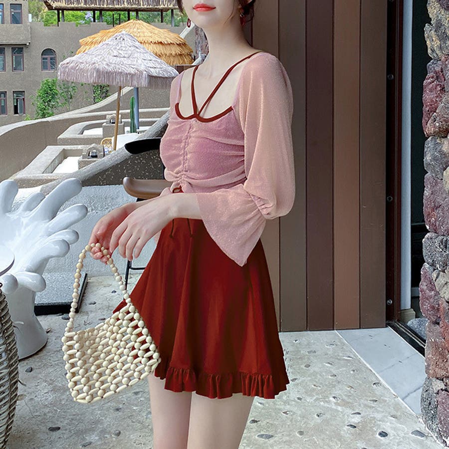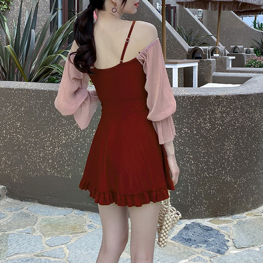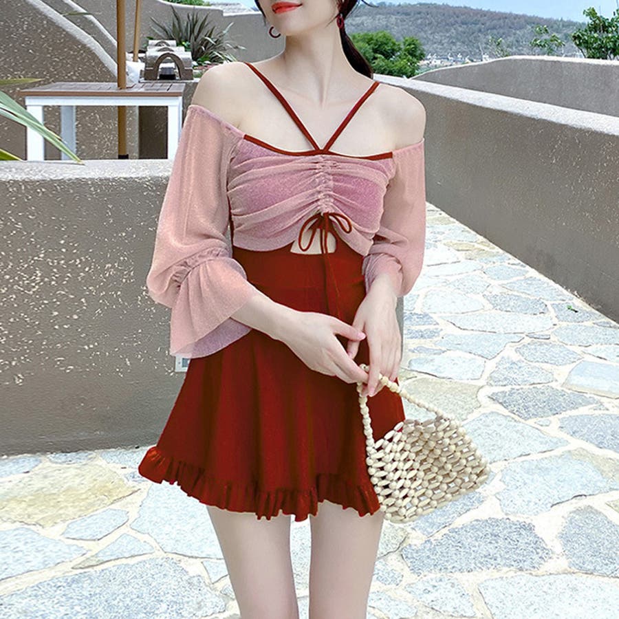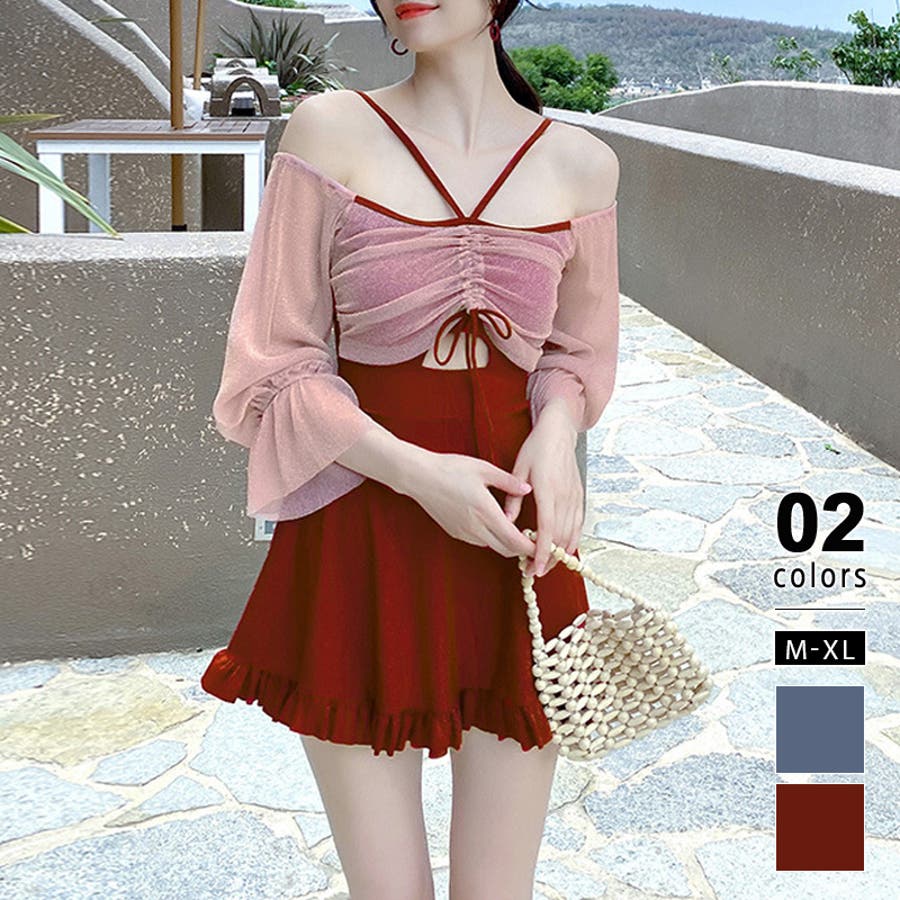 水着 ワンピース オフショル 体型カバー 2way レディース ワンピース水着 オフショルダー シアー スリーブ 袖あり 長袖 フリル スカート フレア ショートパンツ 一体型 二の腕カバー カットアウト オールインワン 胸元カバー パッド付き 大人 体型カバー水着 ママ ママ水着 盛れる おしゃれ ショート パンツ アンダーショーツ インナー インナーショーツ インナーパンツ 短パン シアースリーブ キャンディスリーブ フレアスカート 大きいサイズ プルオーバー パッド パット ブラ カップ カップ付き カップ付 パット付き 胸パッド付き 取り外し 可能 取り外し可能 バスト 胸 胸元 胸パッド 胸パット 盛 小胸 小胸カバー ノンワイヤー 太もも 二の腕 二の腕隠す 体型 胸元 カバー 隠し 太もも ヒップ お尻 ウエスト 袖付き 袖 肩紐 調整 アジャスター 大人 露出少なめ 露出少ない 露出控えめ 洋服みたいな水着 服みたいな みずぎ 服 海 プール ビーチ リゾート 海外 海水浴 夏休み 旅行 スイム ウェア ビーチウェア スイムウェア カバーアップ フェミニン ガーリー レトロ ガーリー セクシー 映える オトナ女子 女性 女子 可愛い かわいい 大人可愛い 大人かわいい オシャレ 高校生 学生 母 女性 プチプラ 高見え M L XL サイズ Mサイズ Lサイズ XLサイズ ブラウン ブルー 青 レッド 赤 水着レディース 体型カバー水着 レディース体型カバー 水着体型カバー 体型がカバー レディース水着 体型カバーワンピース ワンピース水着レディース 可愛い水着 かわいい水着 水着可愛い 韓国風 韓国風水着 新作 春夏新作 春夏 春 夏 韓国 韓国ファッション 10代 20代 30代 40代 50代 cocomomo ココモモ